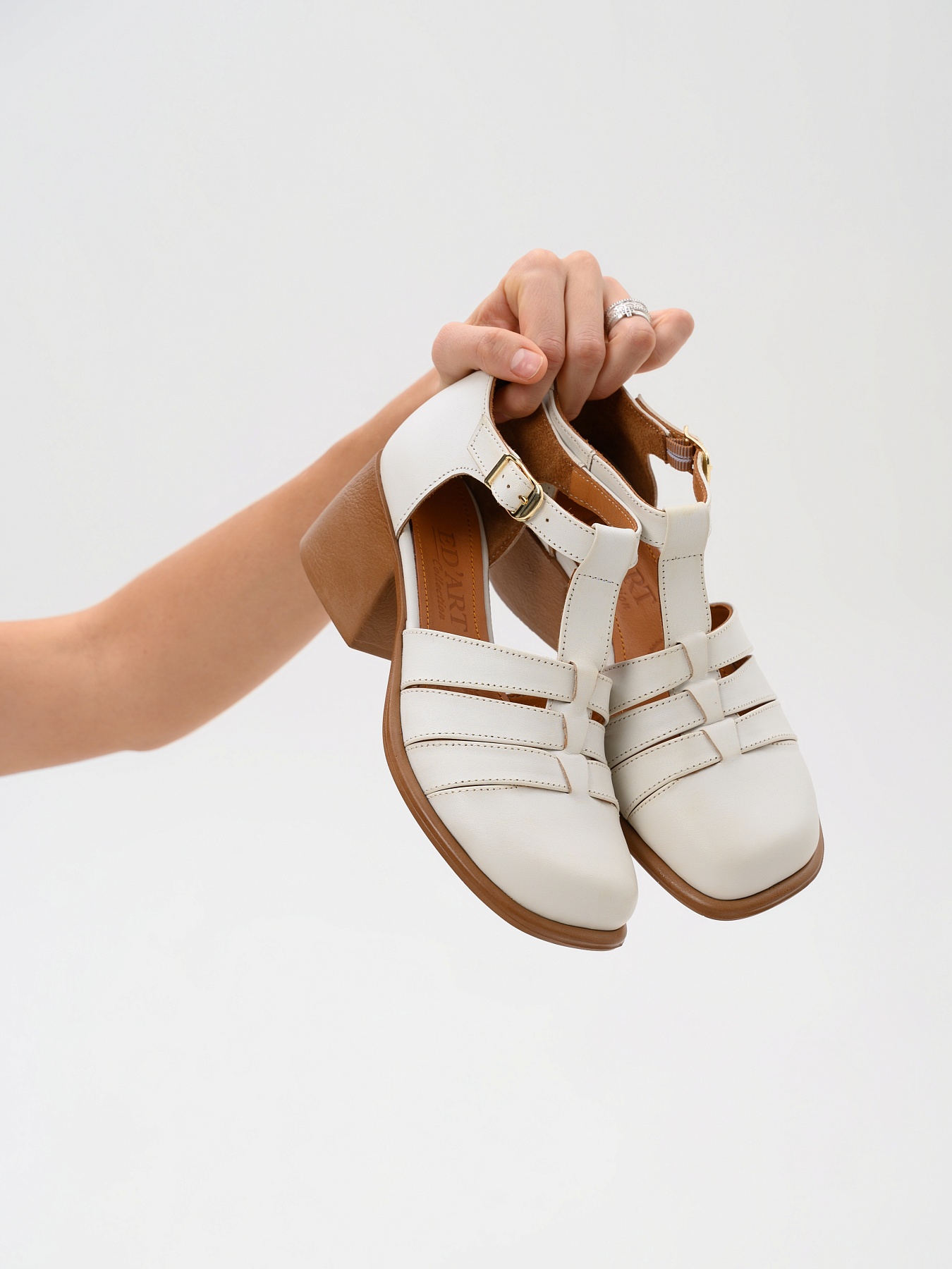 Босоножки белые кожаные