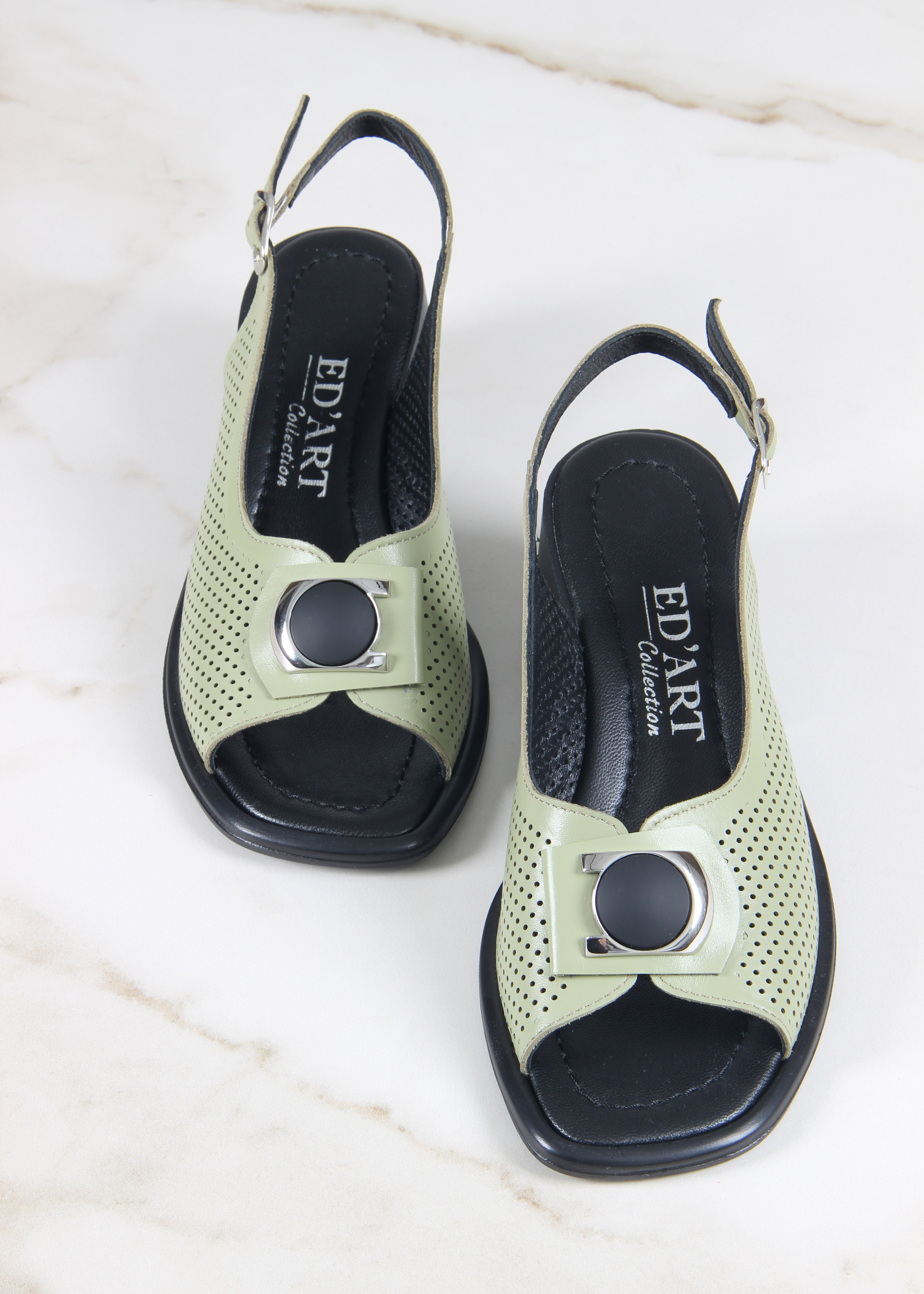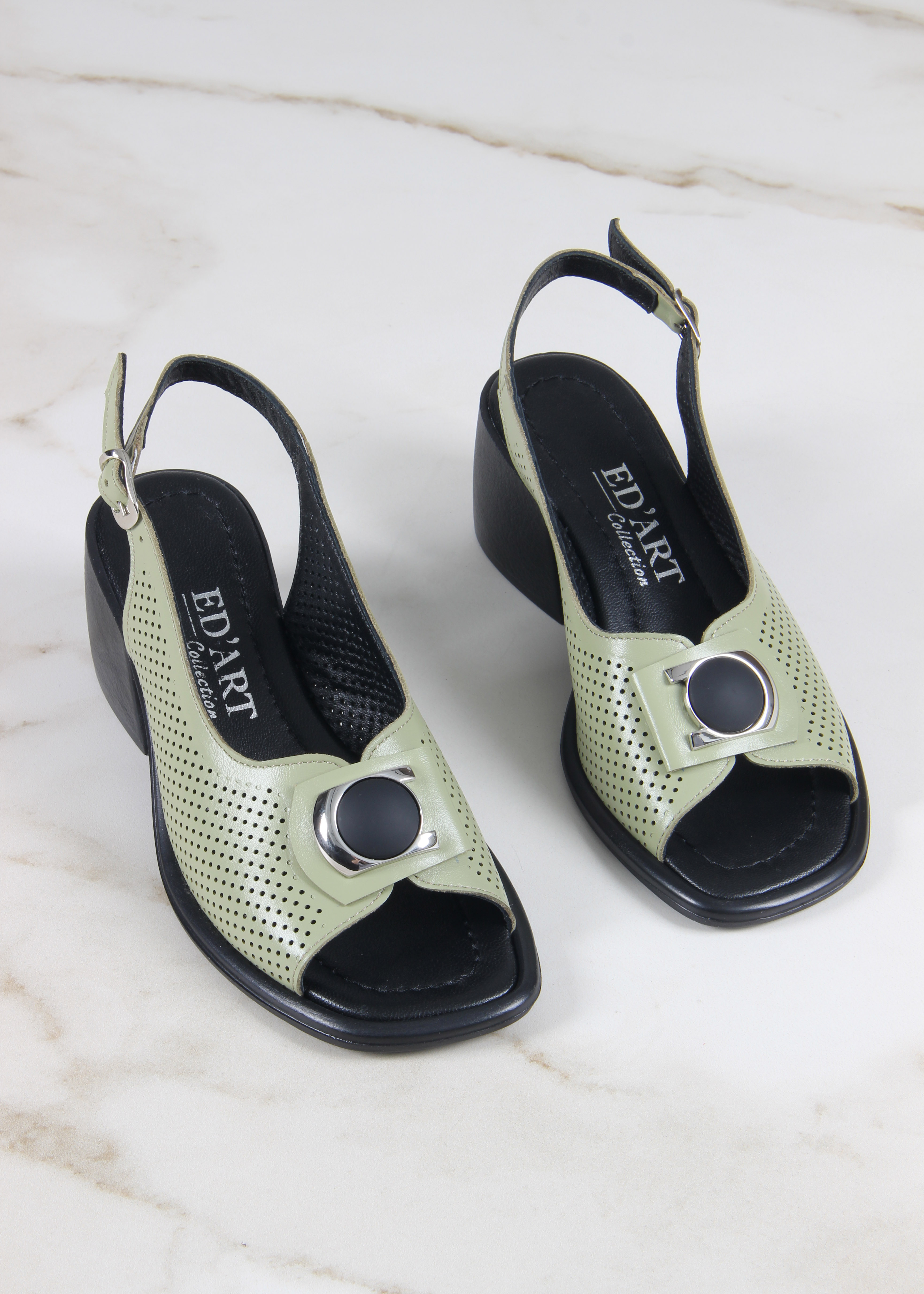 Босоножки зеленые с перфорацией