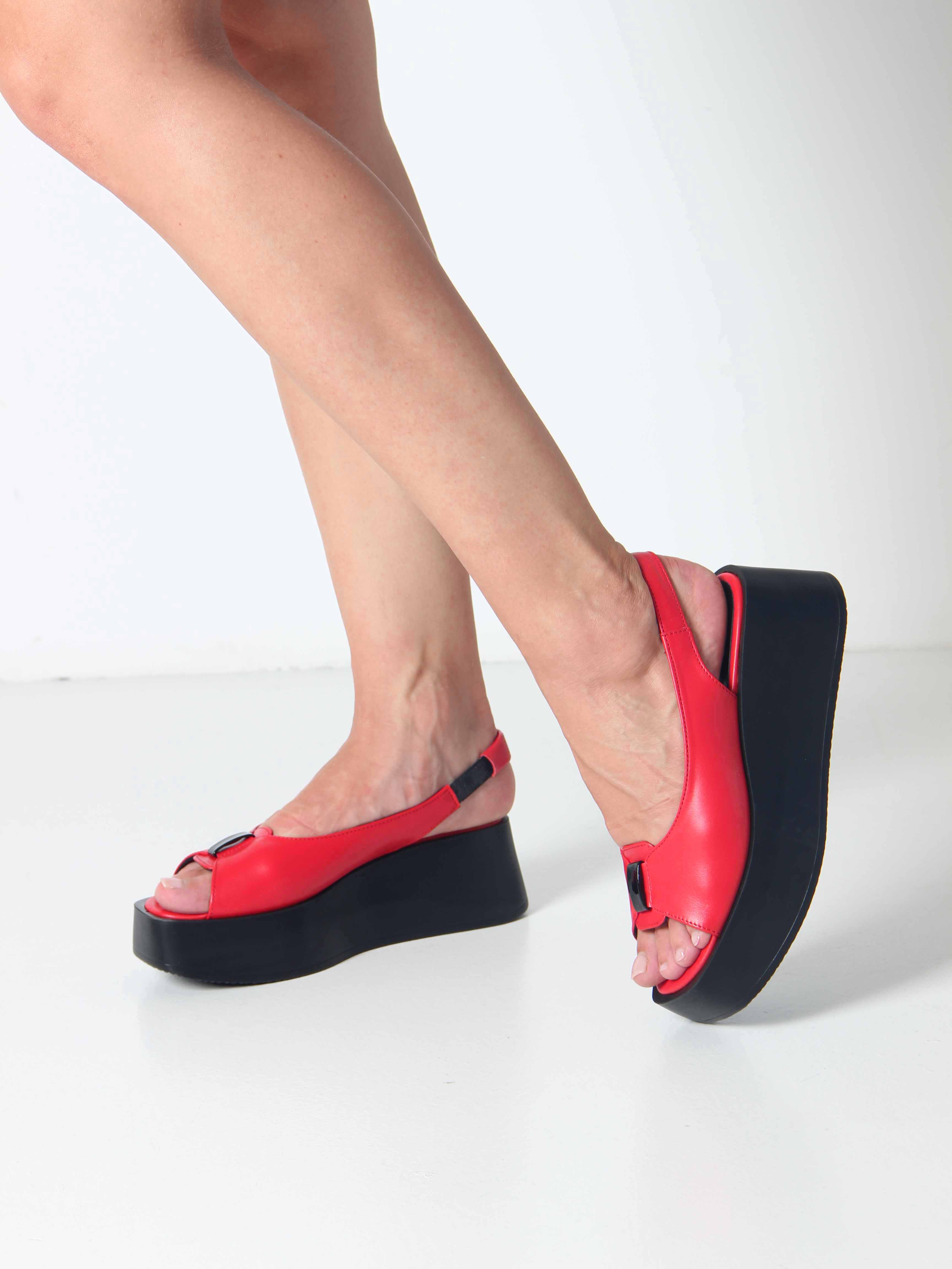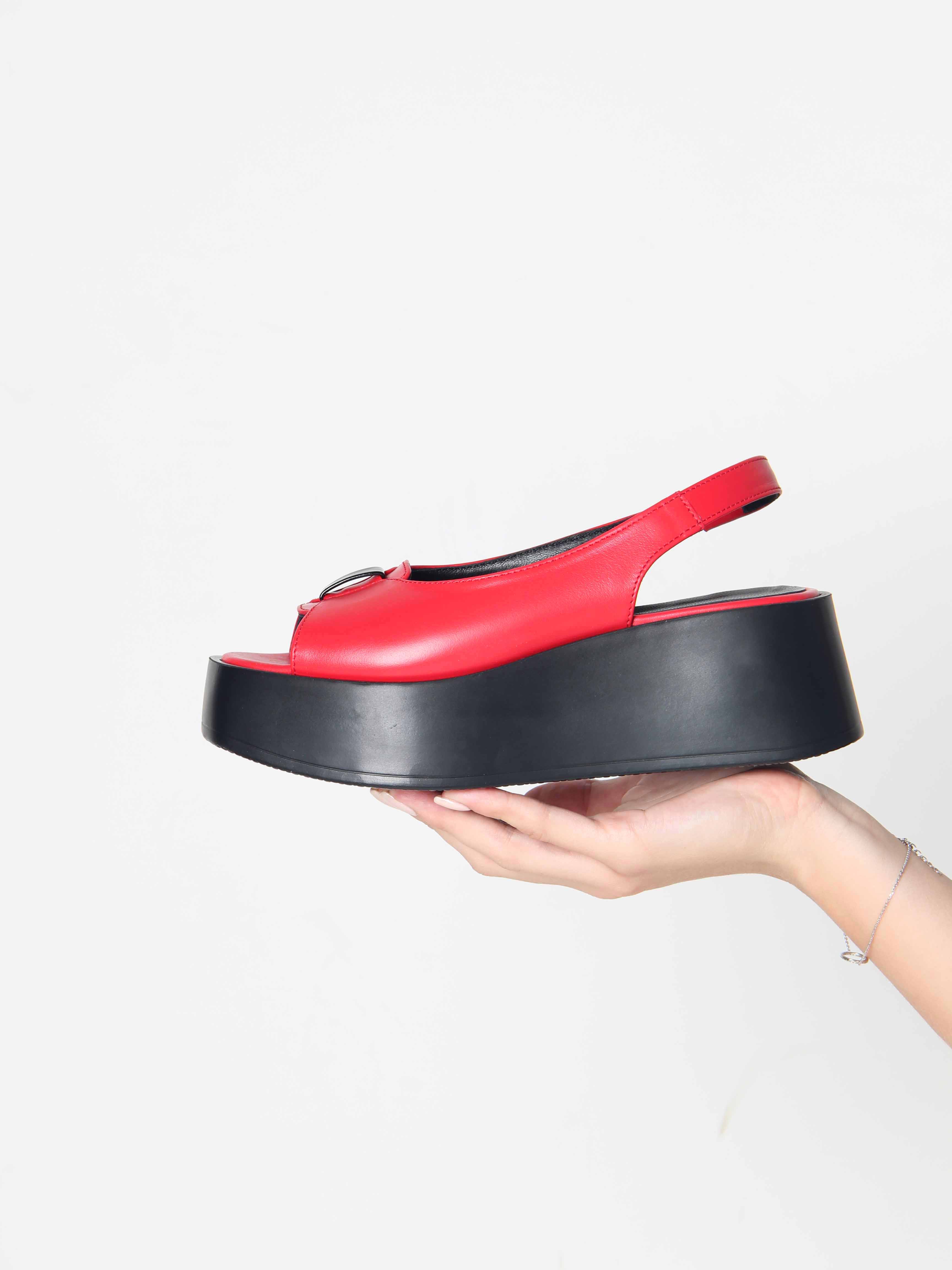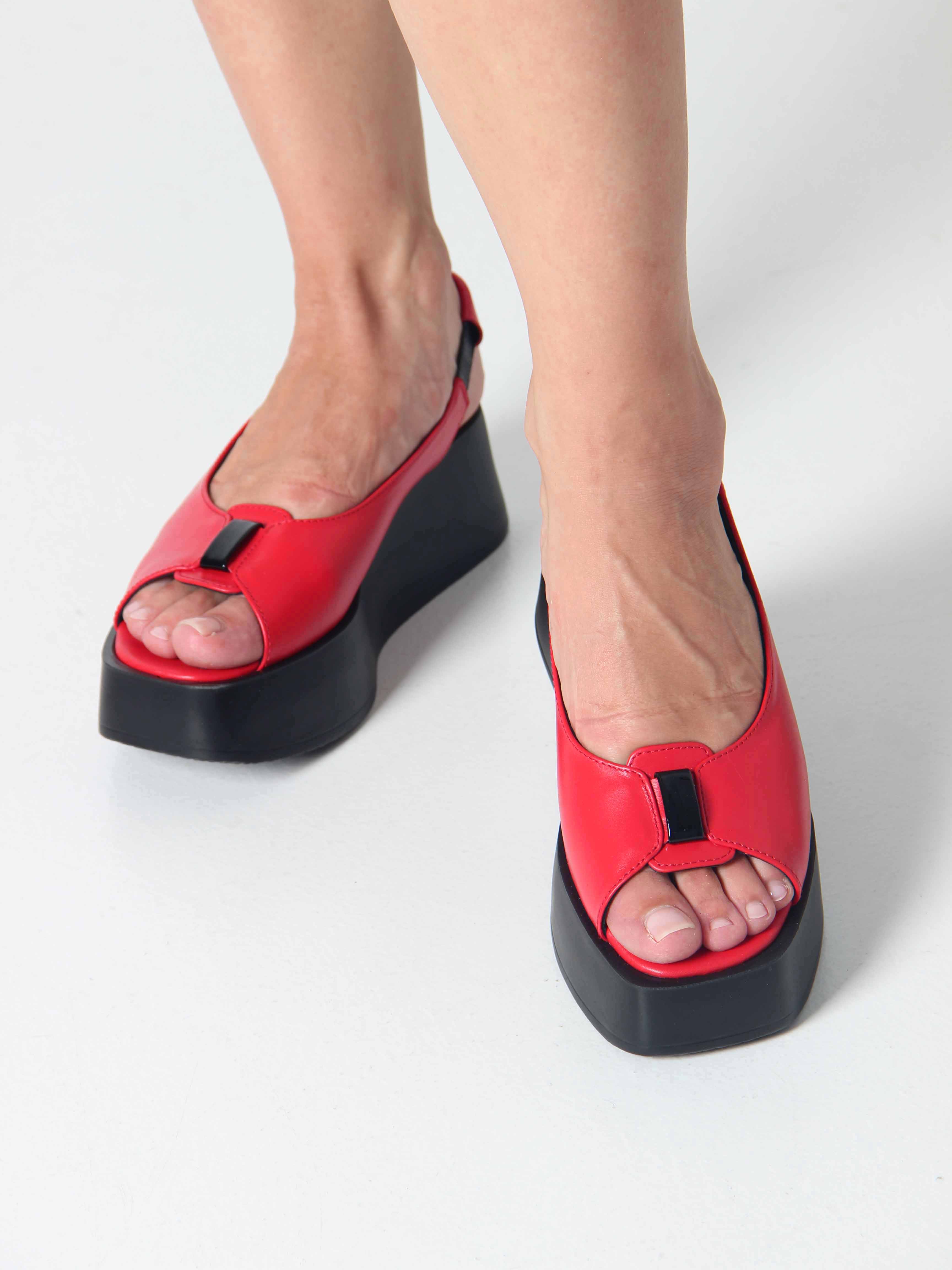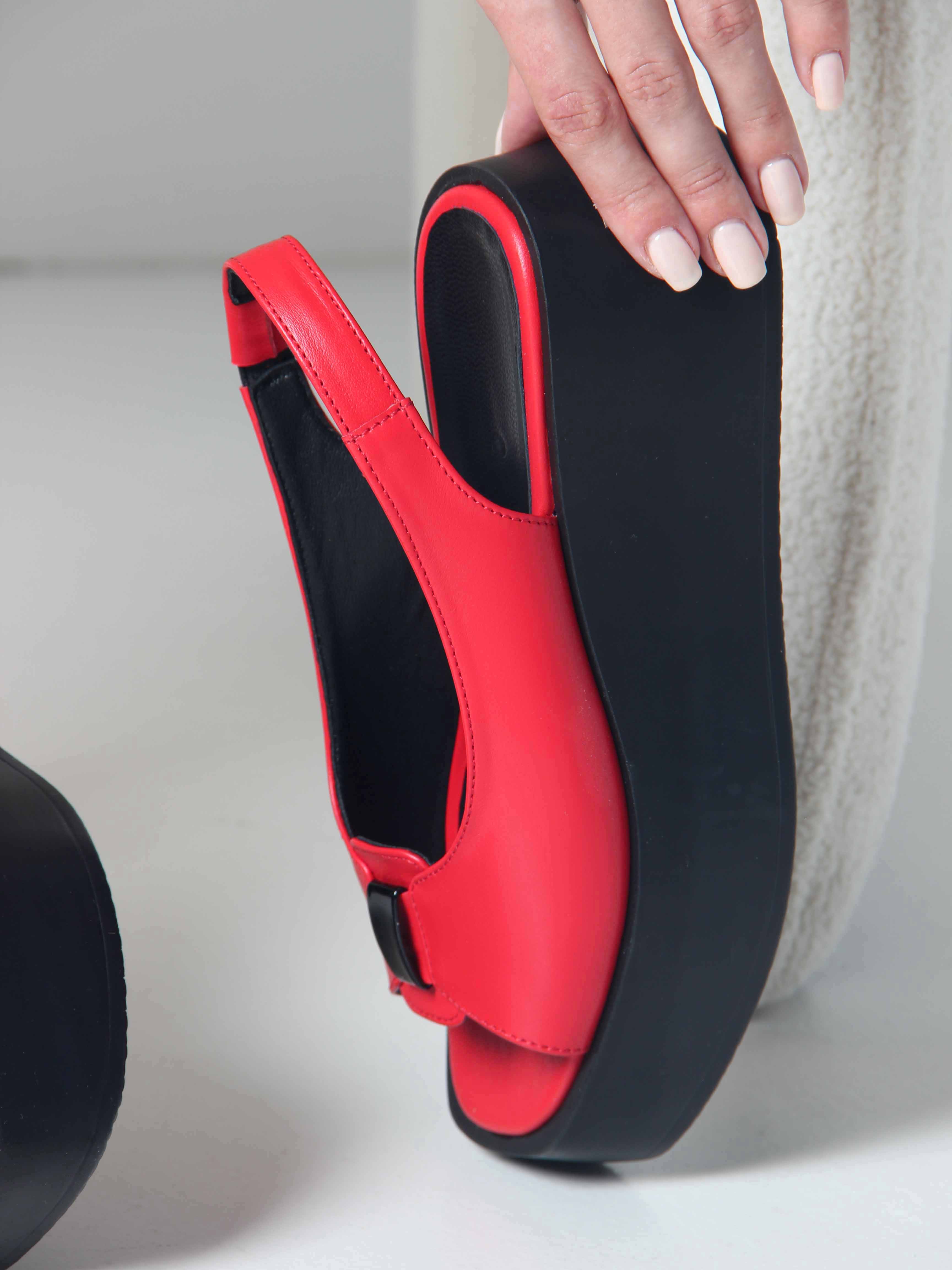 Босоножки кожаные красные на платформе