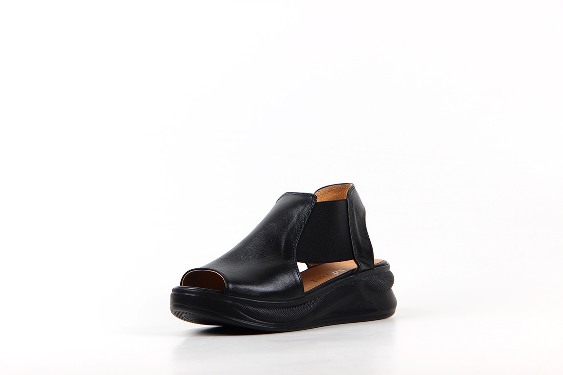 Босоножки кожаные черные на платформе