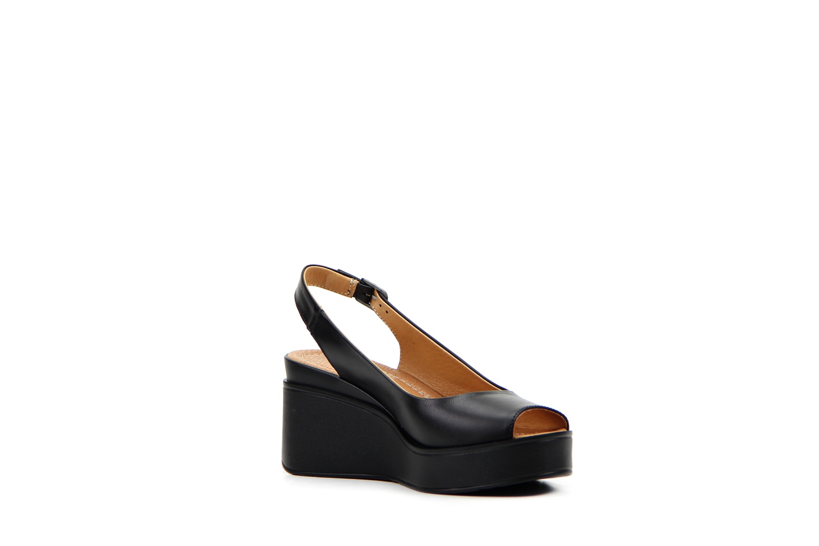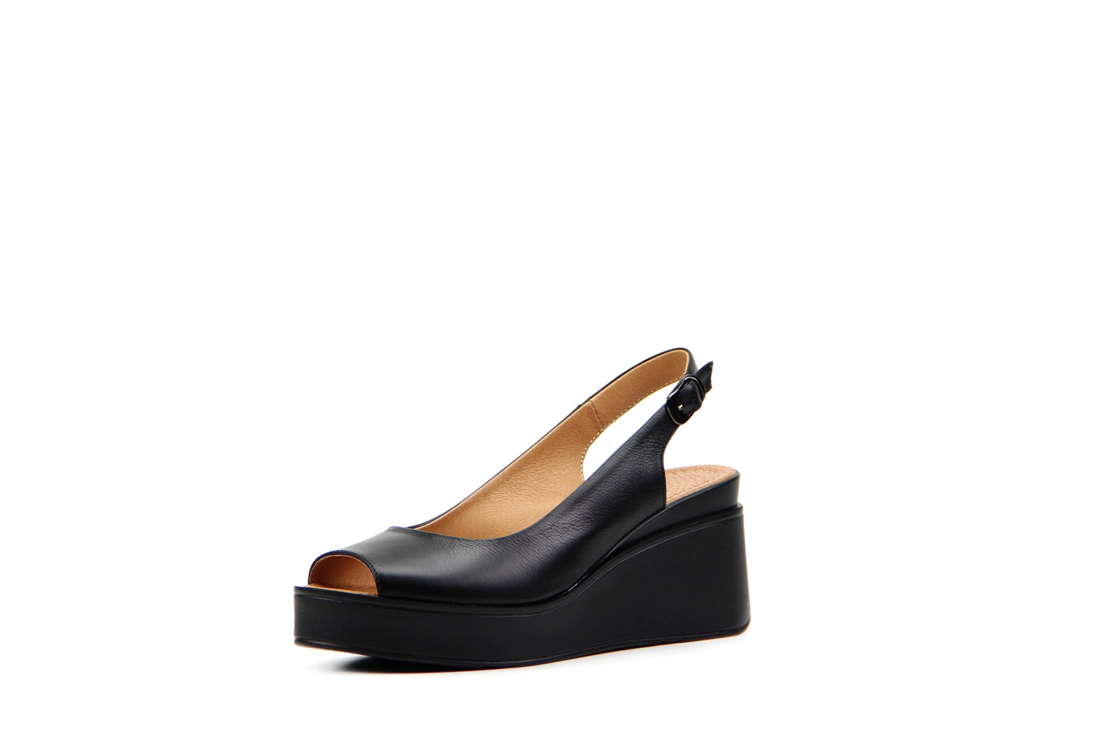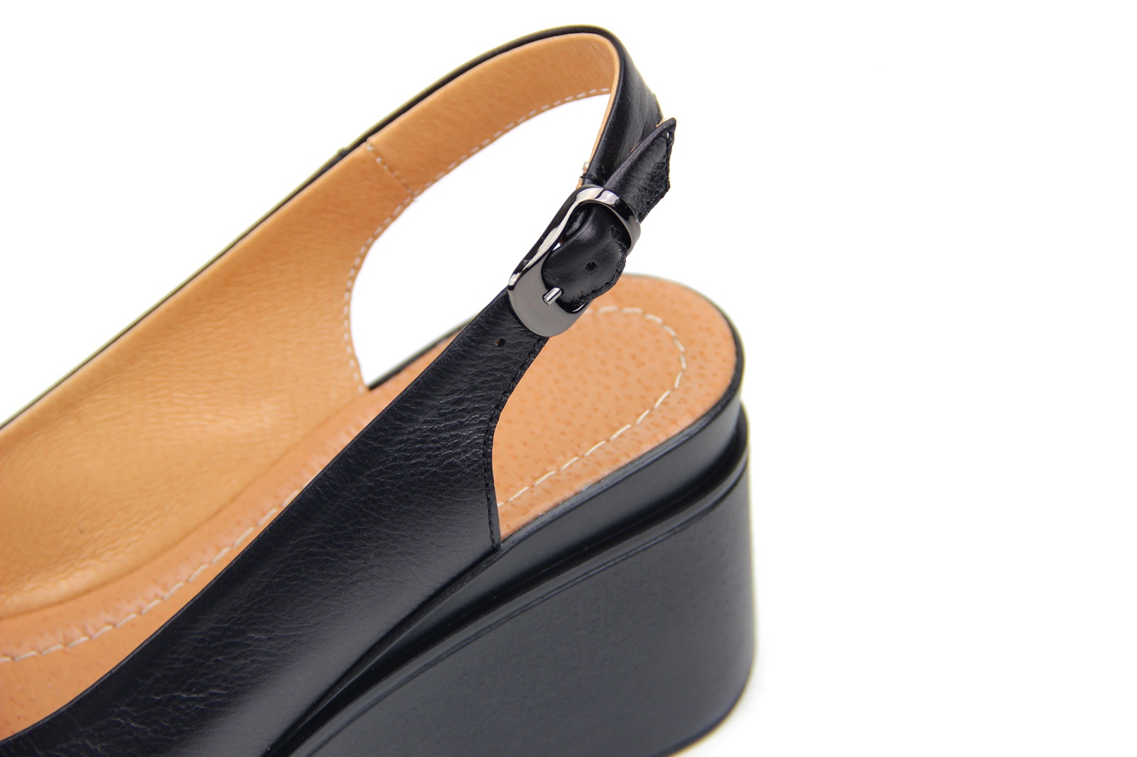 Босоножки кожаные черные на платформе