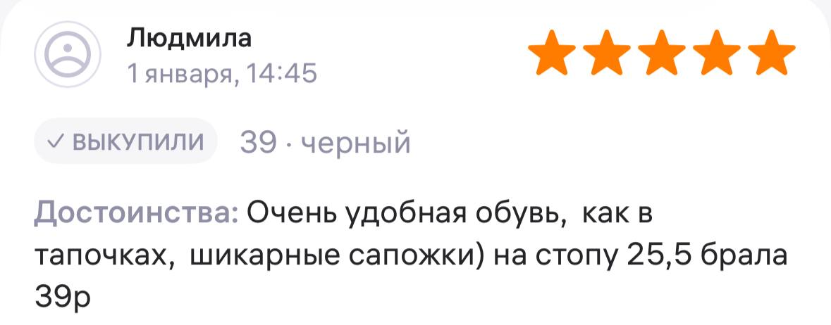 Ботинки хорошие, кажа мягкая, размеру соответствуют, но на пятке пришита заплатка из какой то пленки блесящей и когда первый раз померла она вся сморщилась и такое впечатление что сейчас лопнет. И я думаю со временем так и будет. Если бы не эта заплатка взяла бы удобные и мягкие