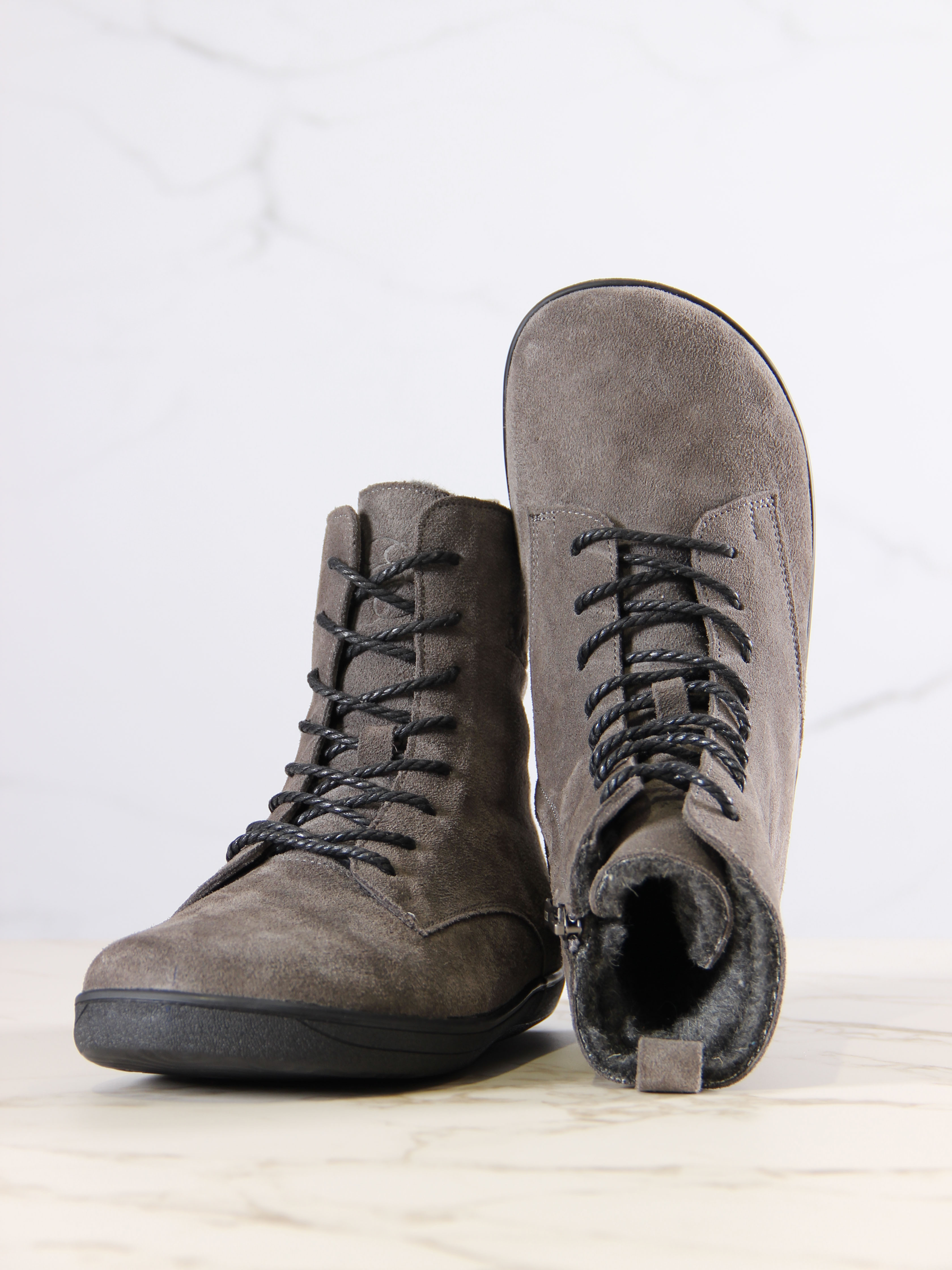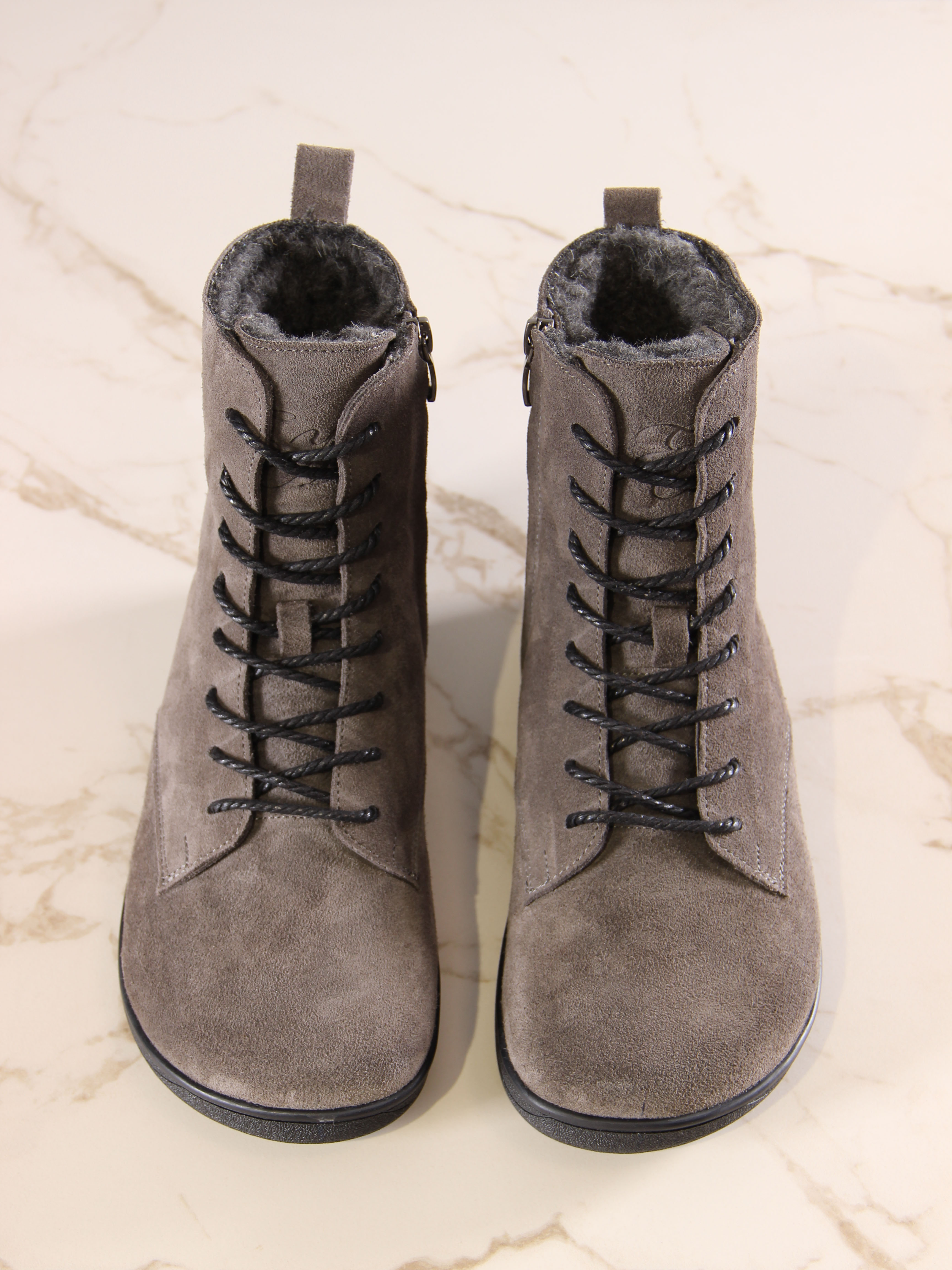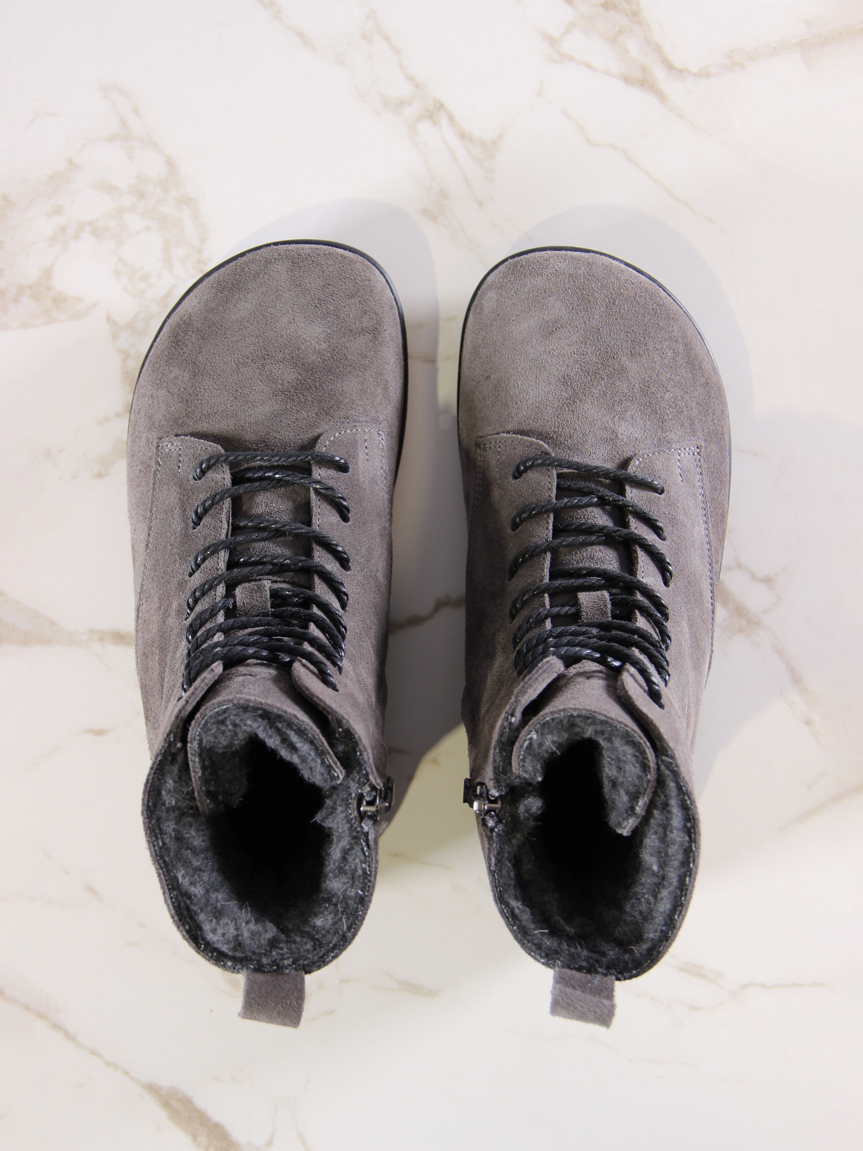 Ботинки босоногие серые замшевые