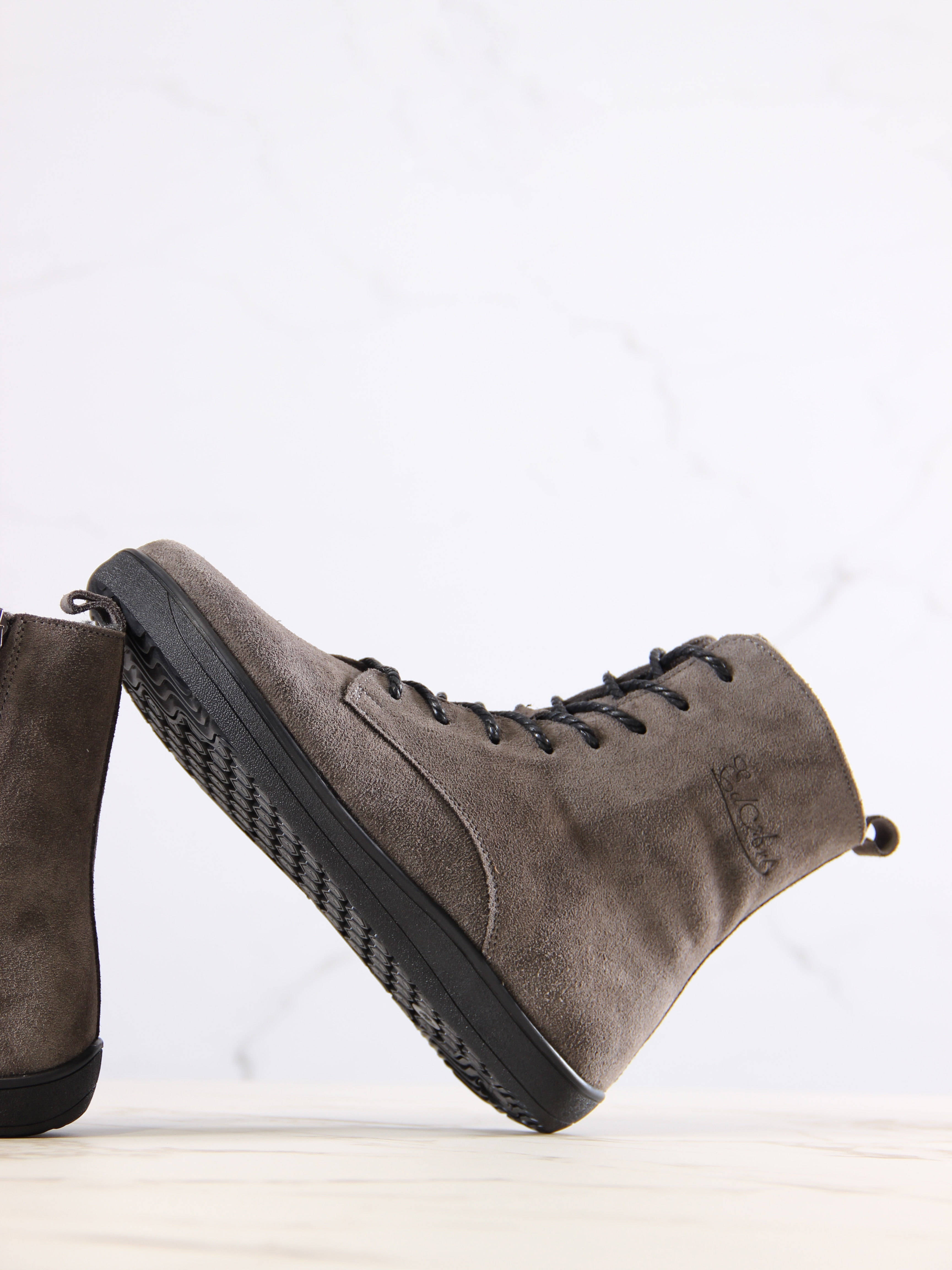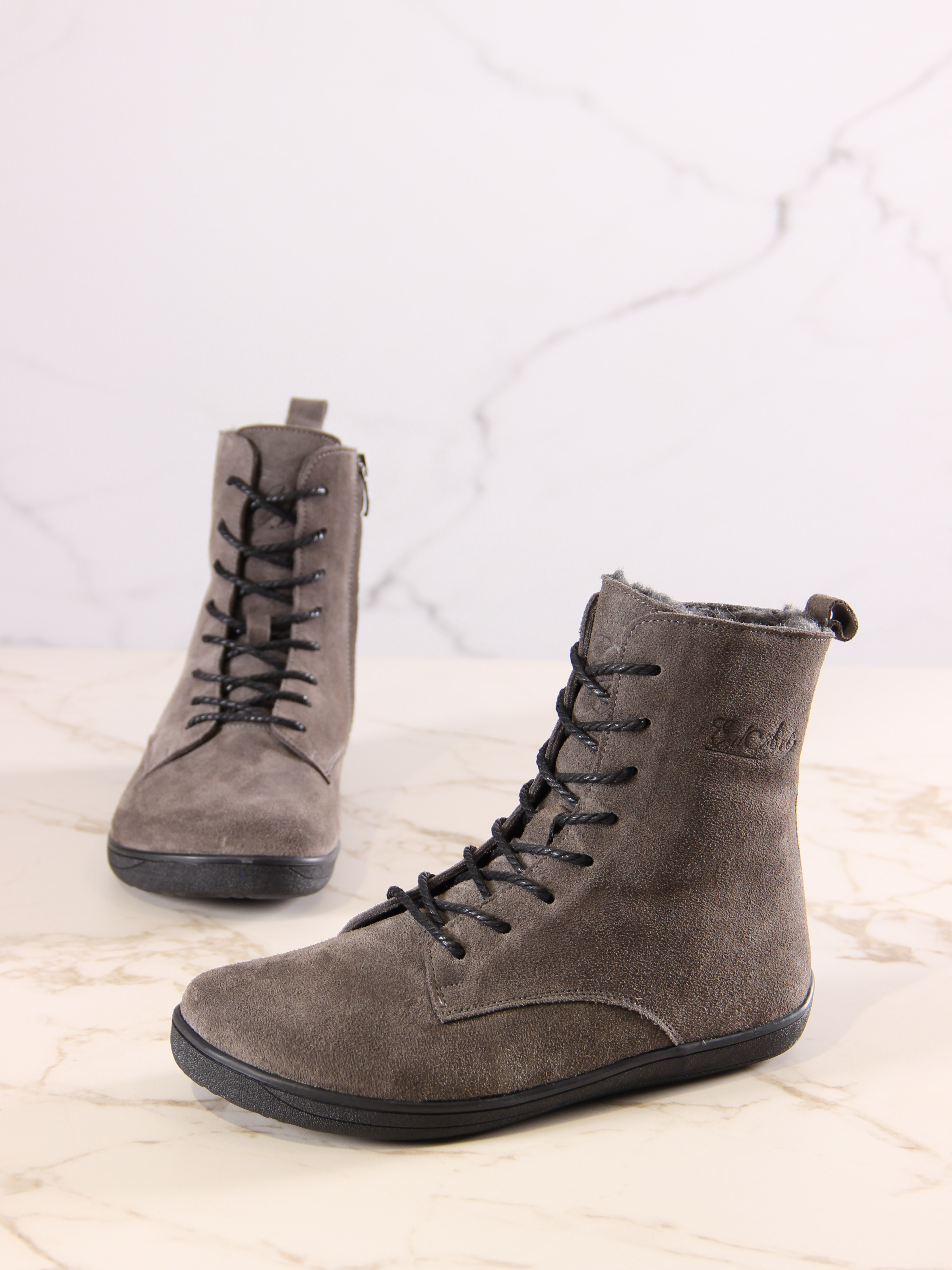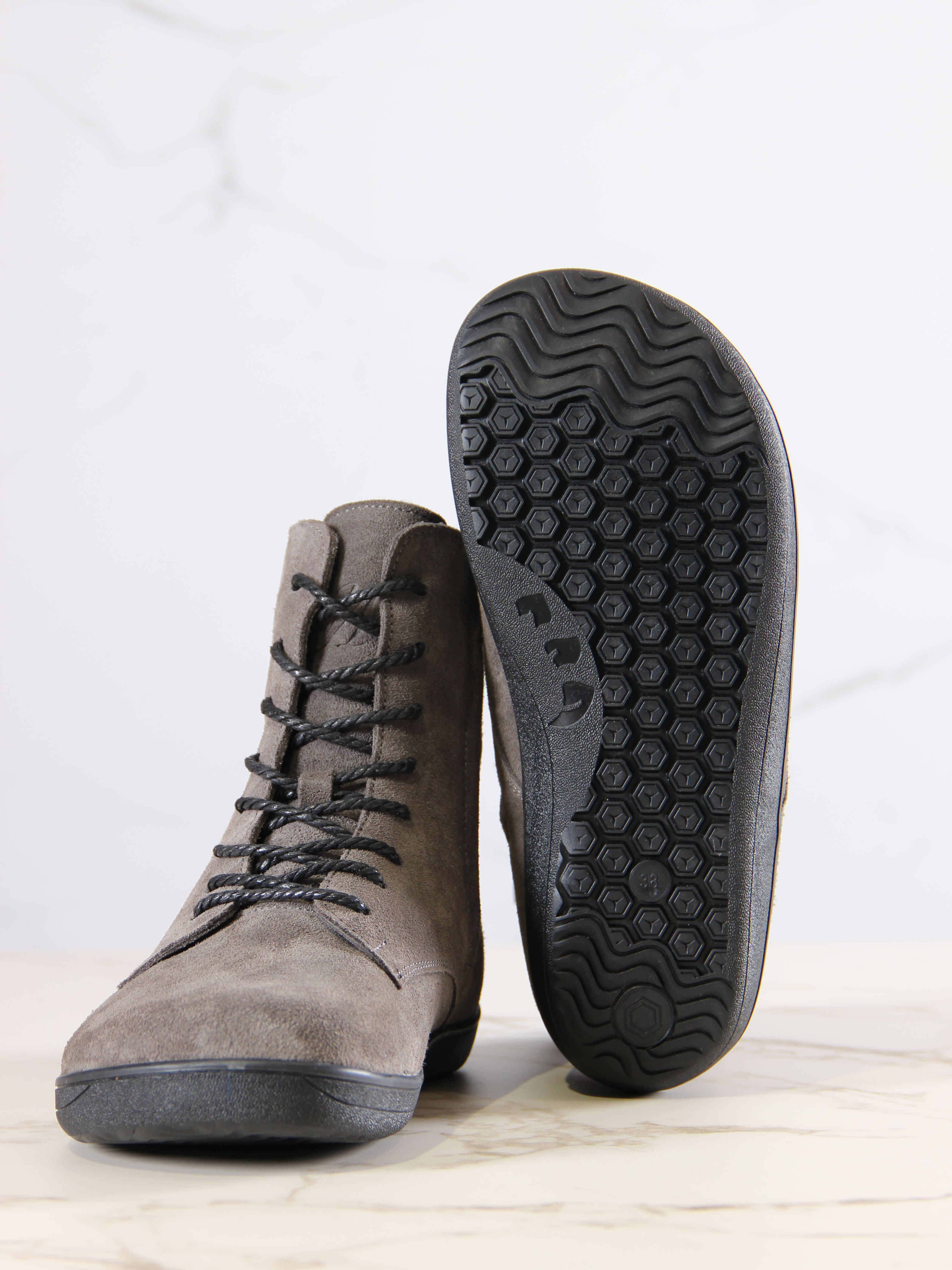 Ботинки босоногие серые замшевые