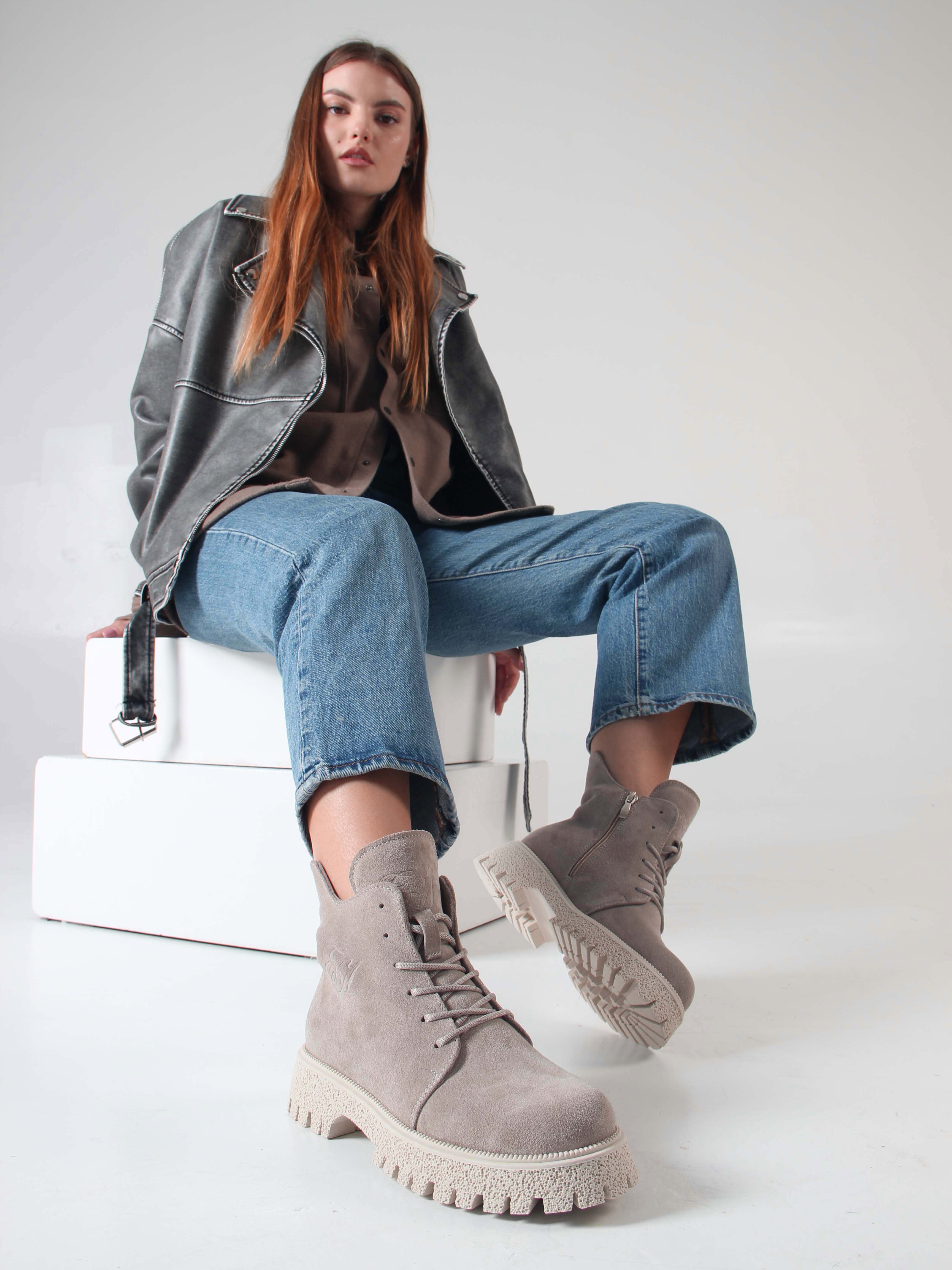 Ботинки замшевые серые