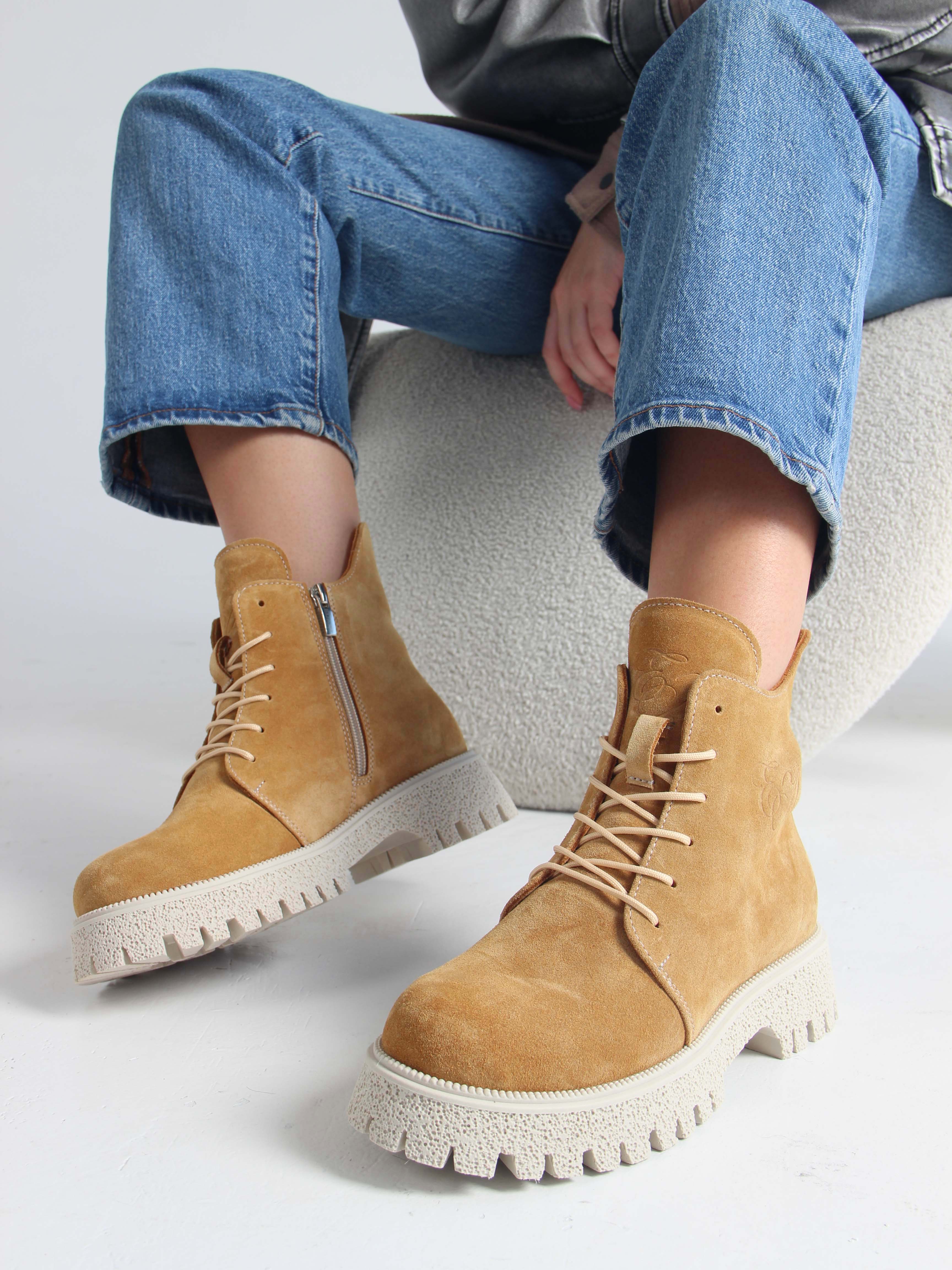 Ботинки хорошие, кажа мягкая, размеру соответствуют, но на пятке пришита заплатка из какой то пленки блесящей и когда первый раз померла она вся сморщилась и такое впечатление что сейчас лопнет. И я думаю со временем так и будет. Если бы не эта заплатка взяла бы удобные и мягкие