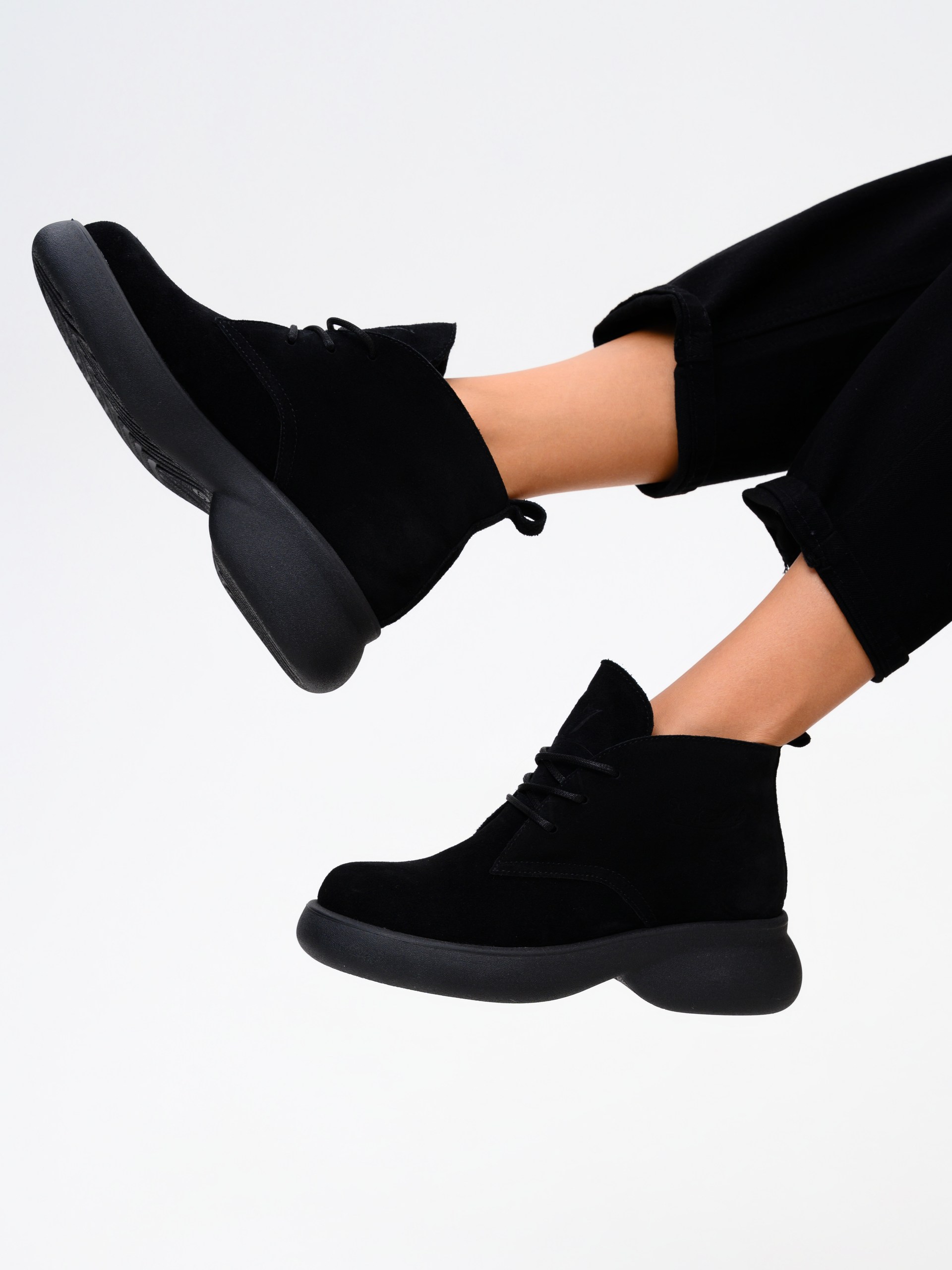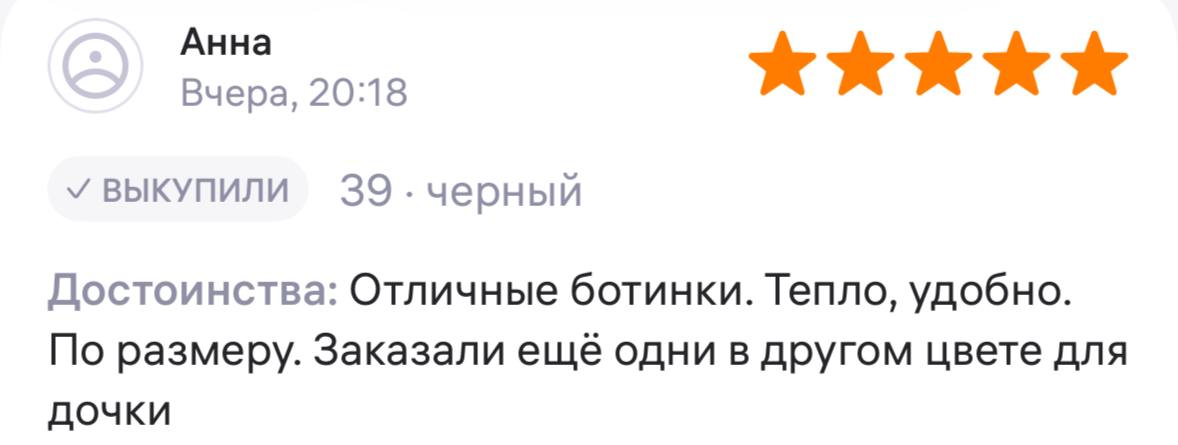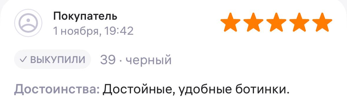 Ботинки хорошие, кажа мягкая, размеру соответствуют, но на пятке пришита заплатка из какой то пленки блесящей и когда первый раз померла она вся сморщилась и такое впечатление что сейчас лопнет. И я думаю со временем так и будет. Если бы не эта заплатка взяла бы удобные и мягкие