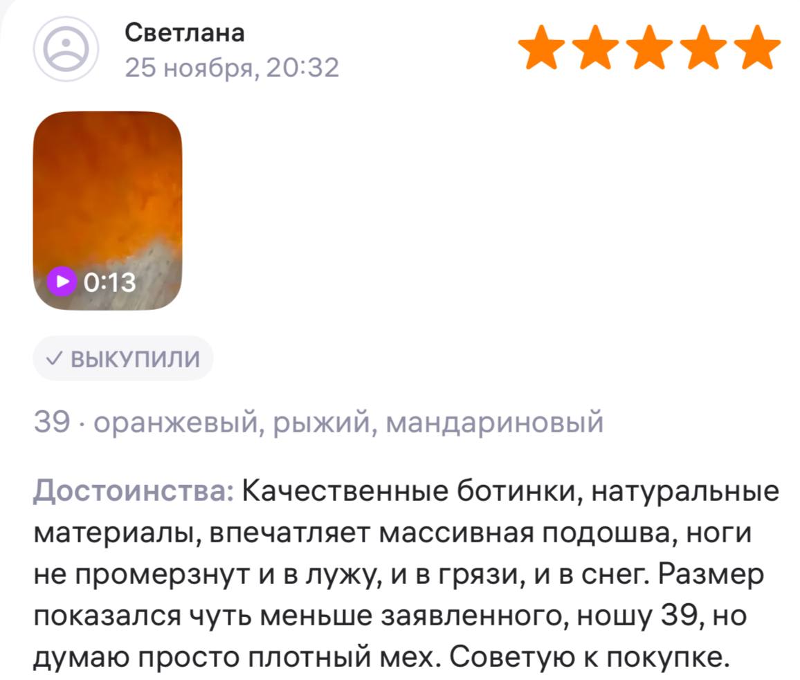 Ботинки хорошие, кажа мягкая, размеру соответствуют, но на пятке пришита заплатка из какой то пленки блесящей и когда первый раз померла она вся сморщилась и такое впечатление что сейчас лопнет. И я думаю со временем так и будет. Если бы не эта заплатка взяла бы удобные и мягкие