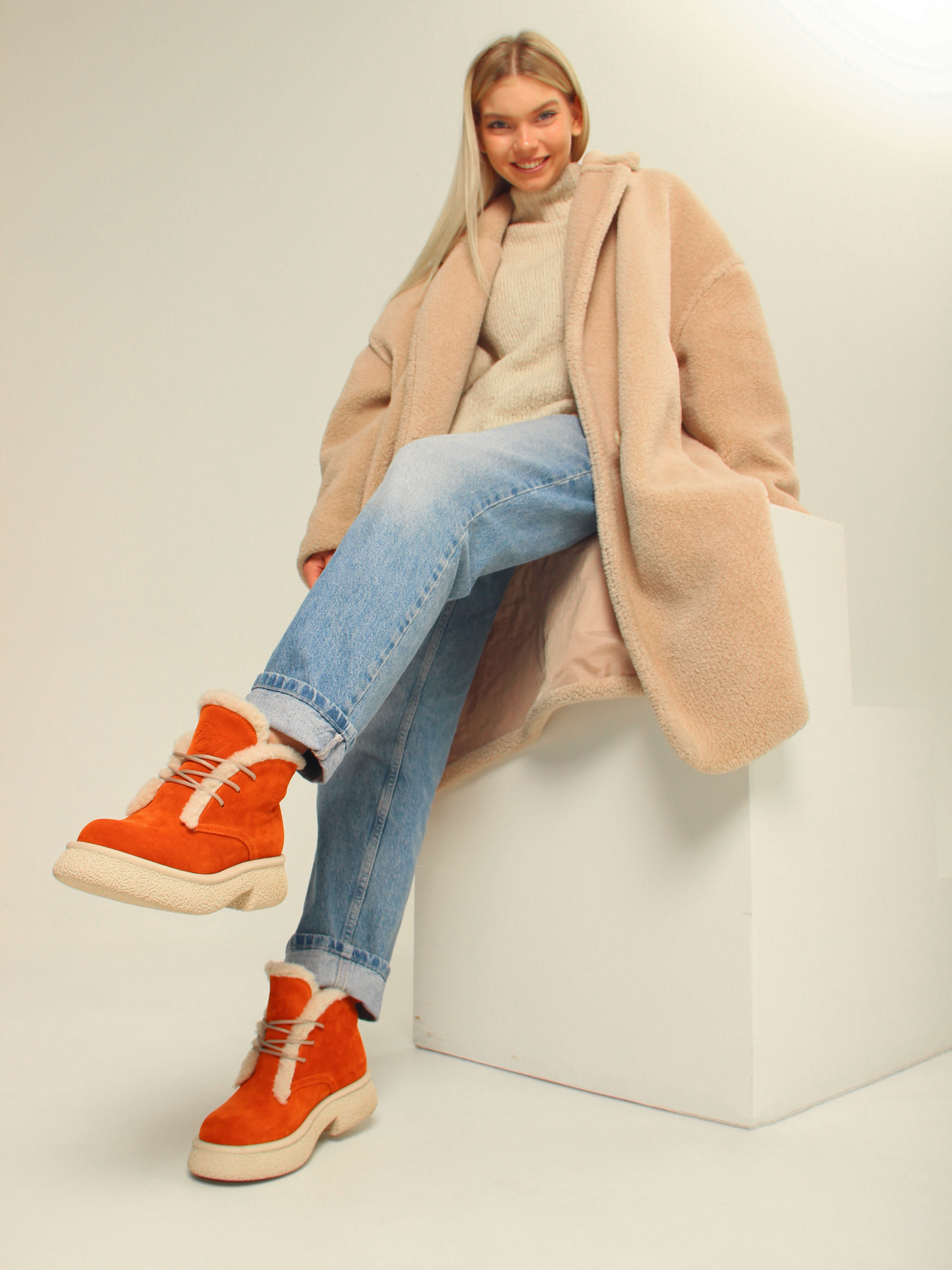 Примите к сведению, что при заказе обуви с мехом он будет бурового цвета (на фото шерсть).