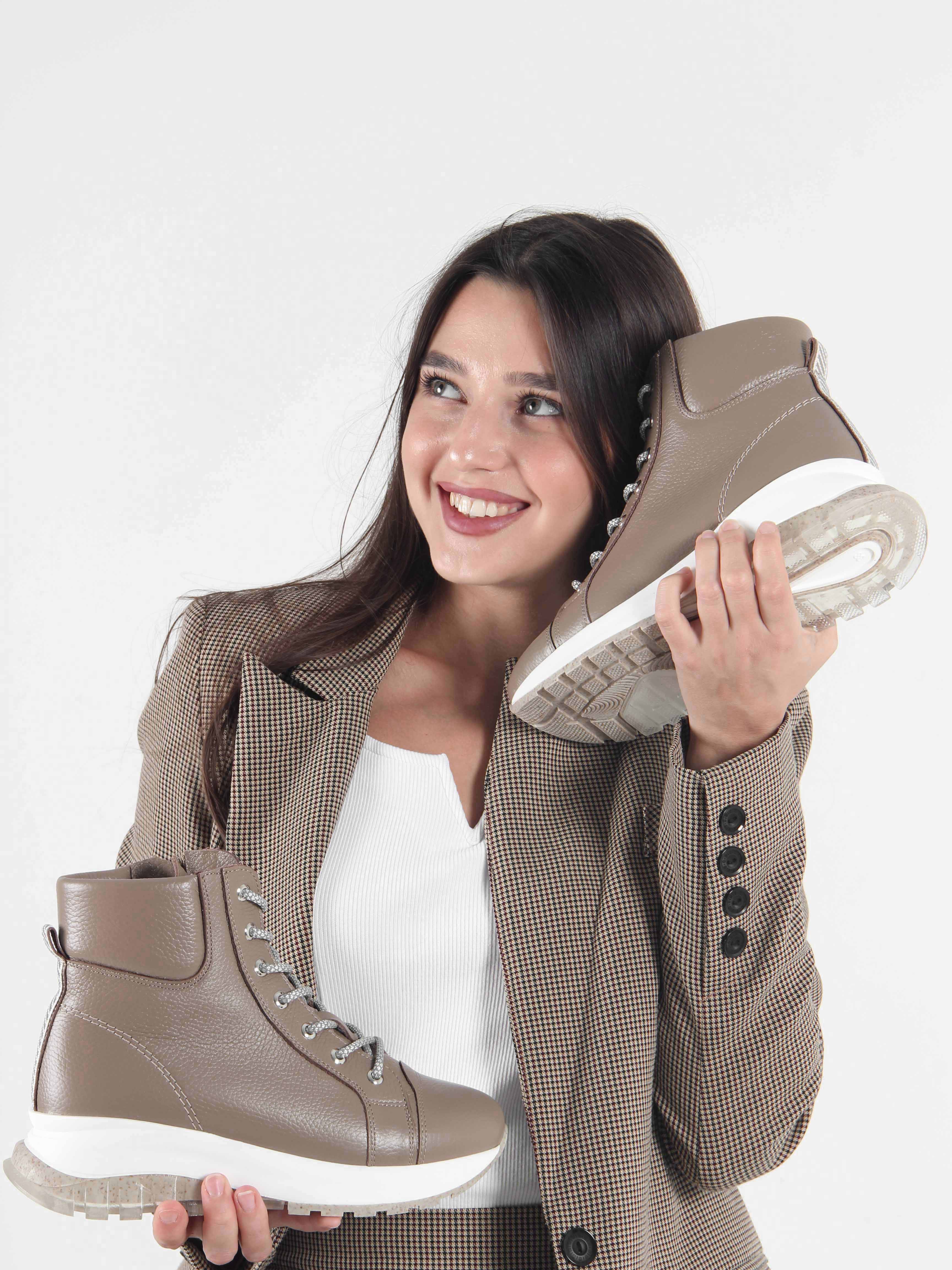 Ботинки хорошие, кажа мягкая, размеру соответствуют, но на пятке пришита заплатка из какой то пленки блесящей и когда первый раз померла она вся сморщилась и такое впечатление что сейчас лопнет. И я думаю со временем так и будет. Если бы не эта заплатка взяла бы удобные и мягкие