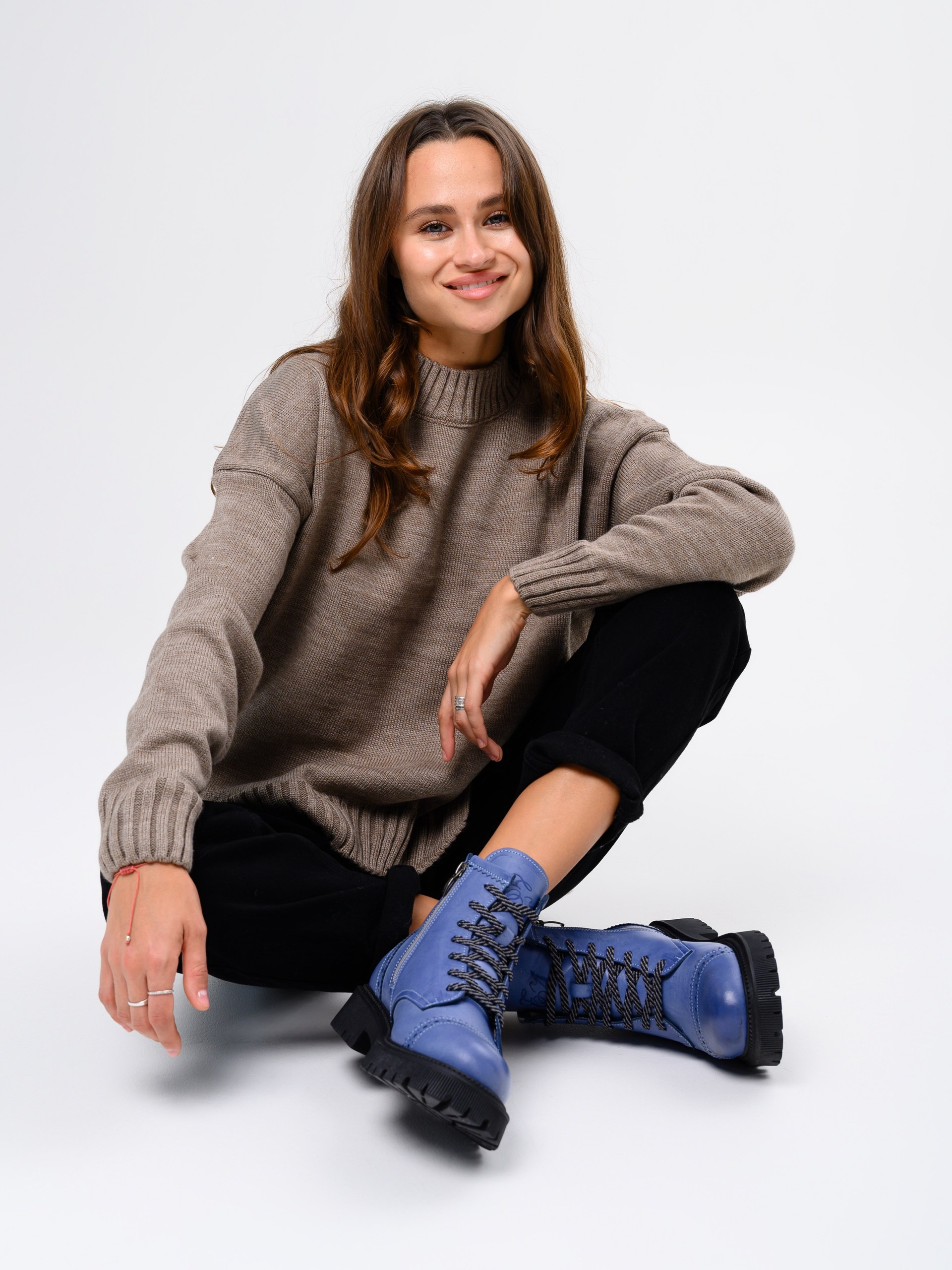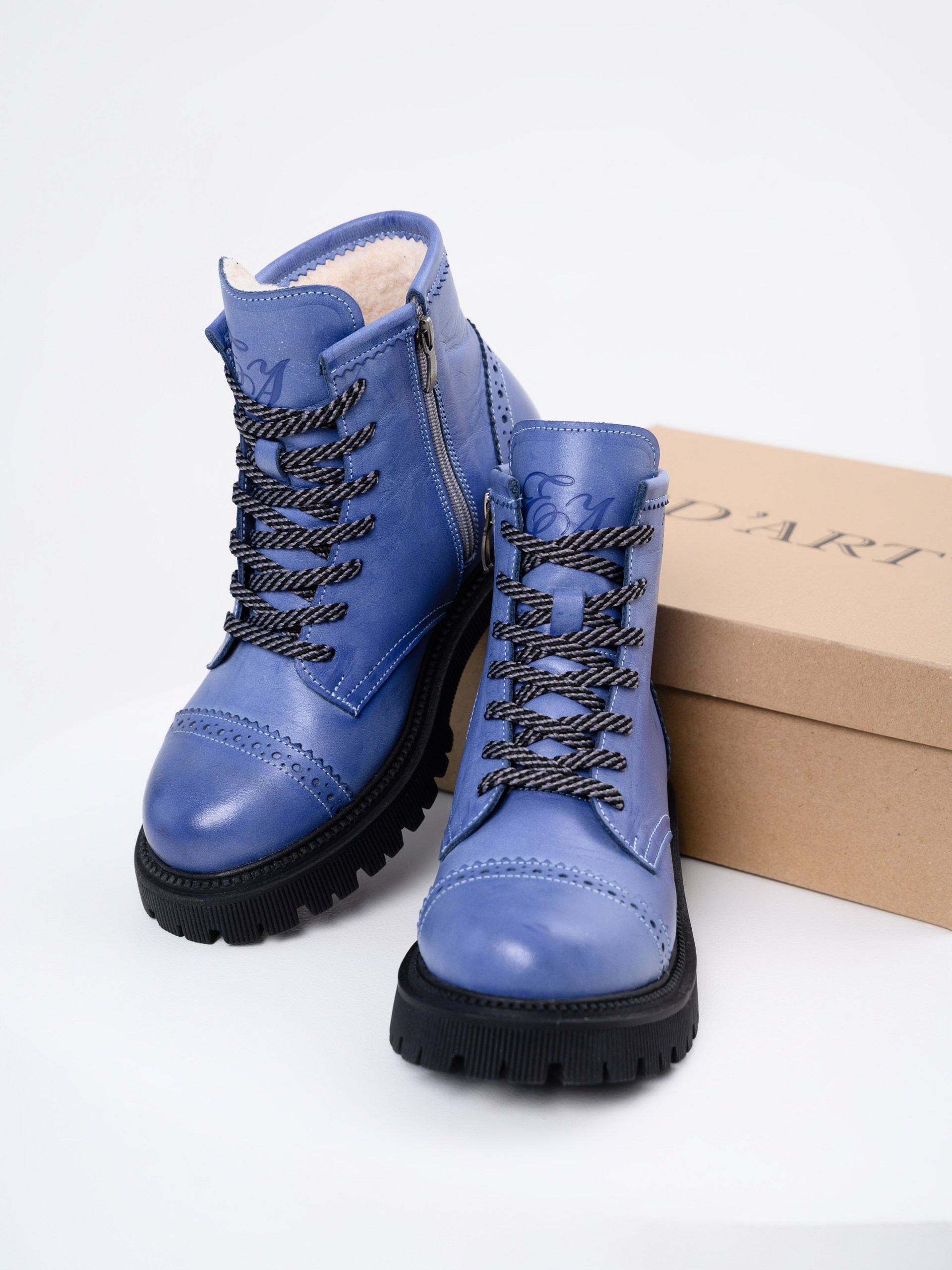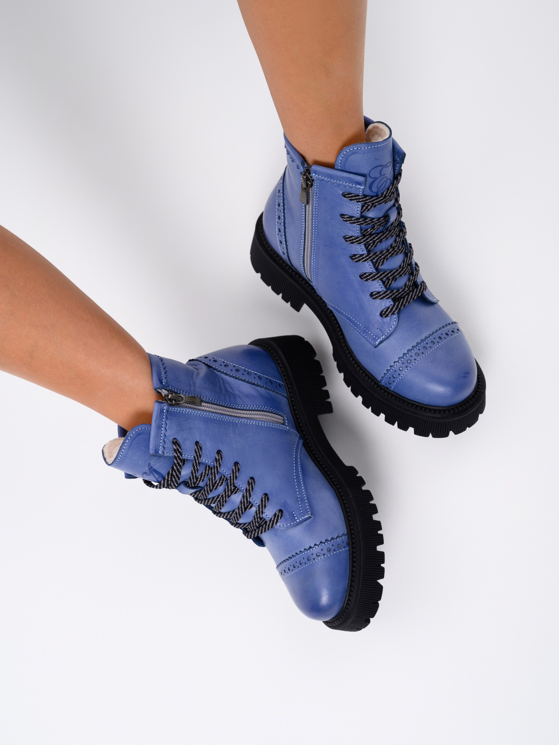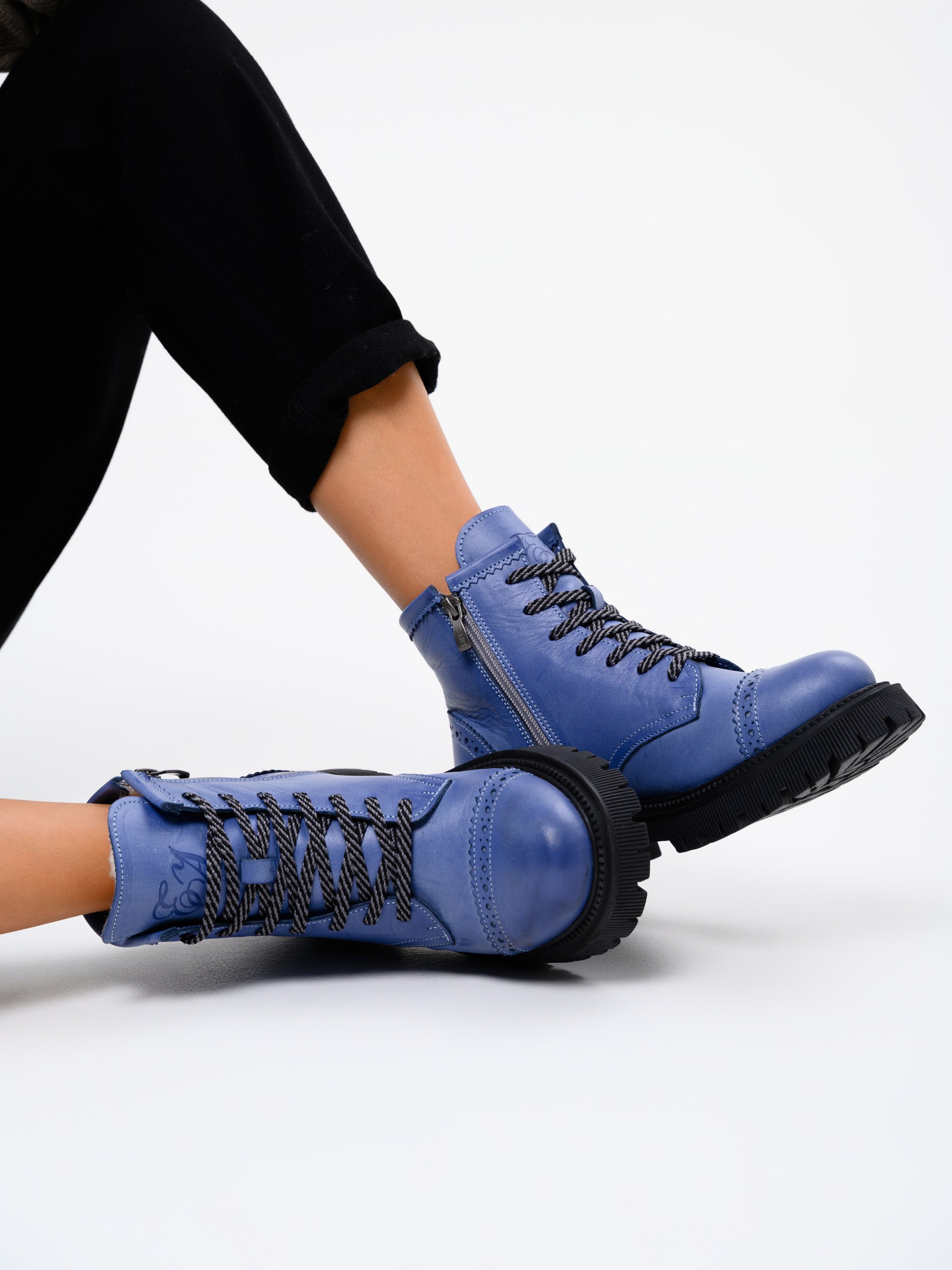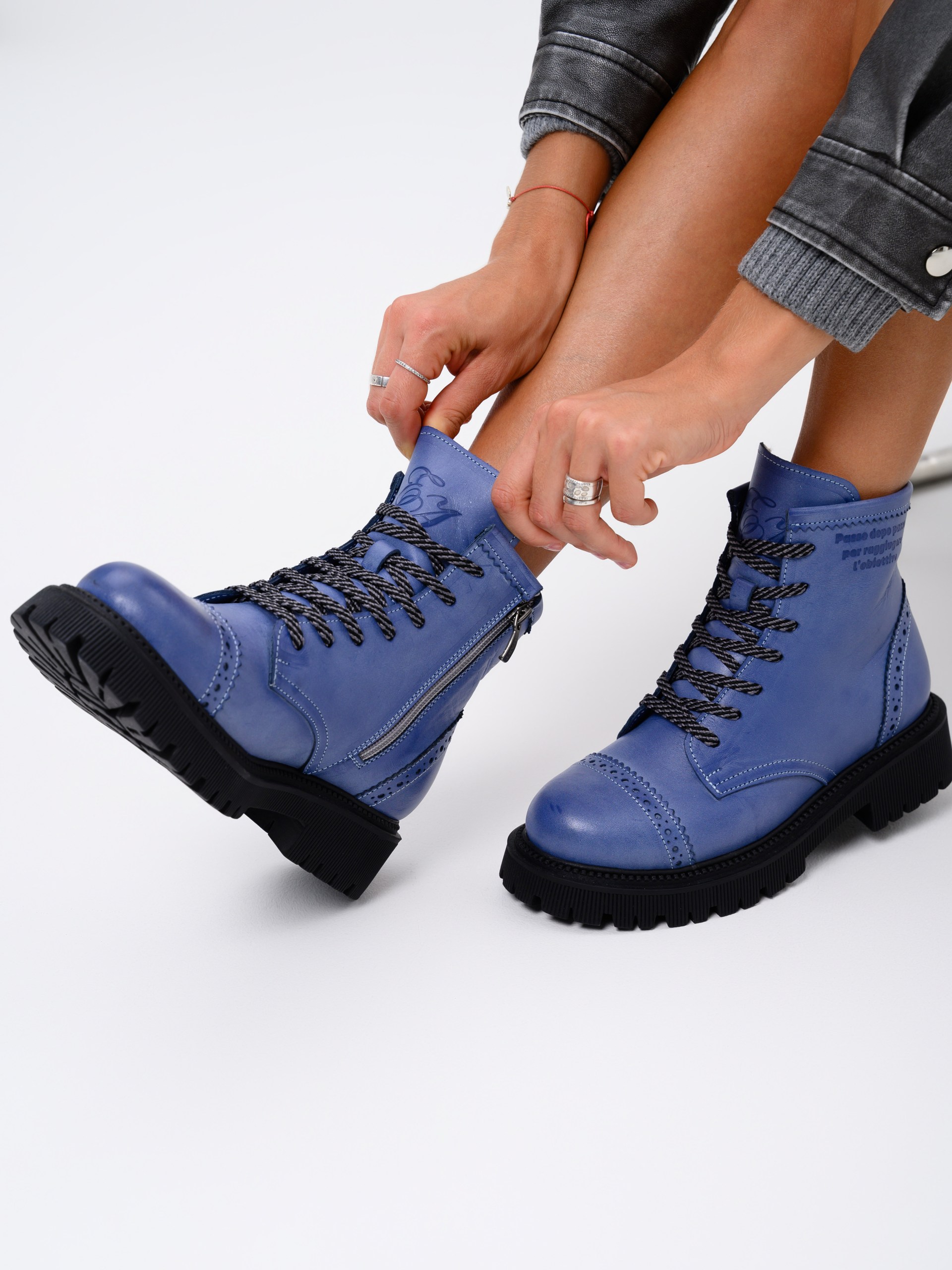 Ботинки кожаные синие