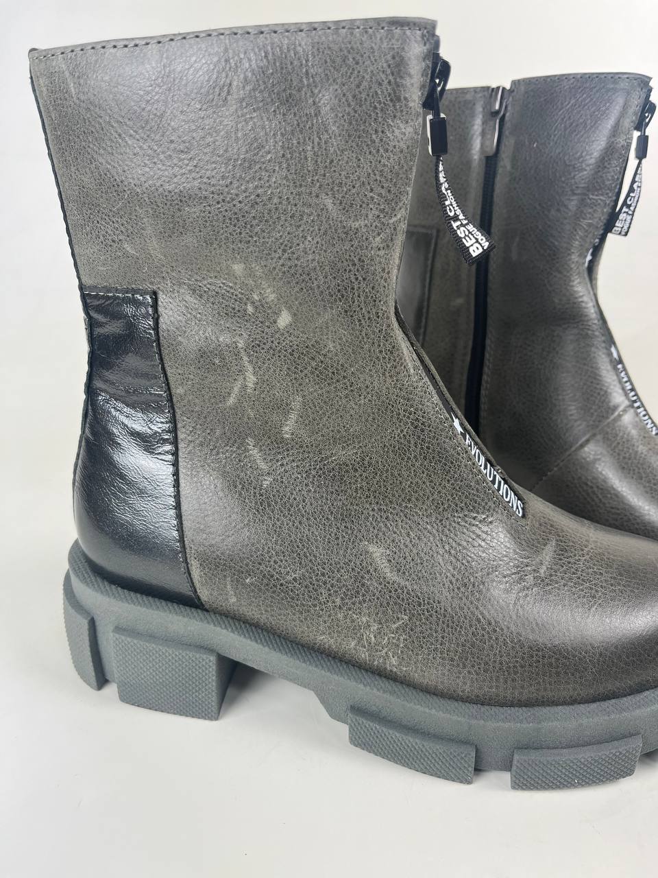 Ботинки хорошие, кажа мягкая, размеру соответствуют, но на пятке пришита заплатка из какой то пленки блесящей и когда первый раз померла она вся сморщилась и такое впечатление что сейчас лопнет. И я думаю со временем так и будет. Если бы не эта заплатка взяла бы удобные и мягкие