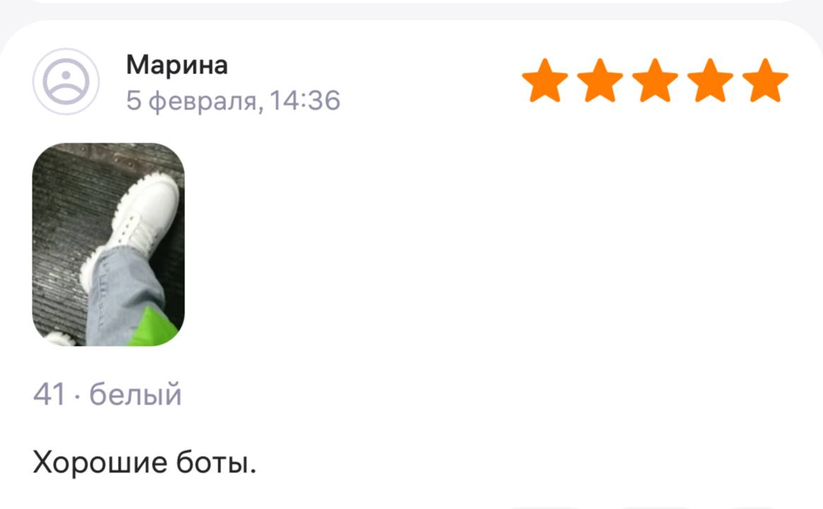 Ботинки хорошие, кажа мягкая, размеру соответствуют, но на пятке пришита заплатка из какой то пленки блесящей и когда первый раз померла она вся сморщилась и такое впечатление что сейчас лопнет. И я думаю со временем так и будет. Если бы не эта заплатка взяла бы удобные и мягкие