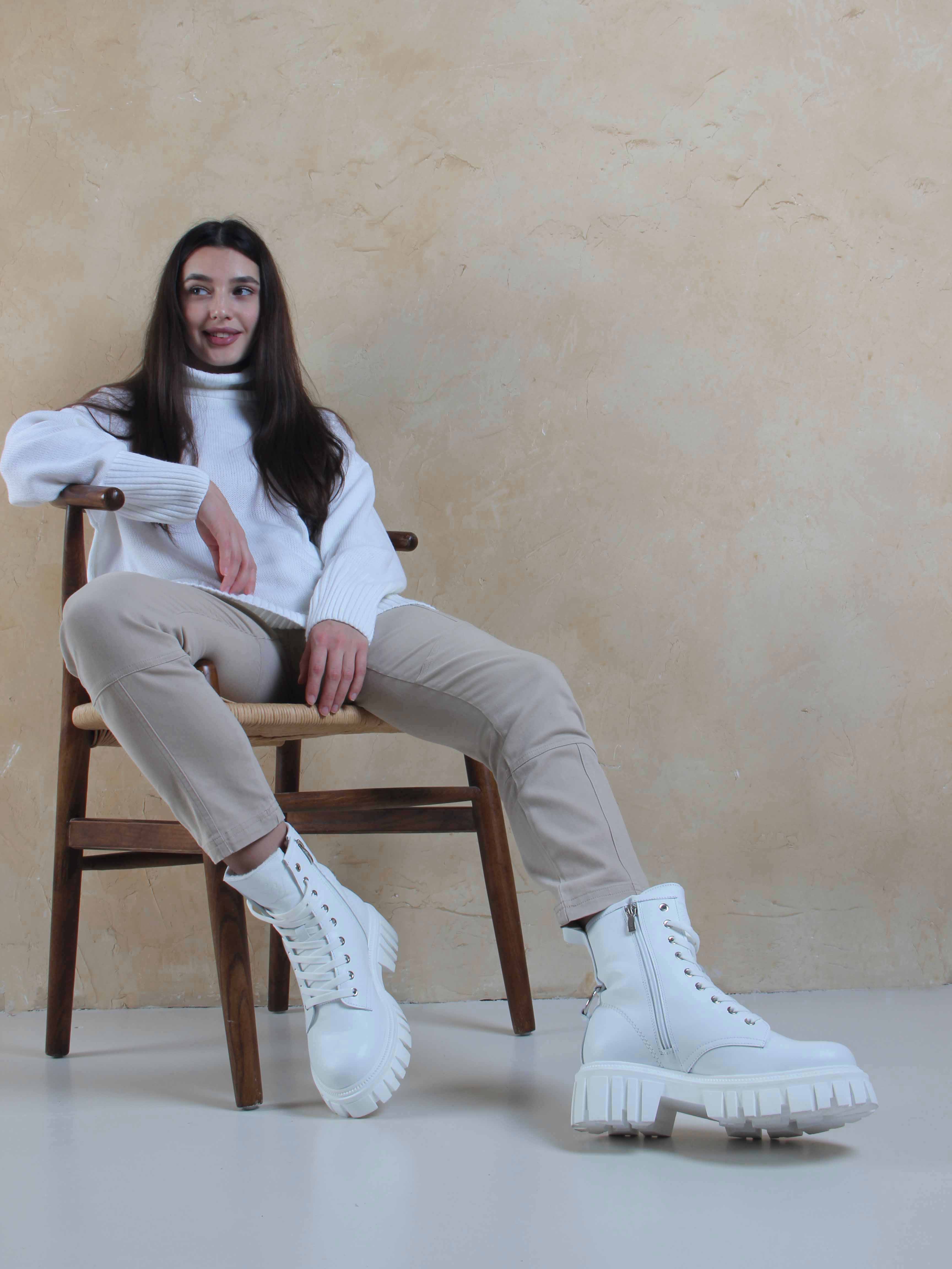 Ботинки кожаные белые