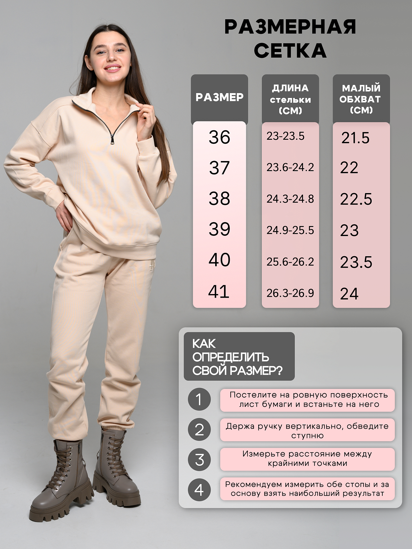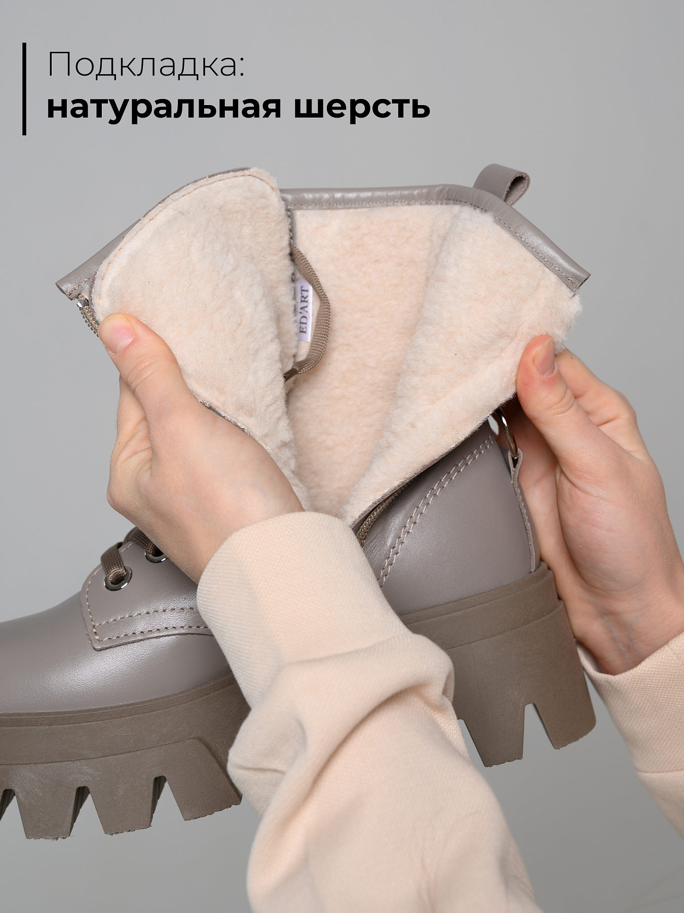 Ботинки хорошие, кажа мягкая, размеру соответствуют, но на пятке пришита заплатка из какой то пленки блесящей и когда первый раз померла она вся сморщилась и такое впечатление что сейчас лопнет. И я думаю со временем так и будет. Если бы не эта заплатка взяла бы удобные и мягкие