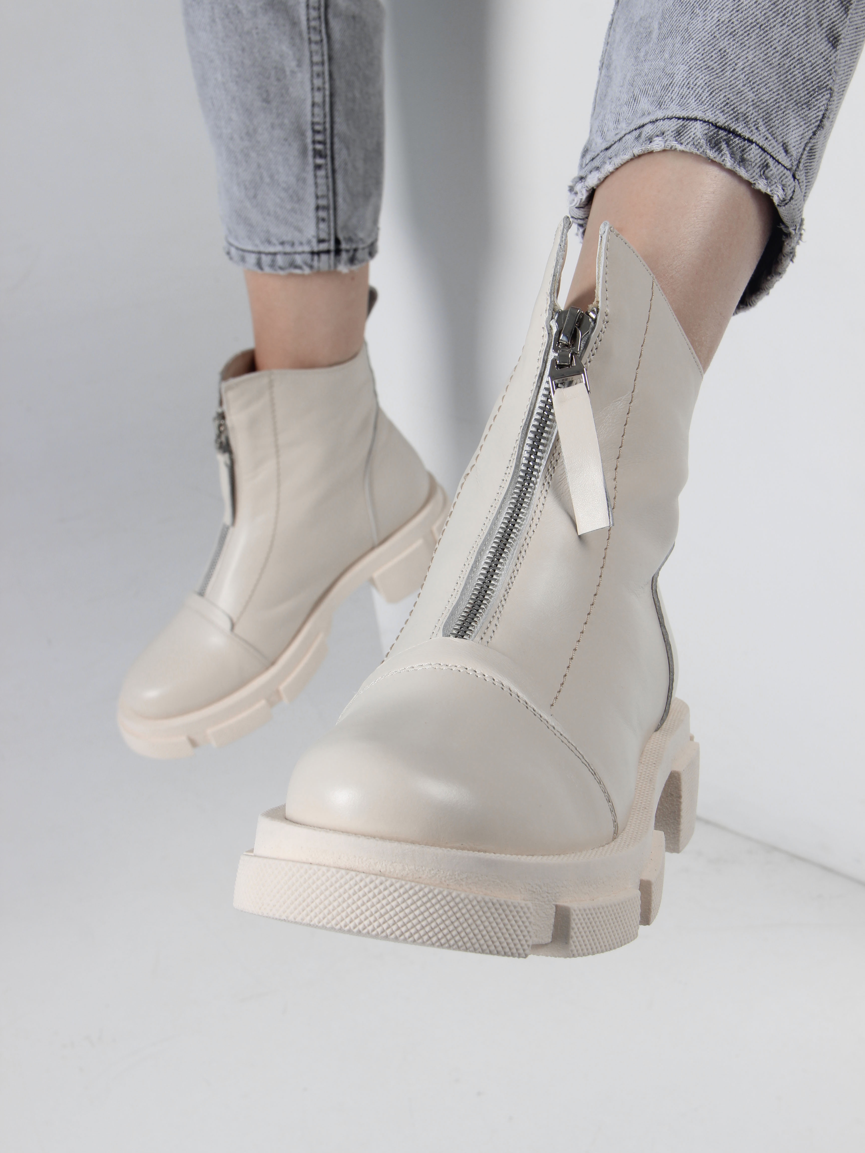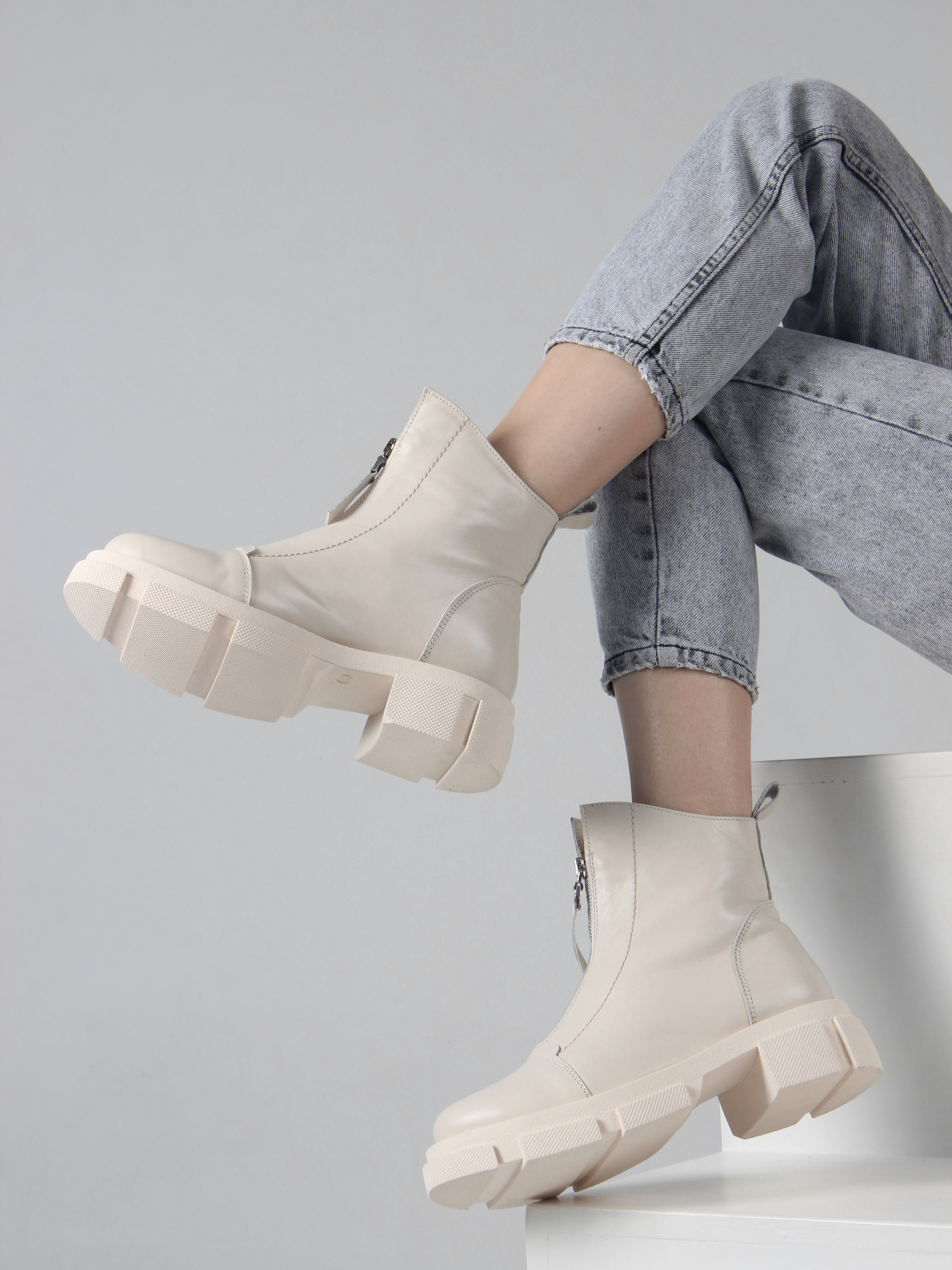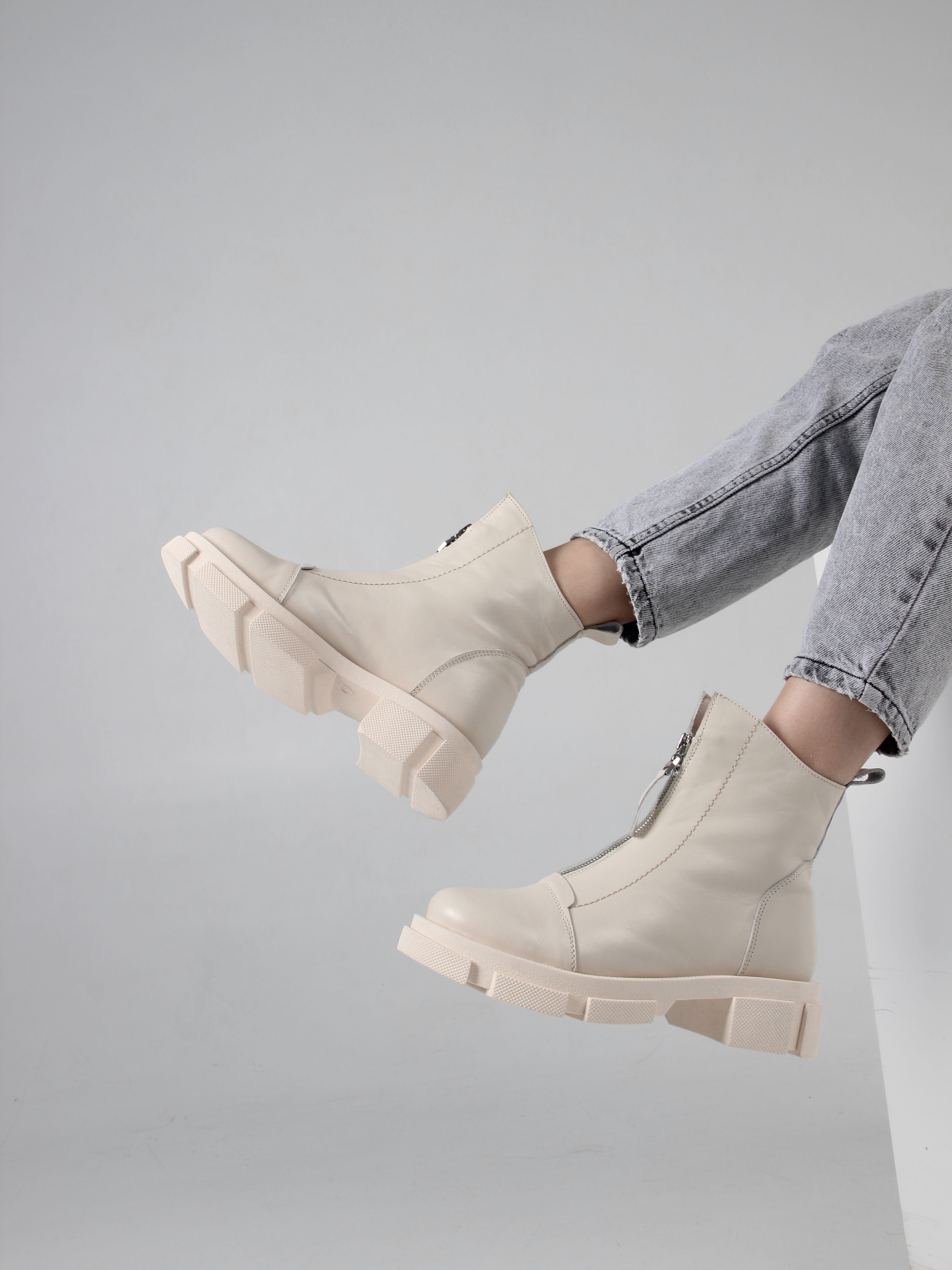 Ботинки кожаные бежевые