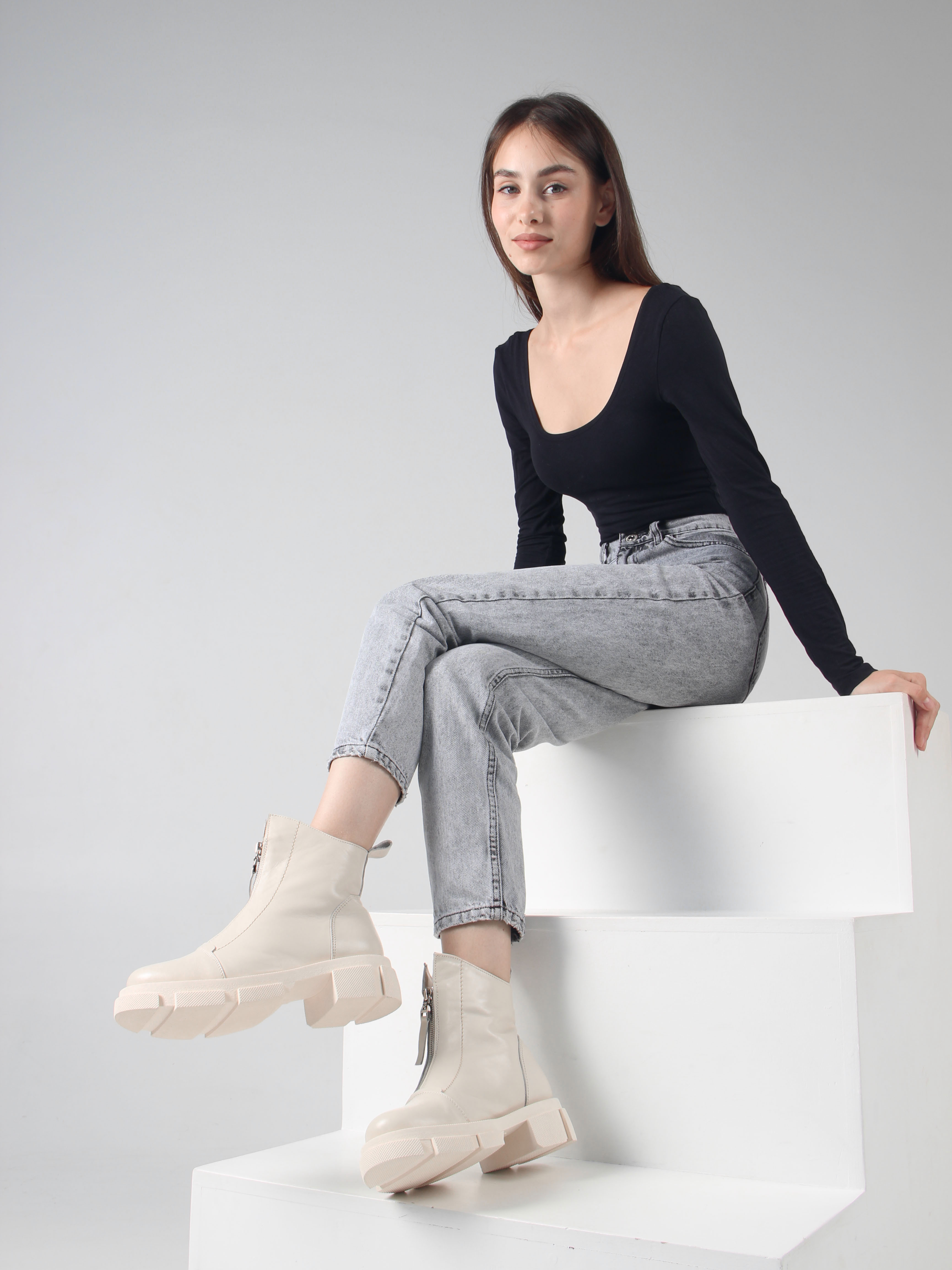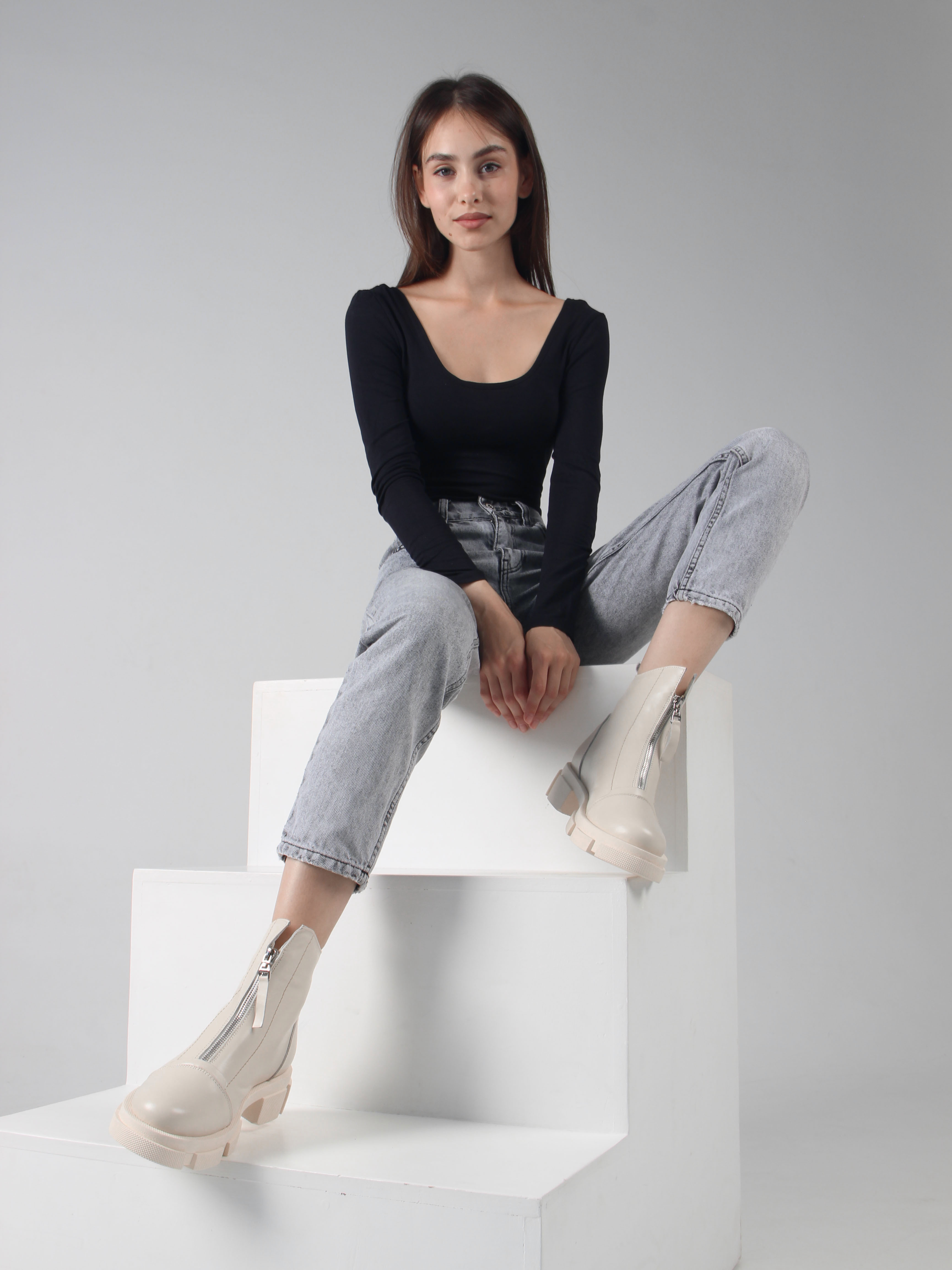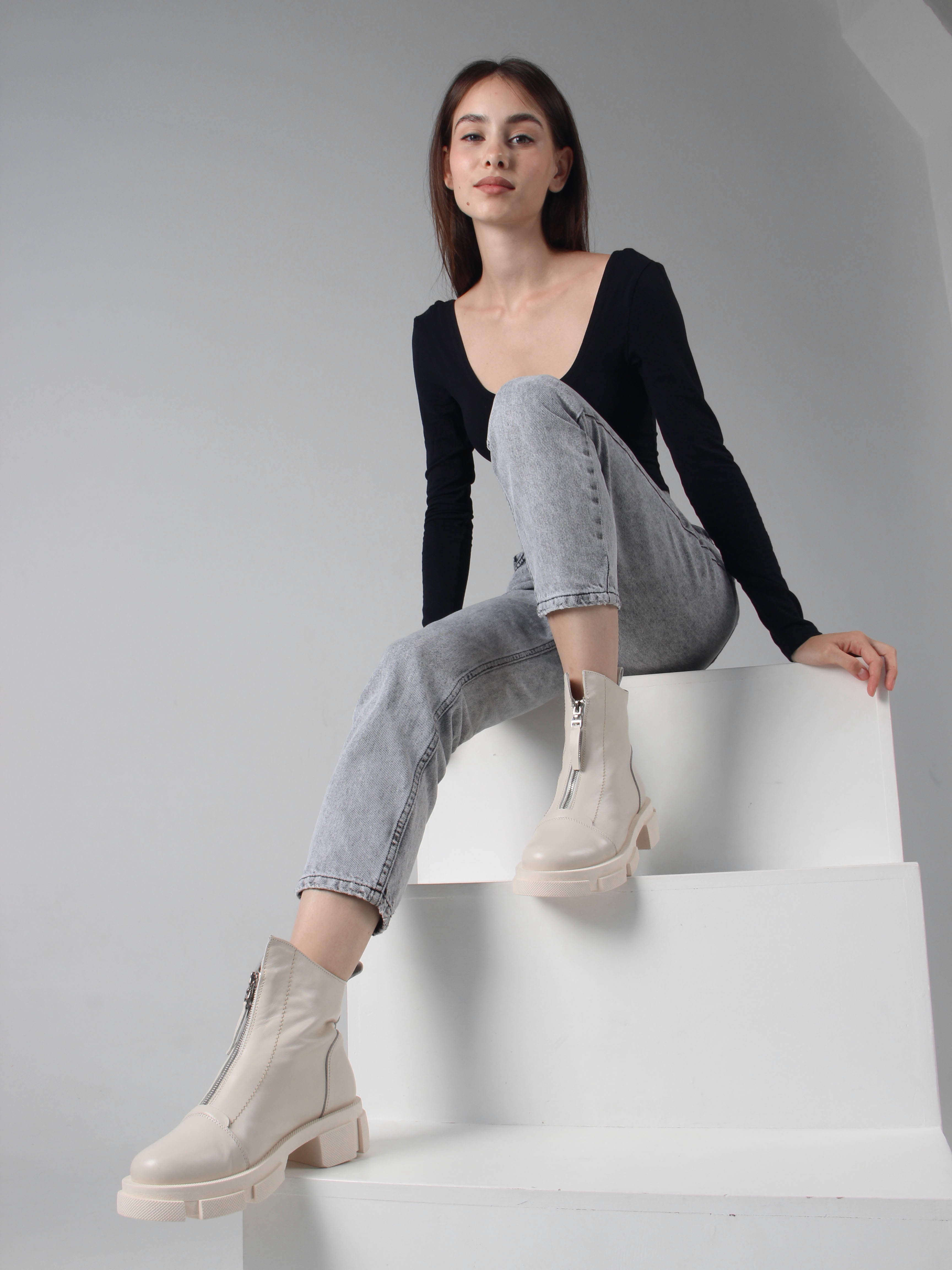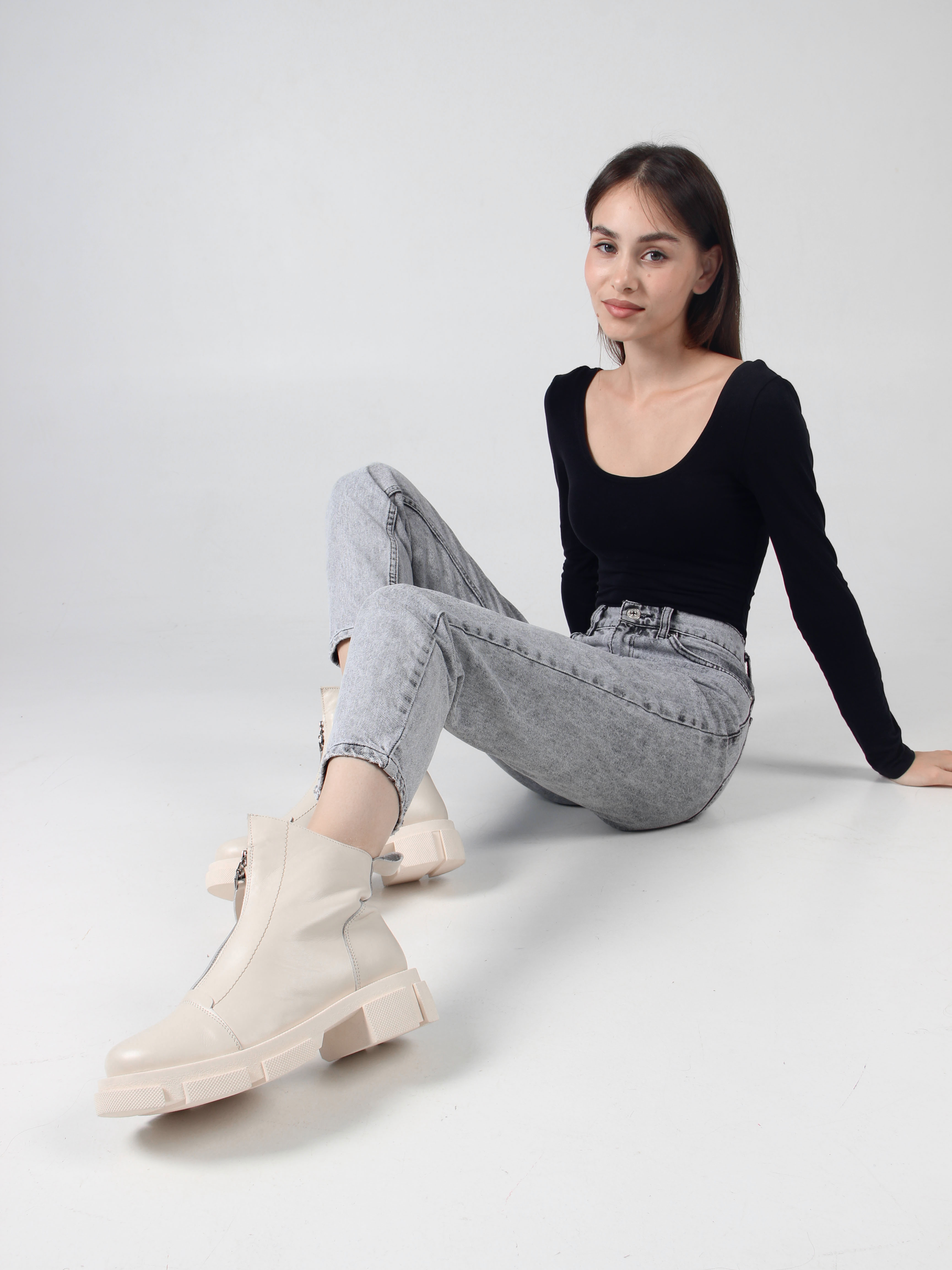 Ботинки кожаные бежевые