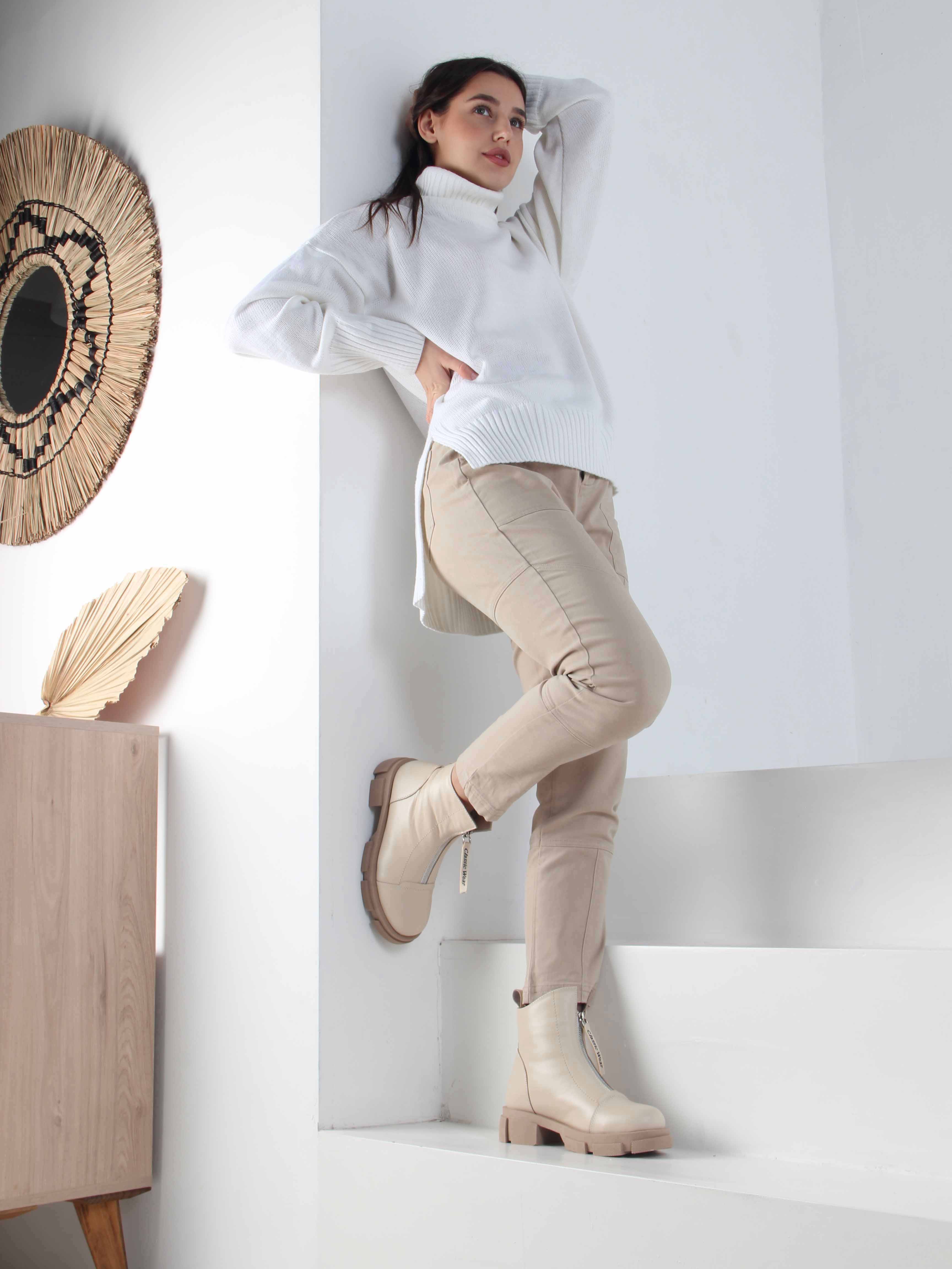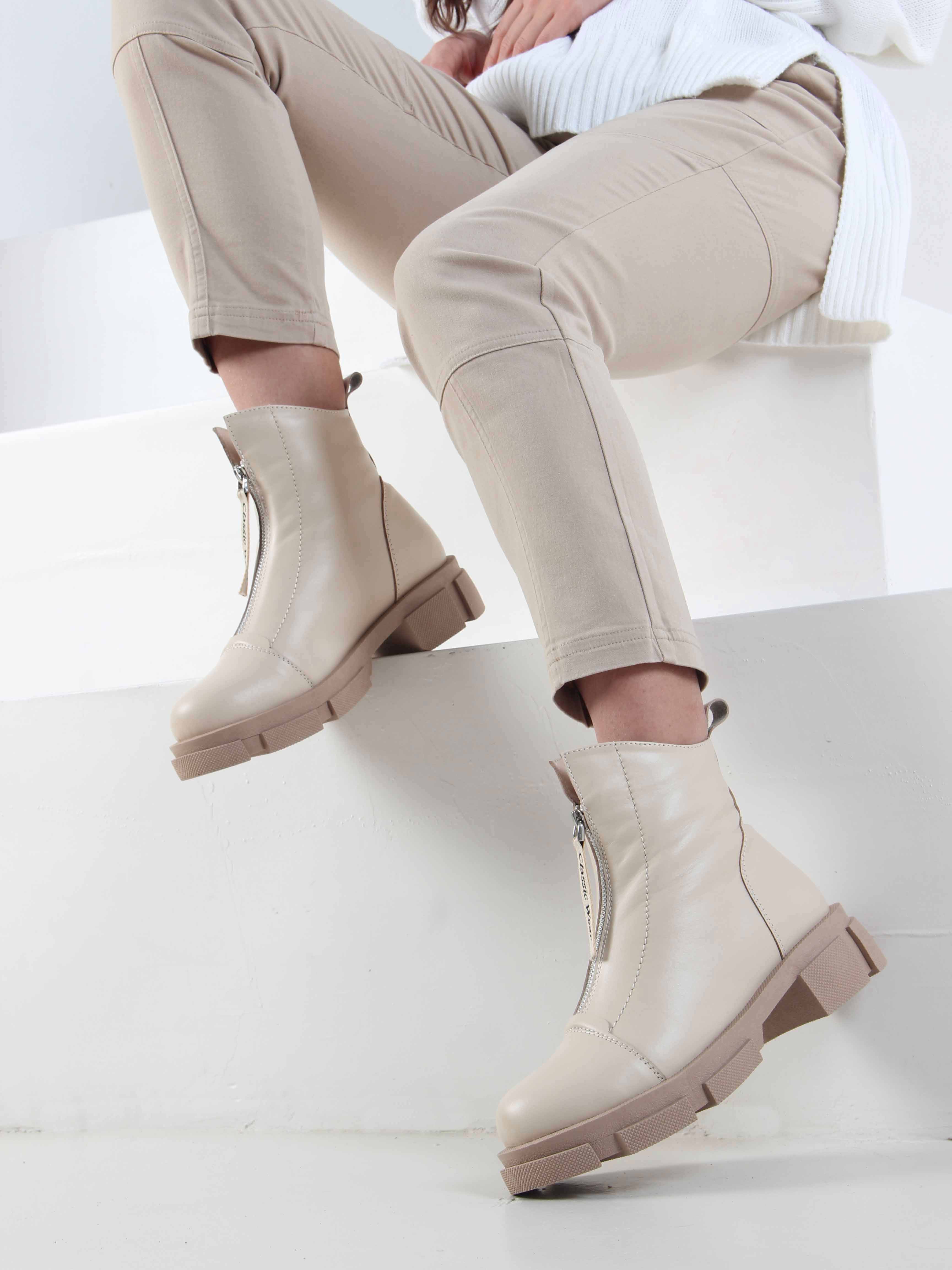 Ботинки хорошие, кажа мягкая, размеру соответствуют, но на пятке пришита заплатка из какой то пленки блесящей и когда первый раз померла она вся сморщилась и такое впечатление что сейчас лопнет. И я думаю со временем так и будет. Если бы не эта заплатка взяла бы удобные и мягкие