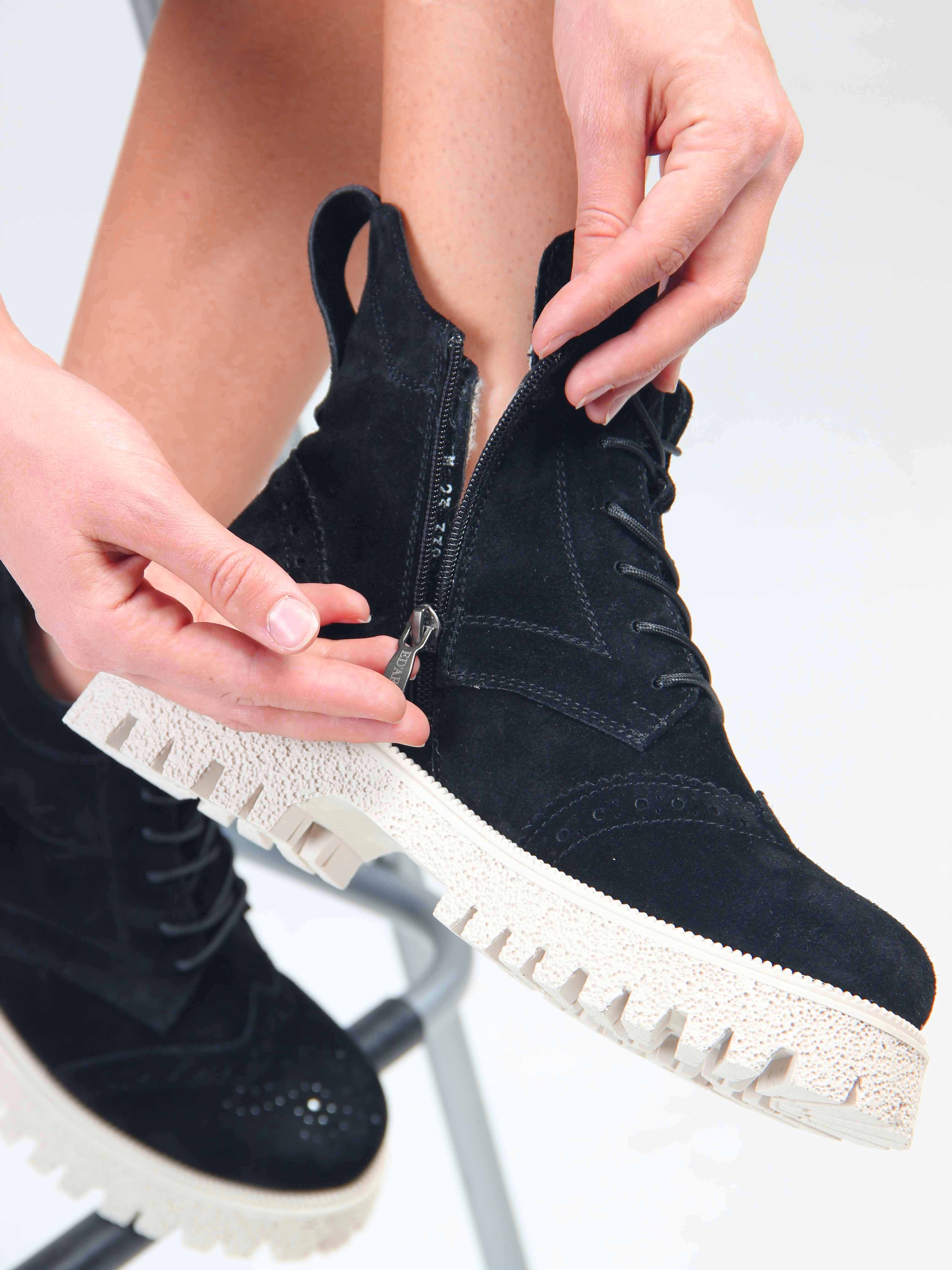 Ботинки хорошие, кажа мягкая, размеру соответствуют, но на пятке пришита заплатка из какой то пленки блесящей и когда первый раз померла она вся сморщилась и такое впечатление что сейчас лопнет. И я думаю со временем так и будет. Если бы не эта заплатка взяла бы удобные и мягкие