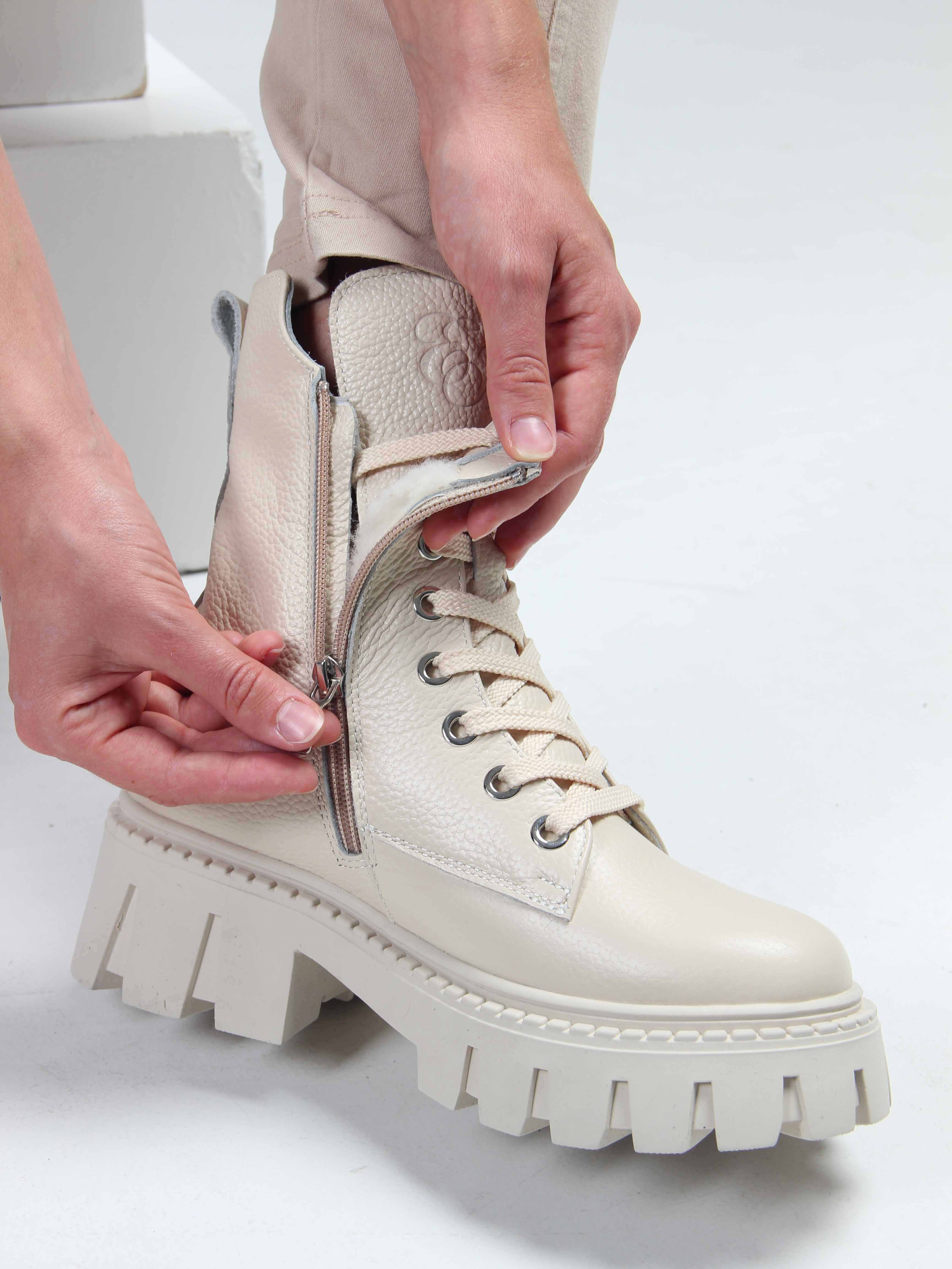 Ботинки кожаные бежевые