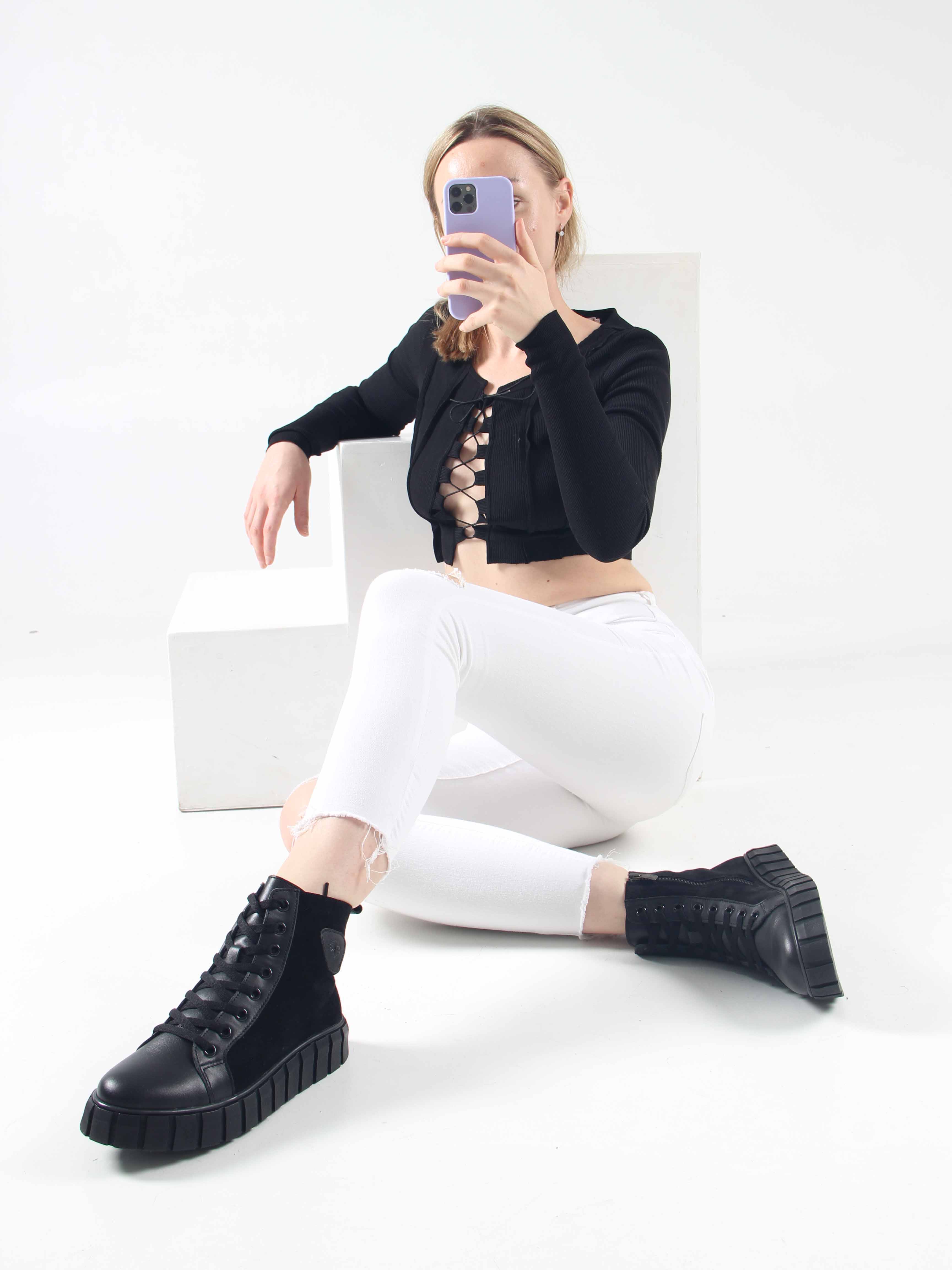 Ботинки замшевые черные