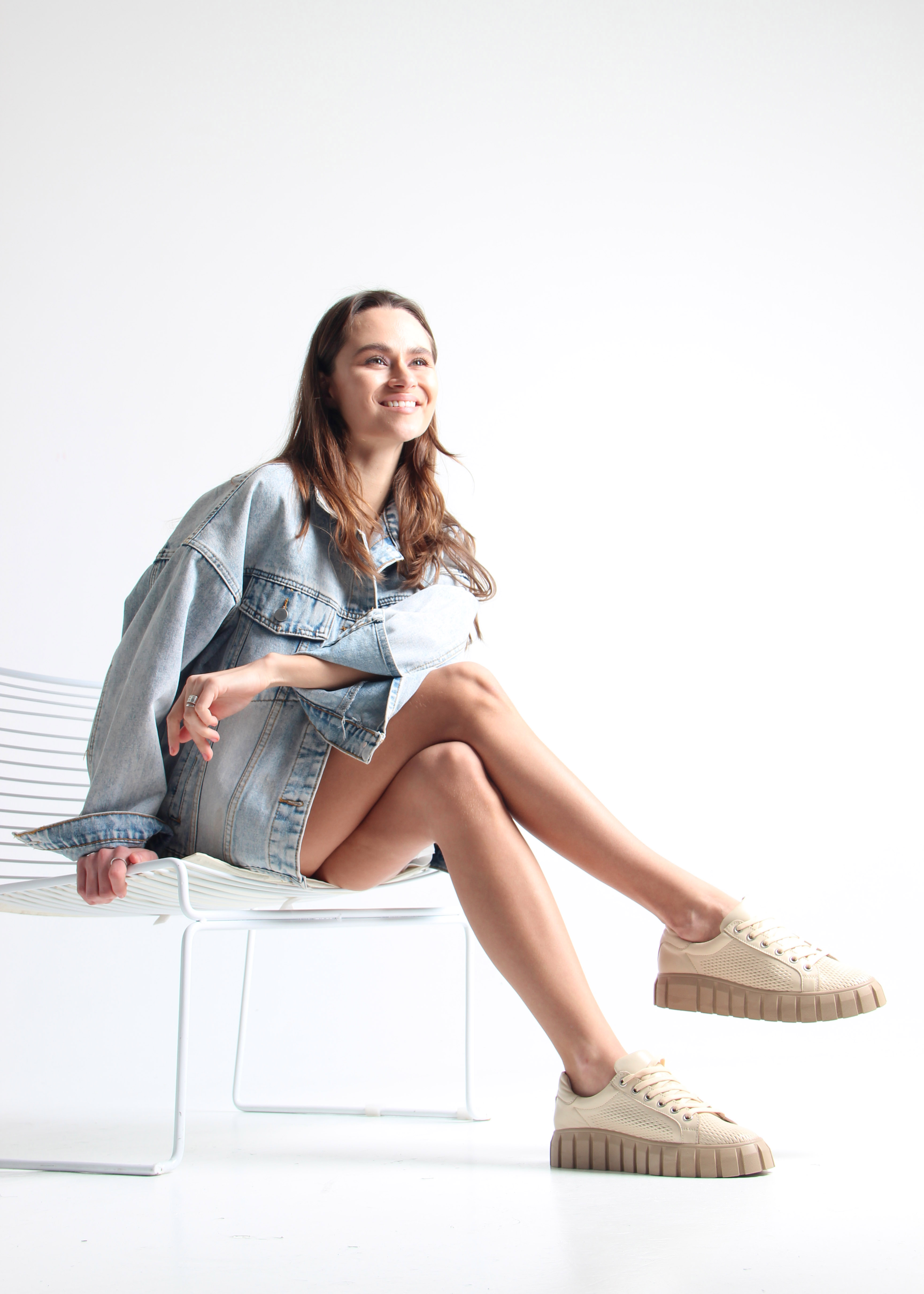 Кеды кожаные бежевые с перфорацией