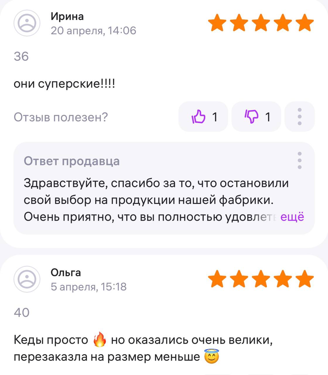 Ответ продавца