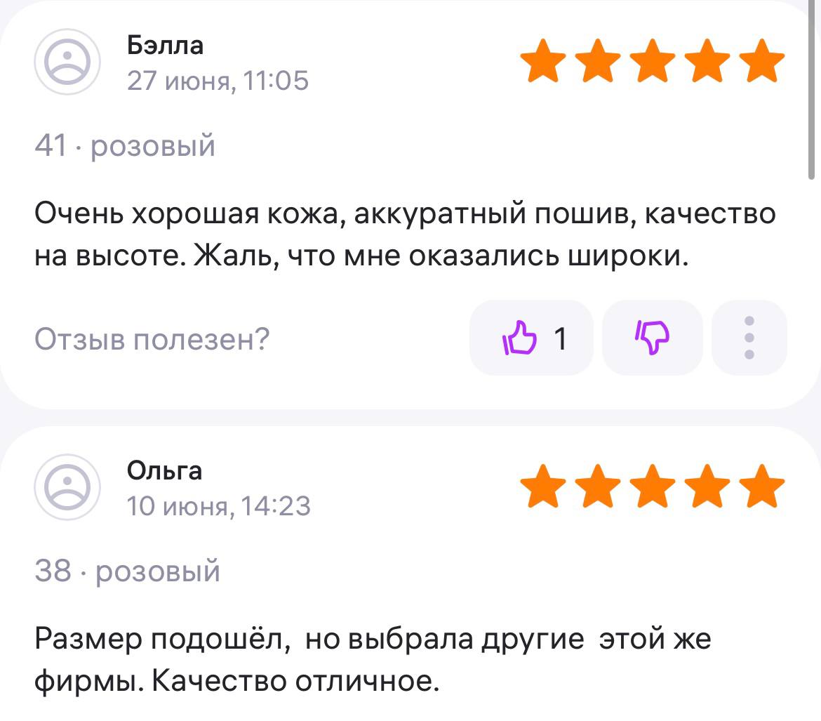 Ботинки хорошие, кажа мягкая, размеру соответствуют, но на пятке пришита заплатка из какой то пленки блесящей и когда первый раз померла она вся сморщилась и такое впечатление что сейчас лопнет. И я думаю со временем так и будет. Если бы не эта заплатка взяла бы удобные и мягкие