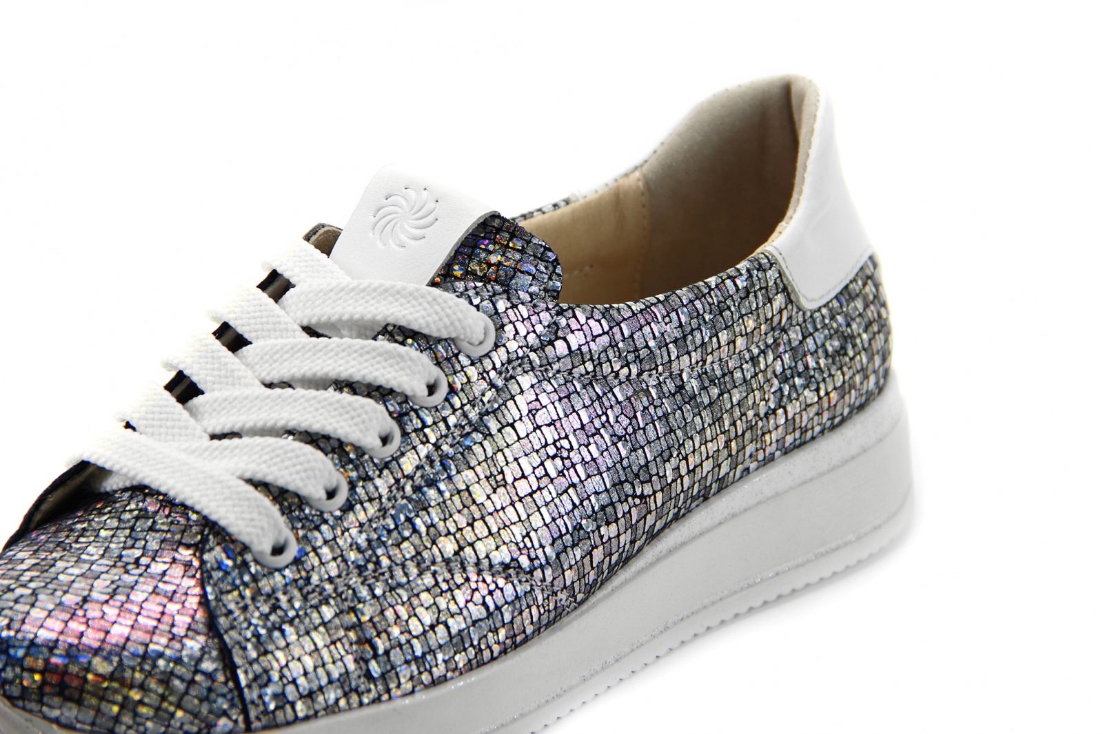 Кроссовки кожаные серебрянные