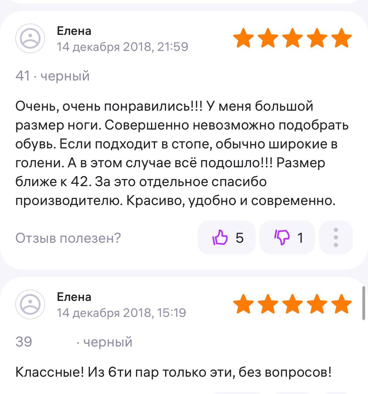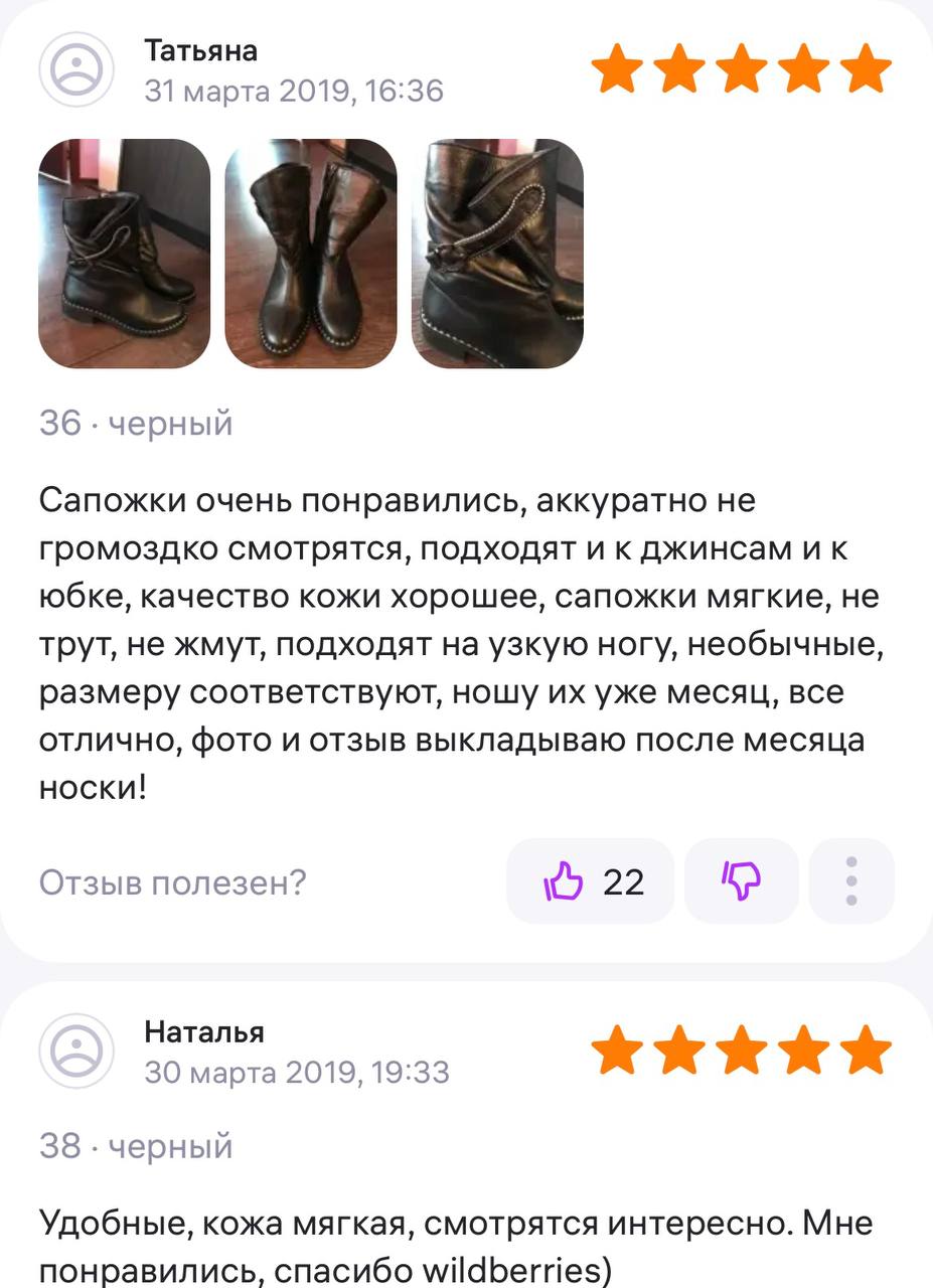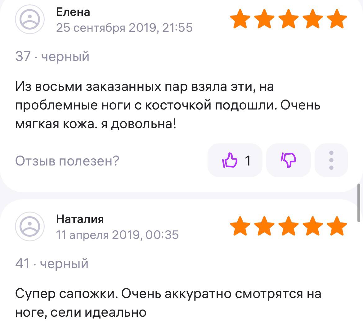 Ботинки хорошие, кажа мягкая, размеру соответствуют, но на пятке пришита заплатка из какой то пленки блесящей и когда первый раз померла она вся сморщилась и такое впечатление что сейчас лопнет. И я думаю со временем так и будет. Если бы не эта заплатка взяла бы удобные и мягкие