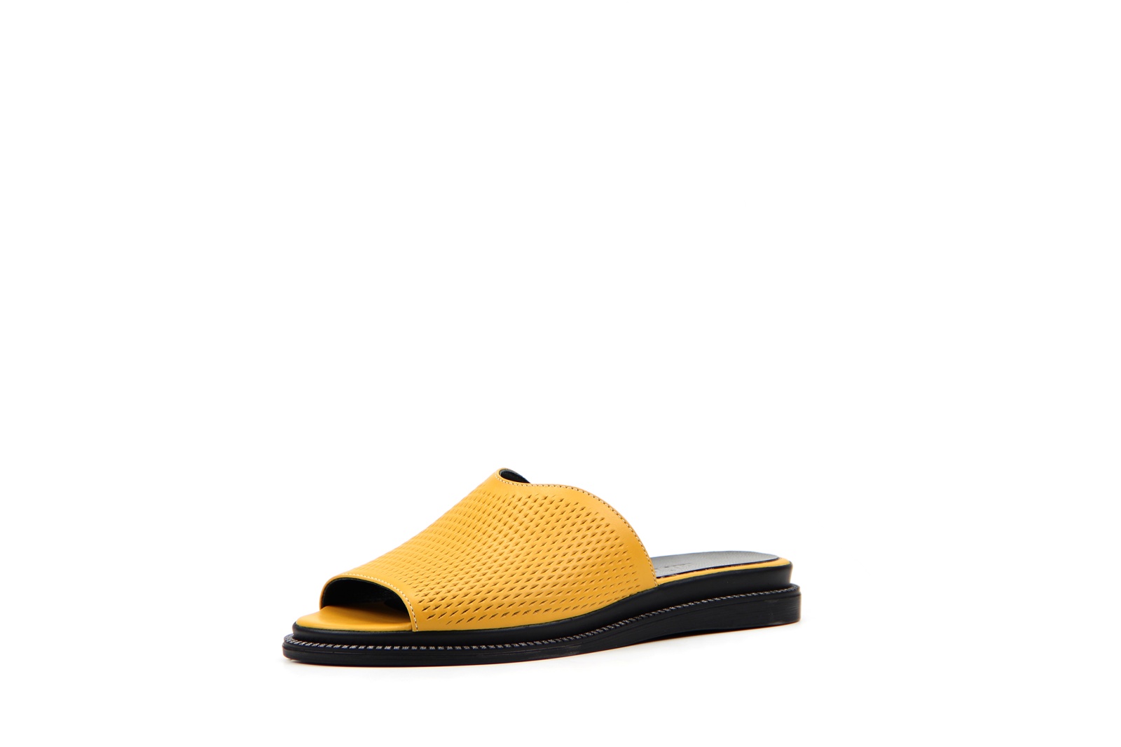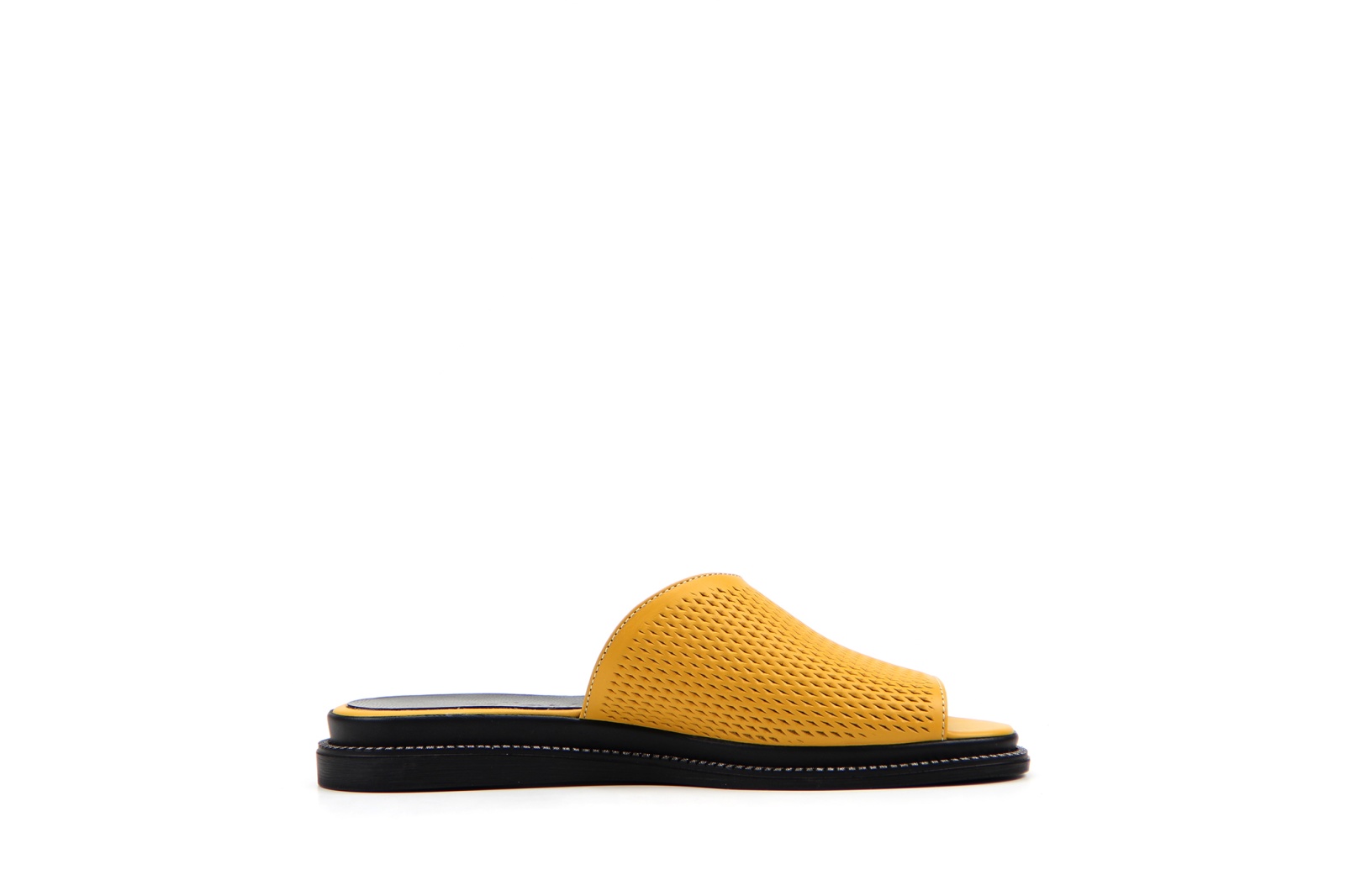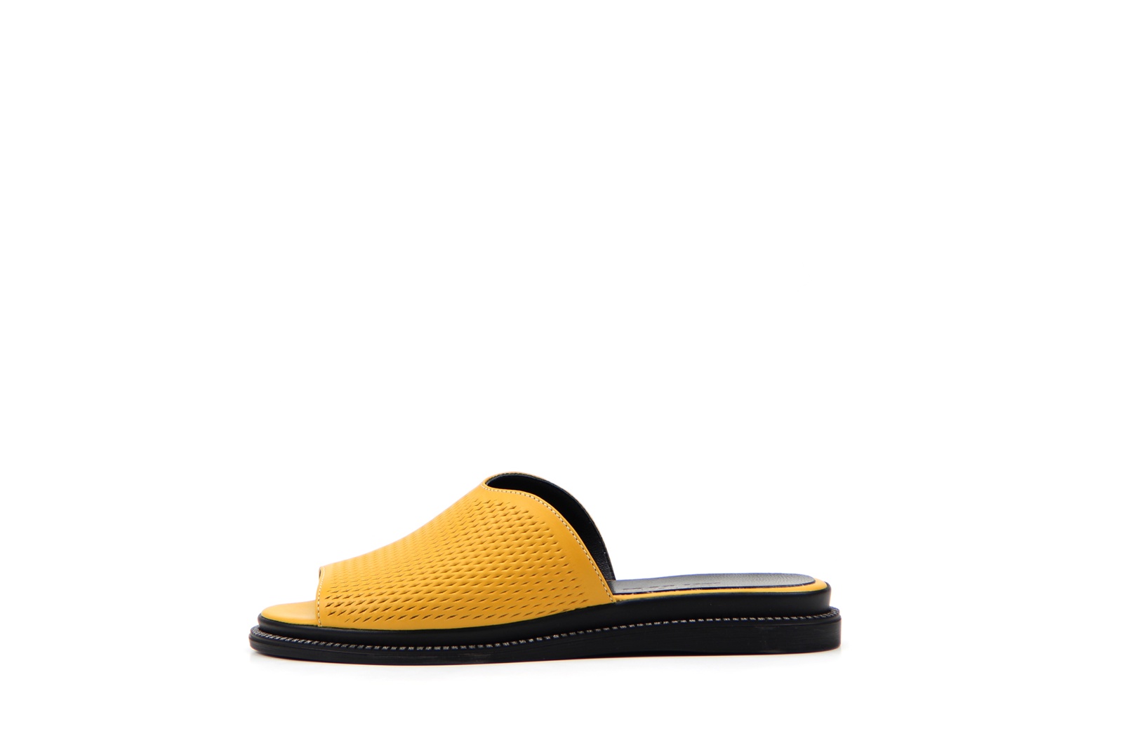 Мюли кожаные желтые с перфорацией
