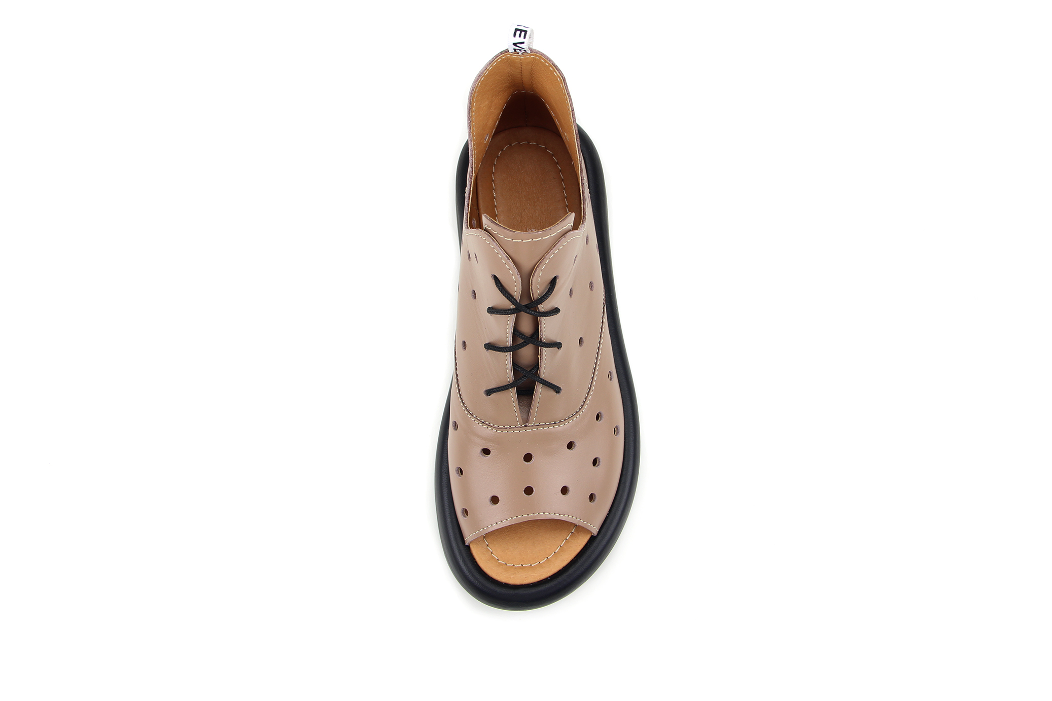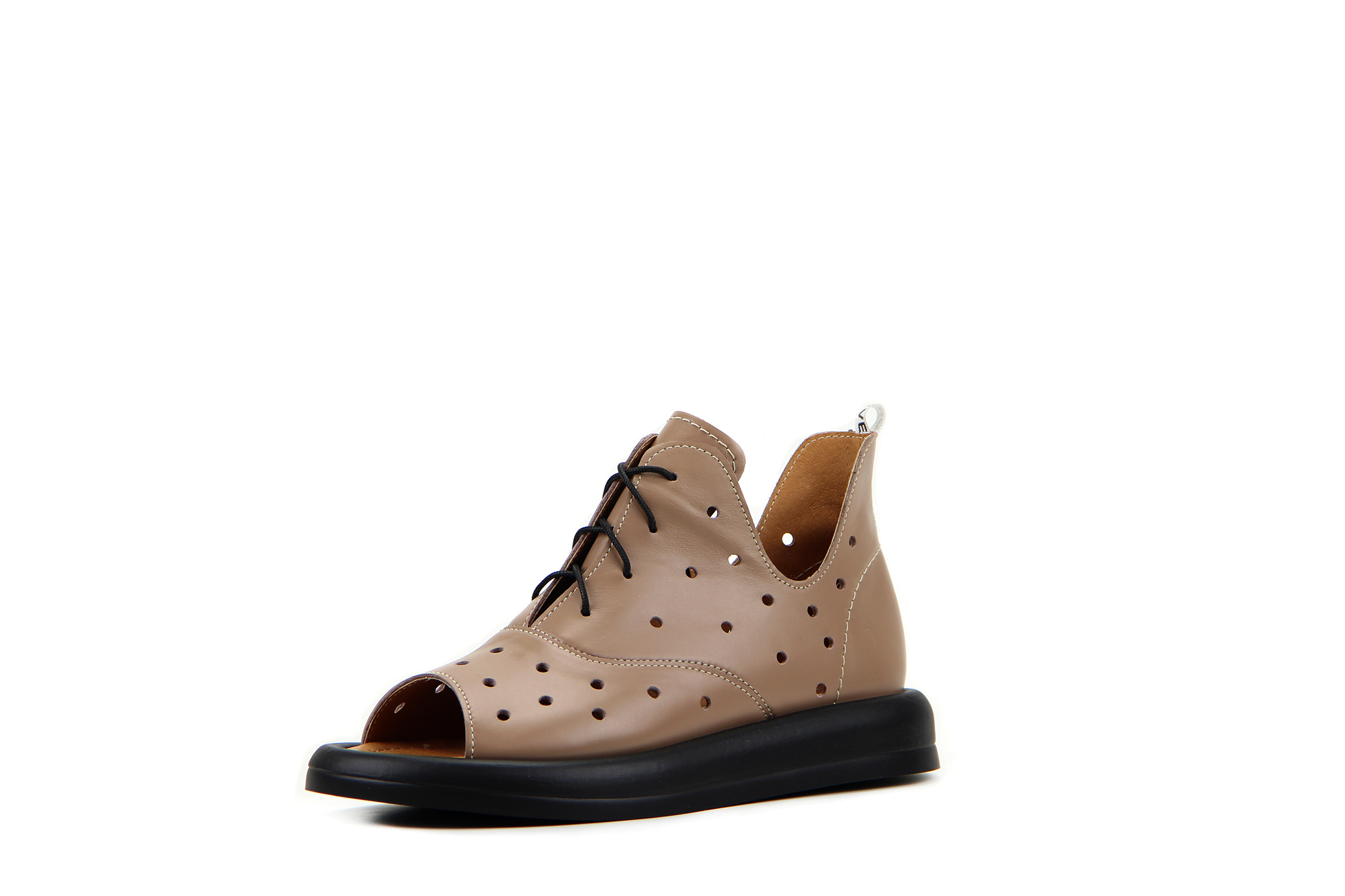 Туфли босоногие замшевые коричневые с перфорацией
