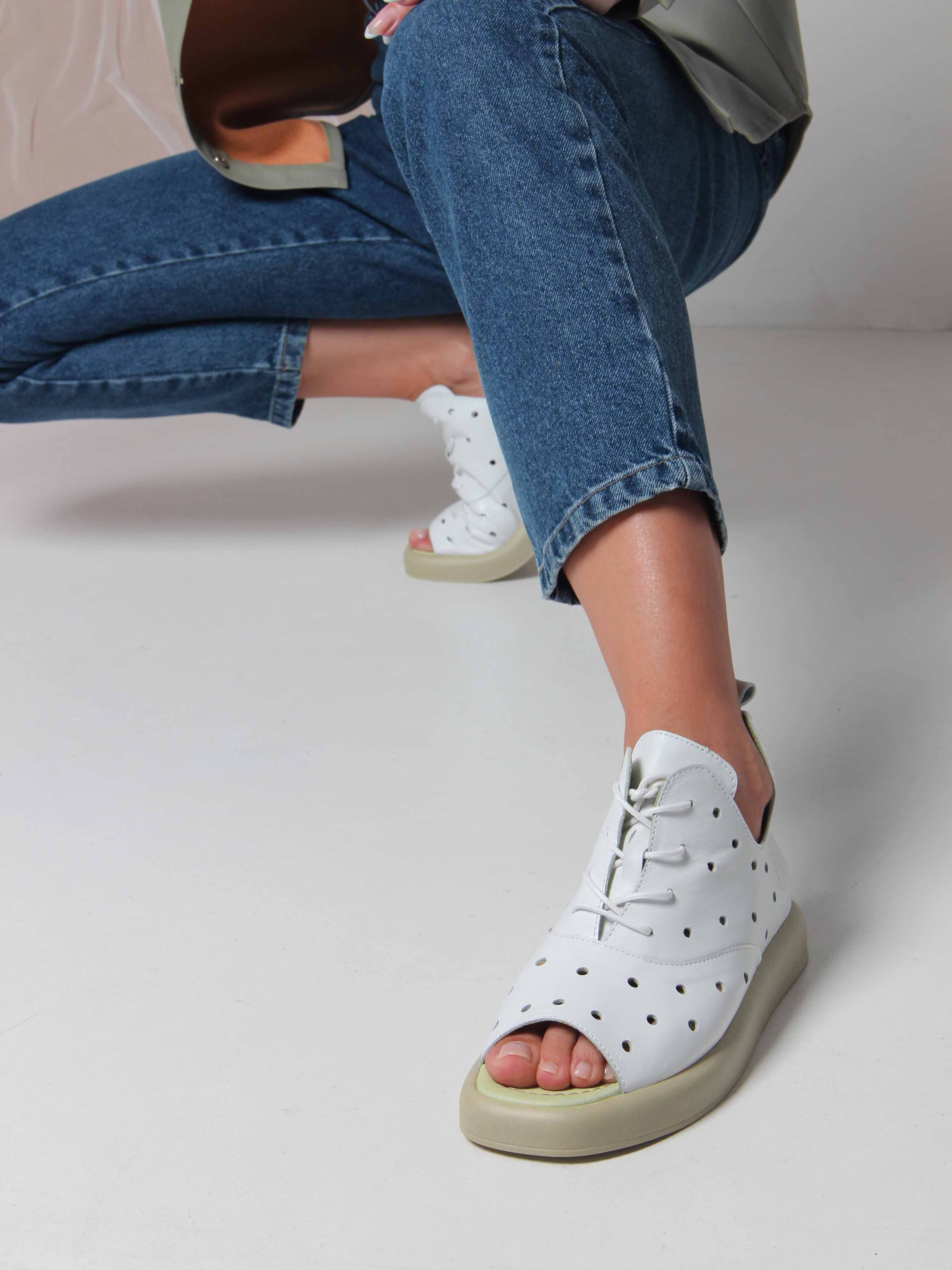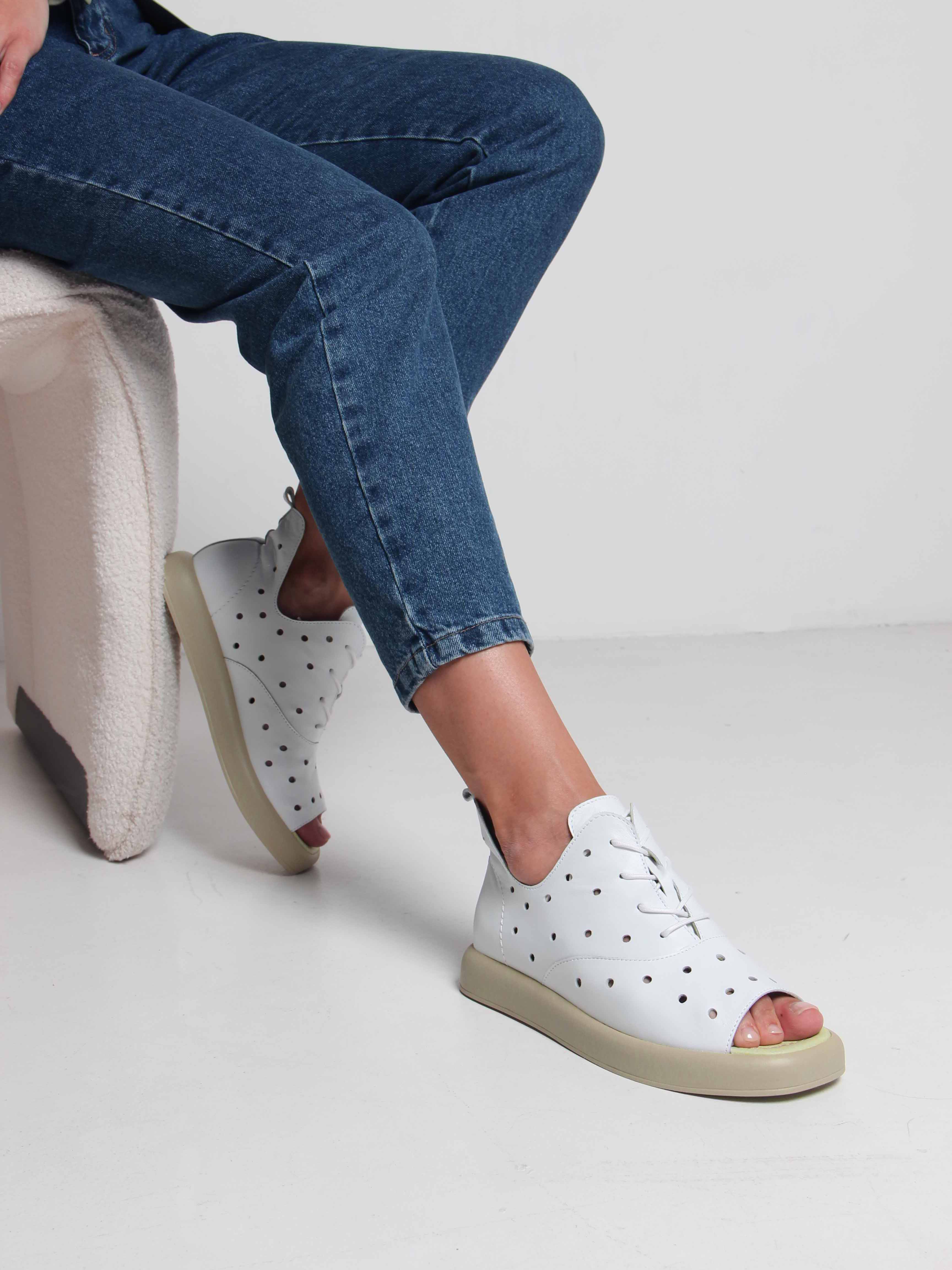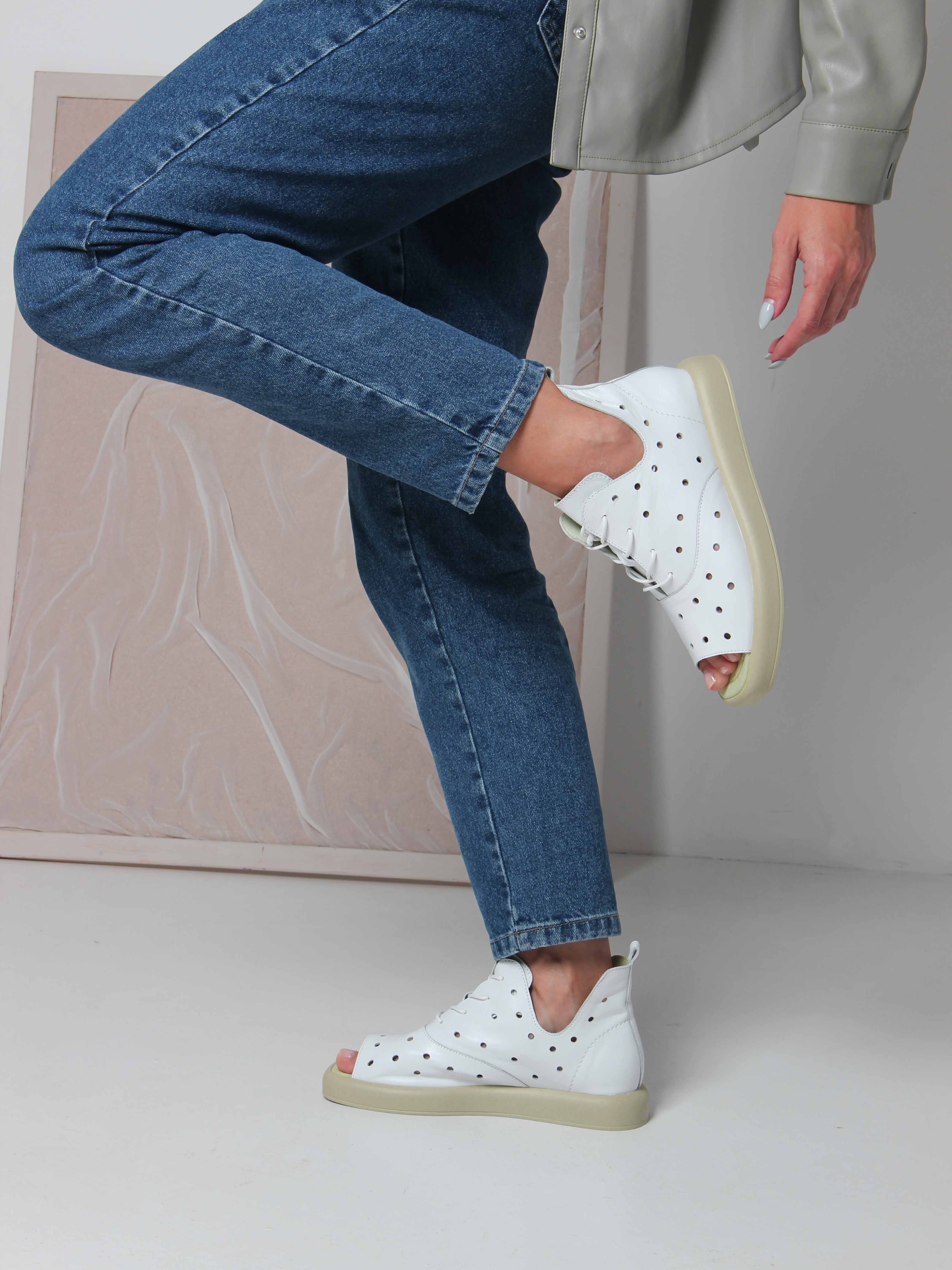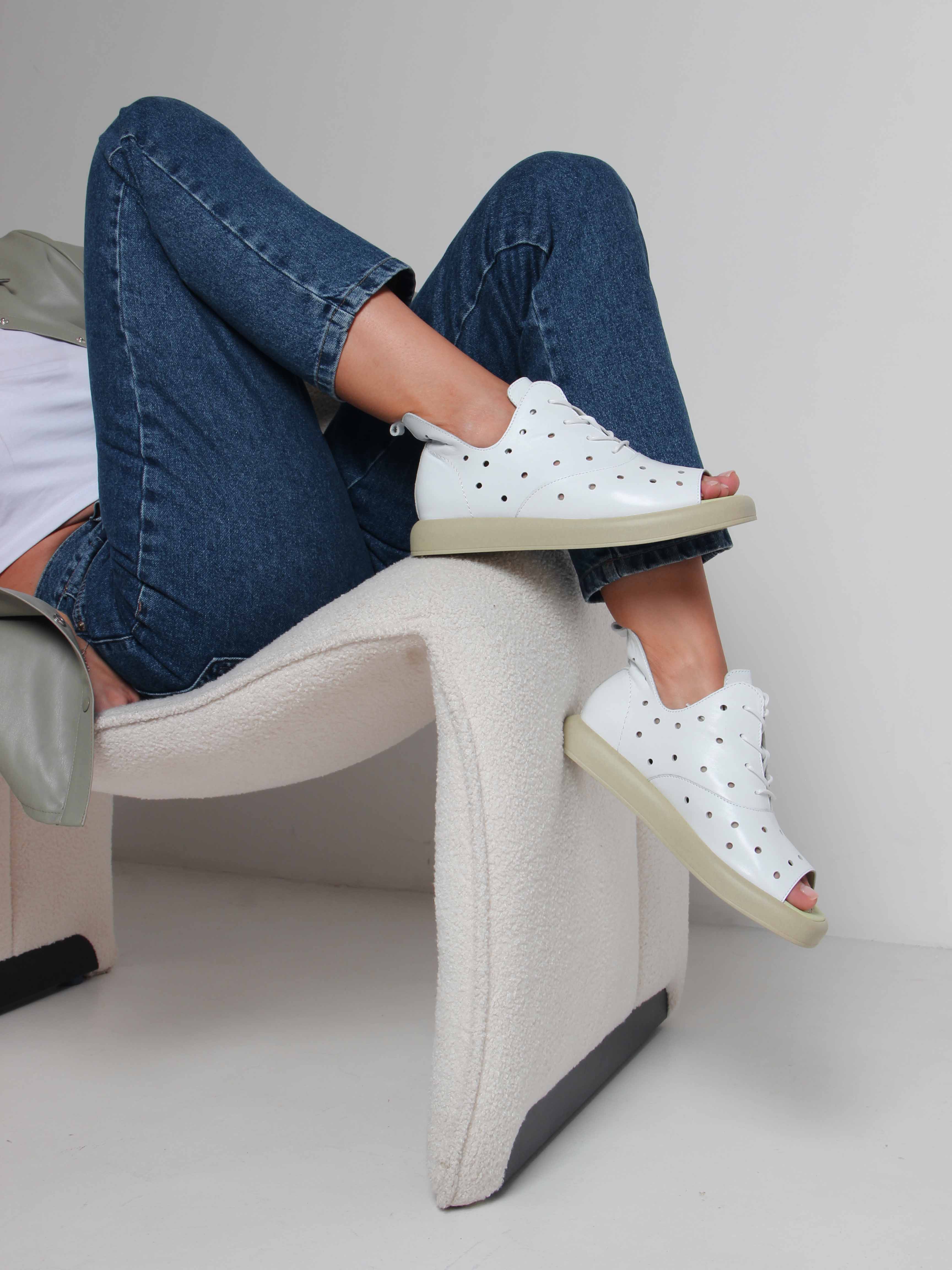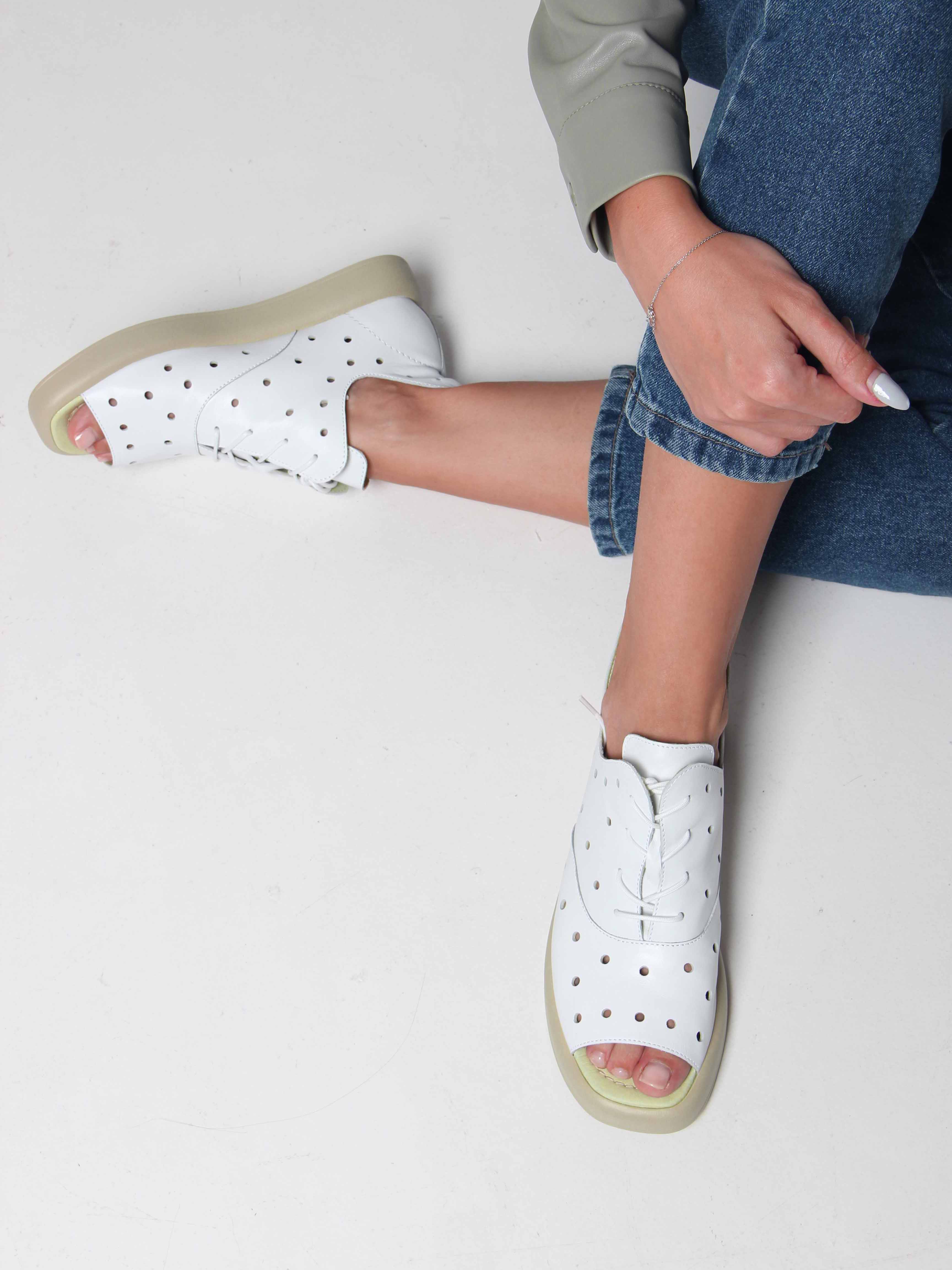 Босоножки кожаные белые с перфорацией