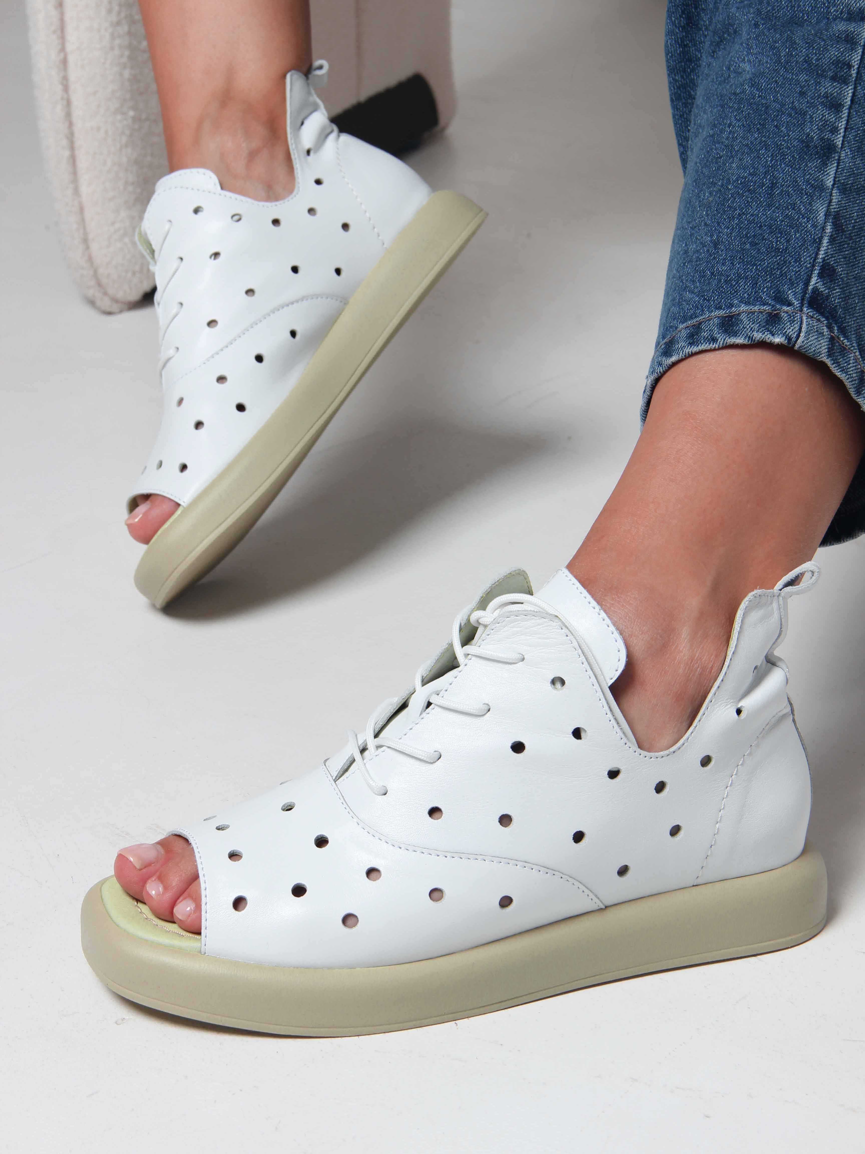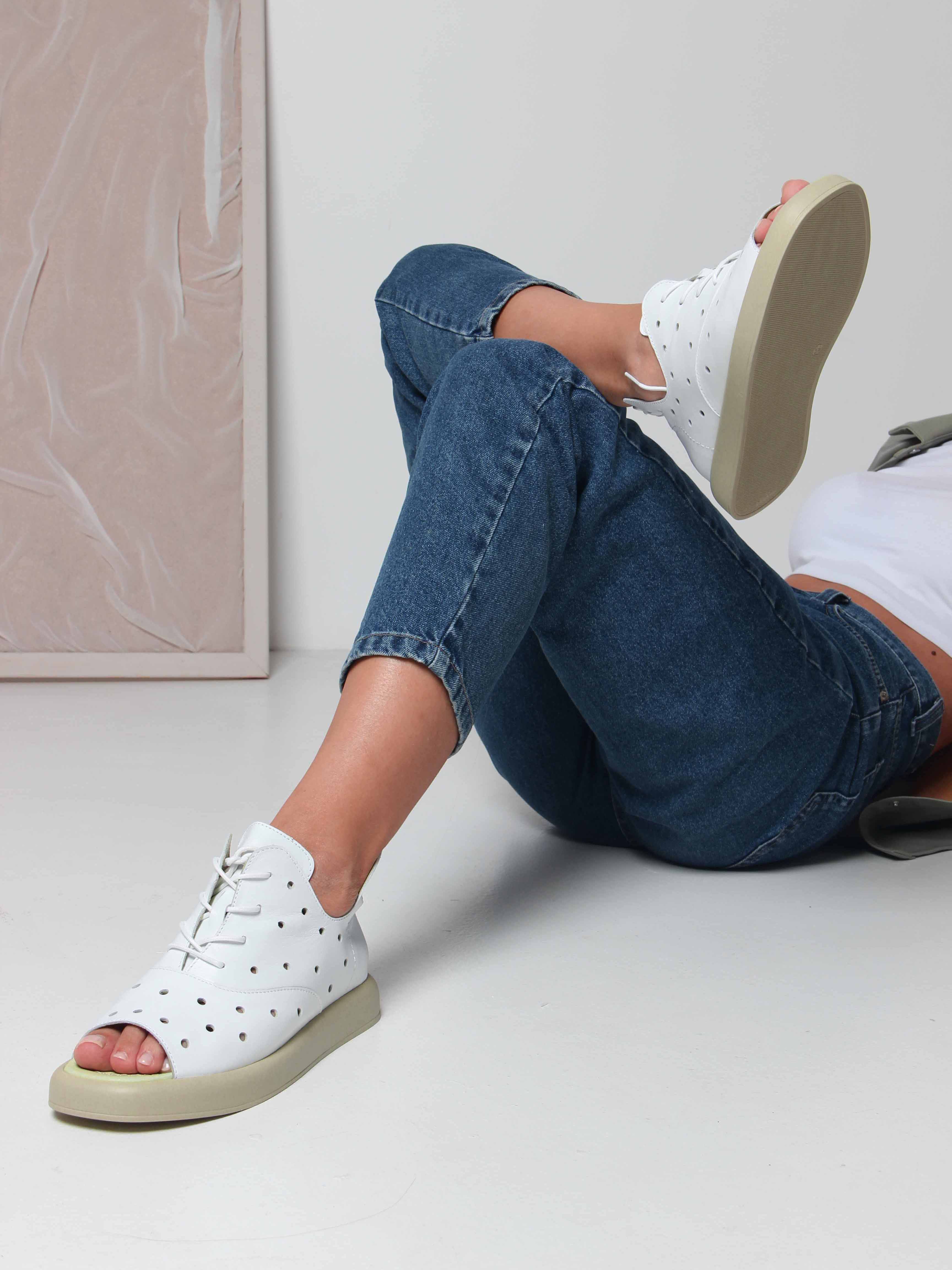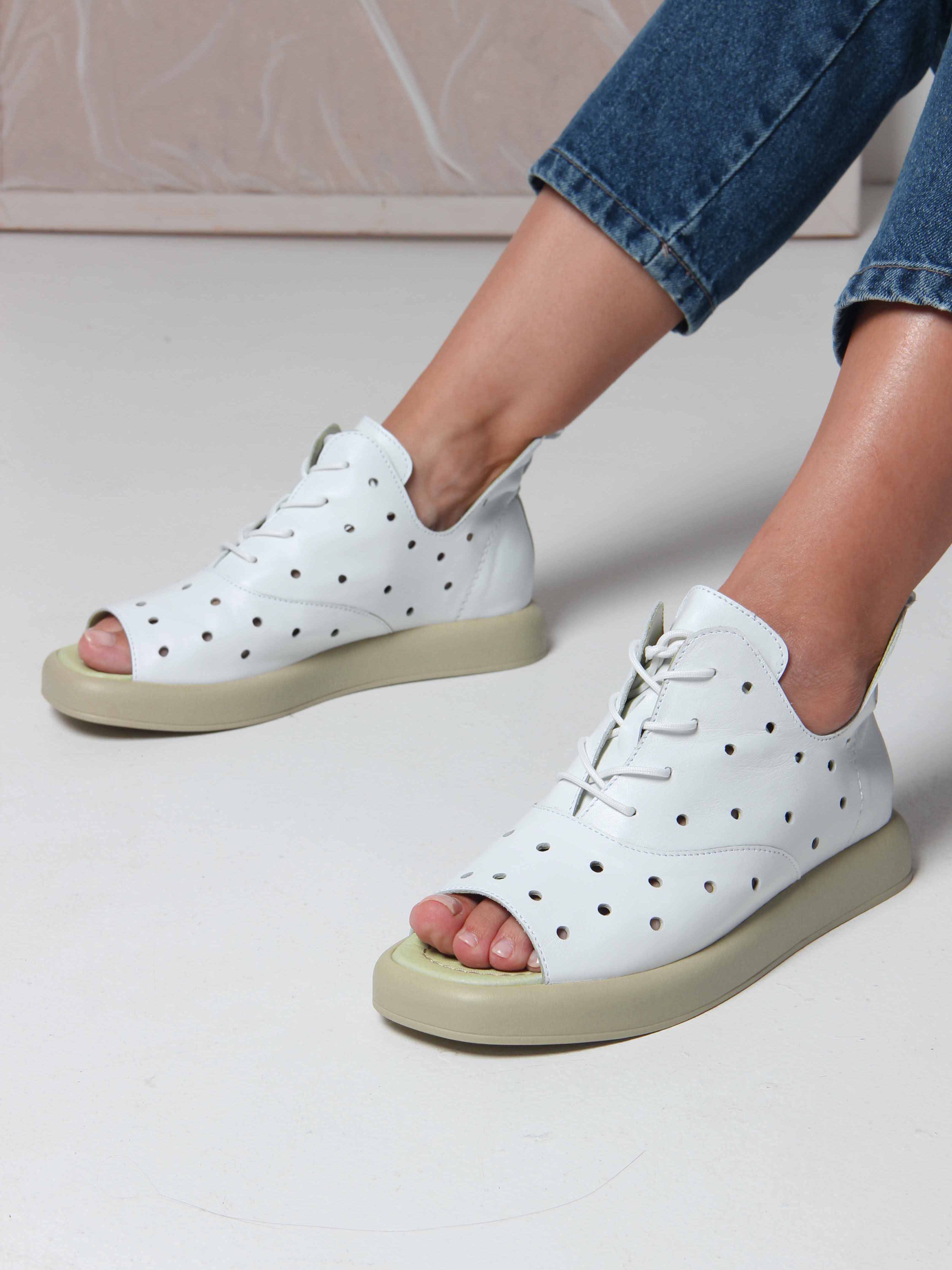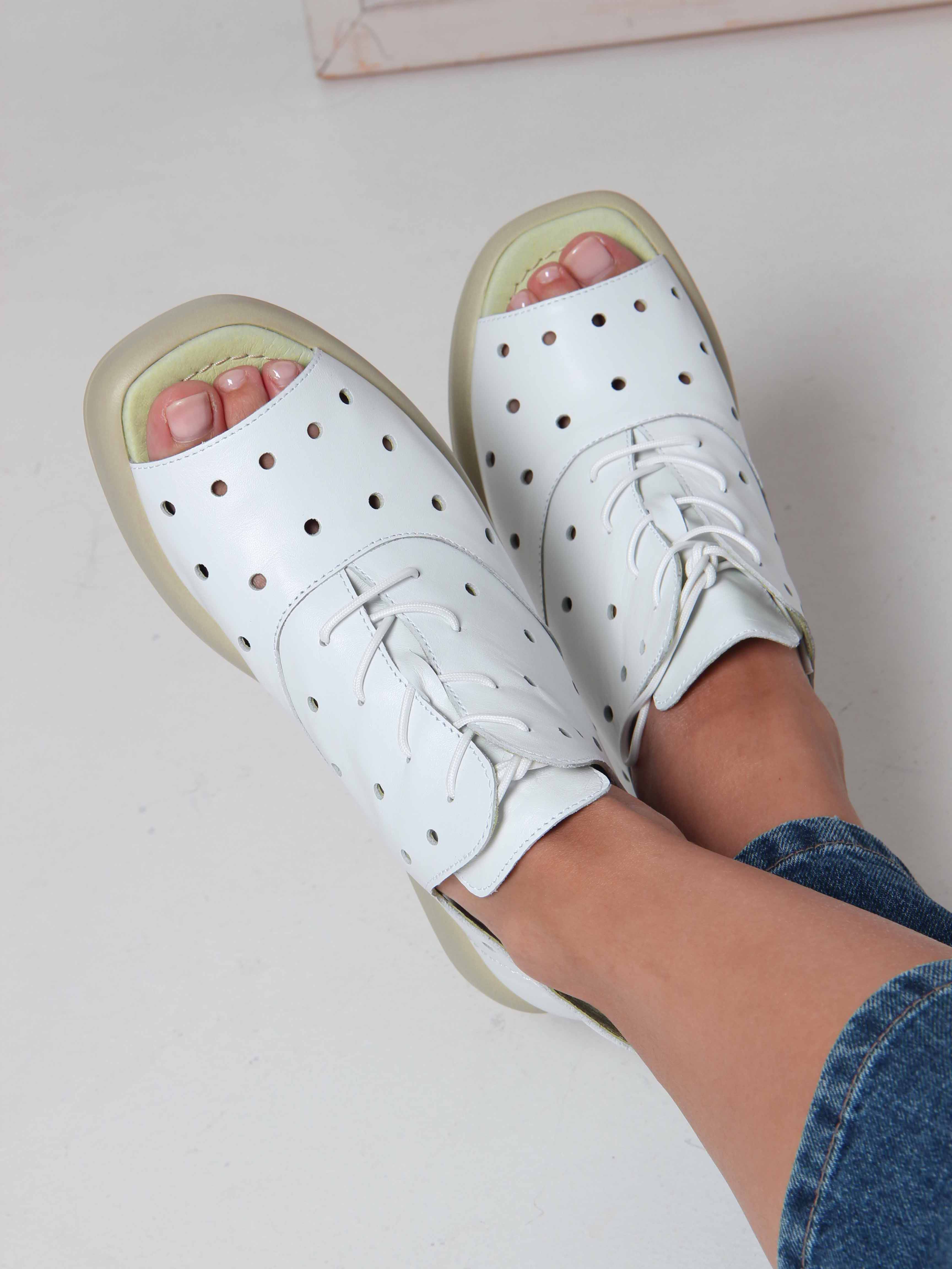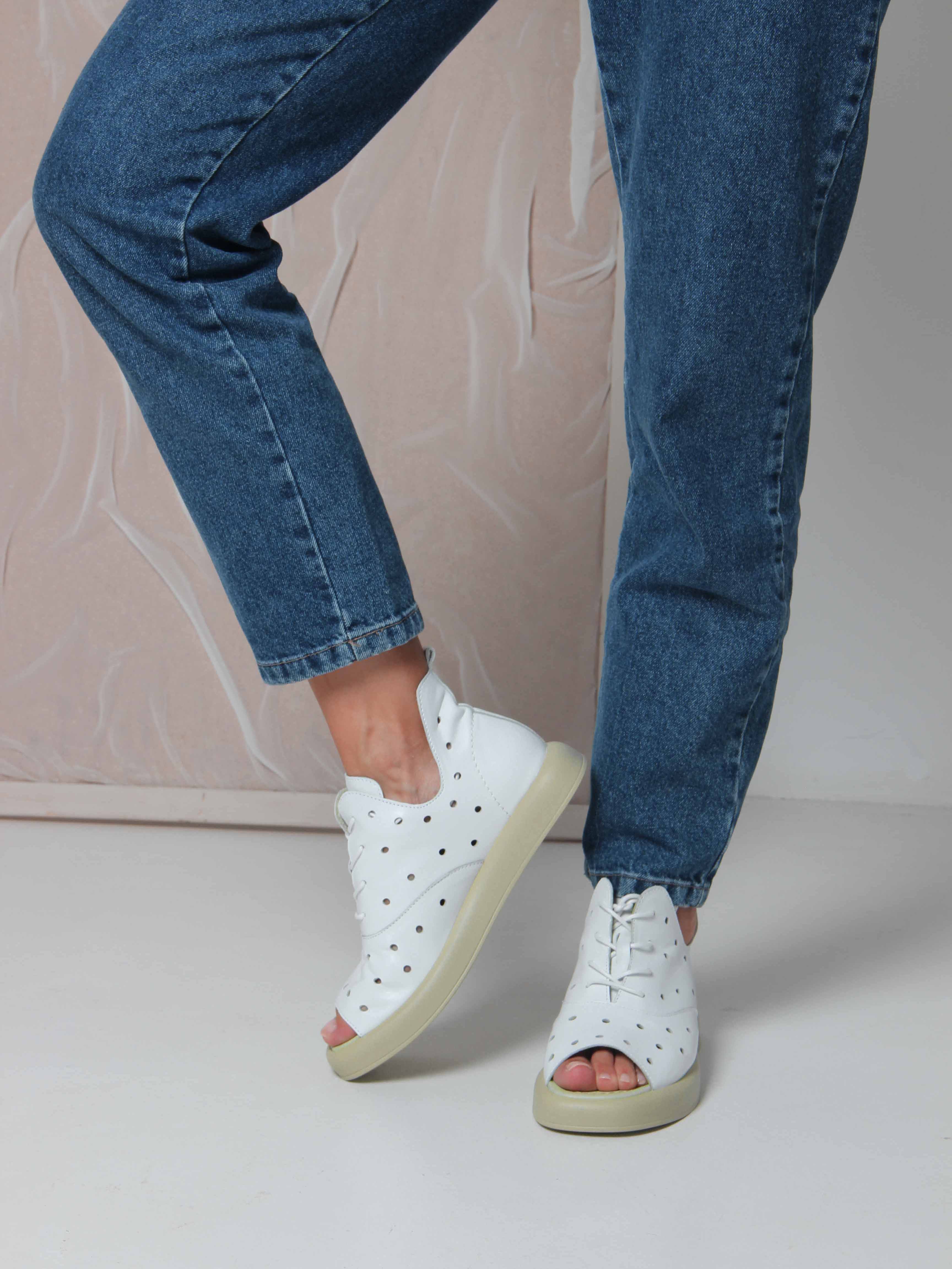 Босоножки кожаные белые с перфорацией