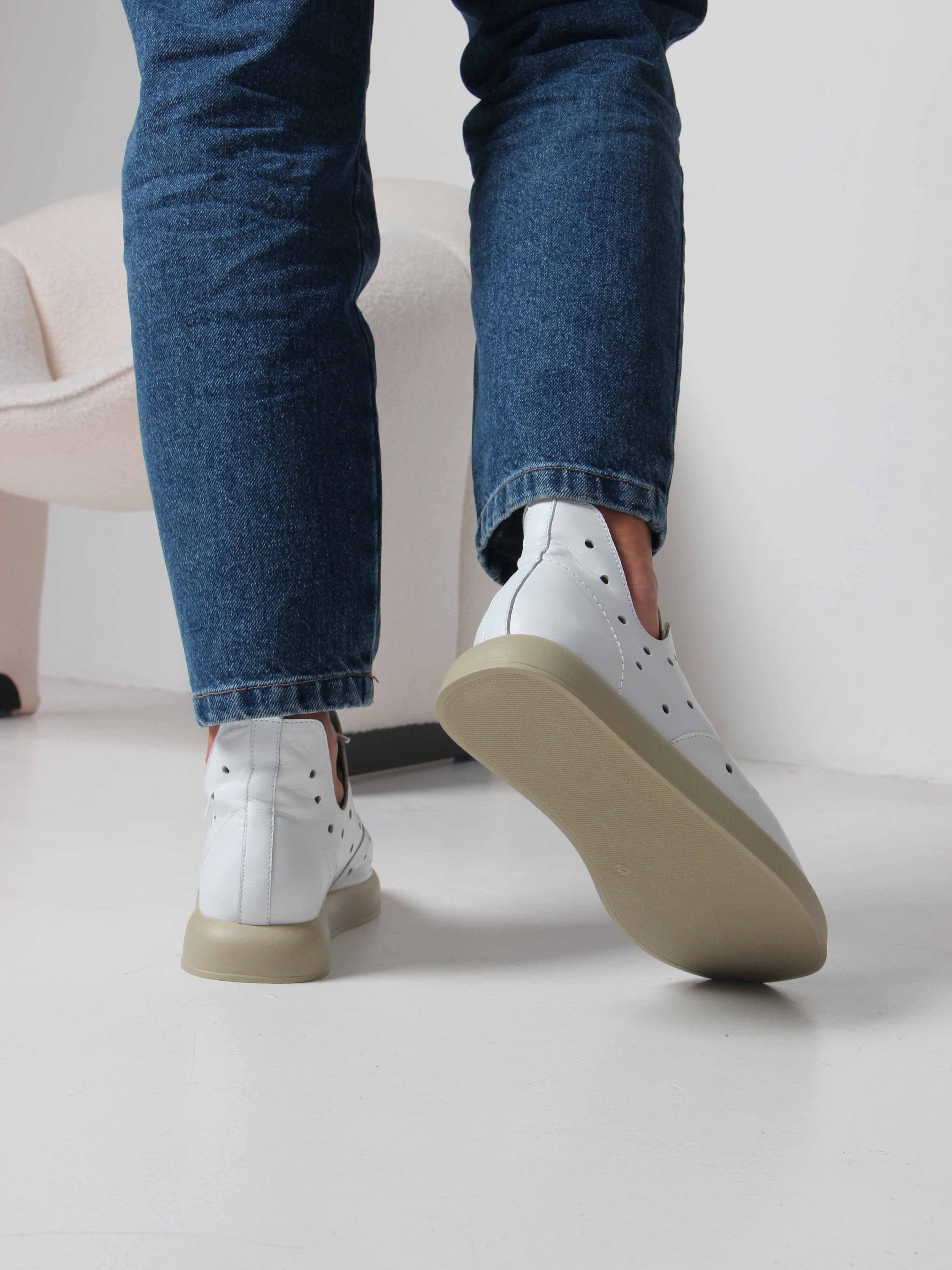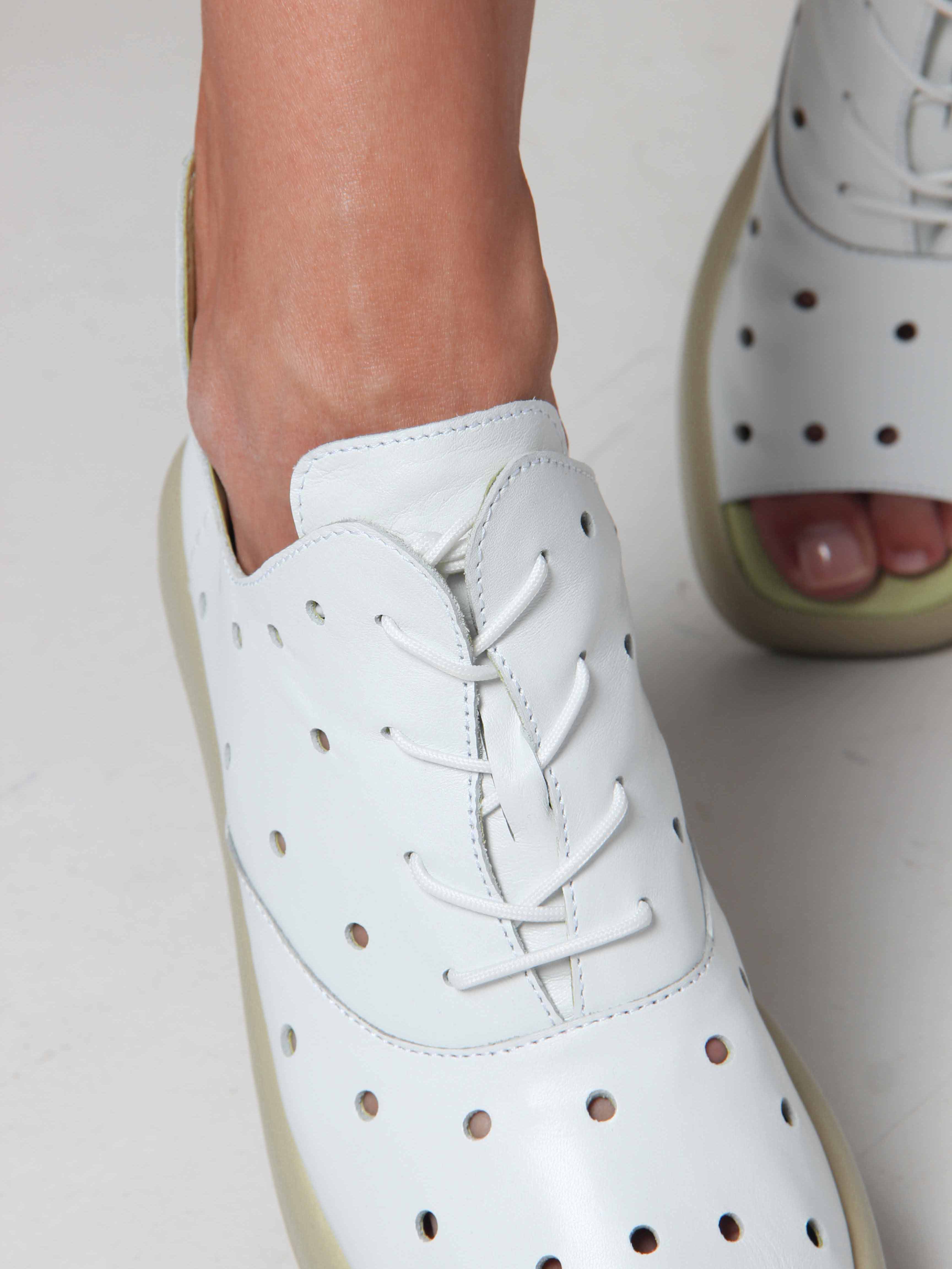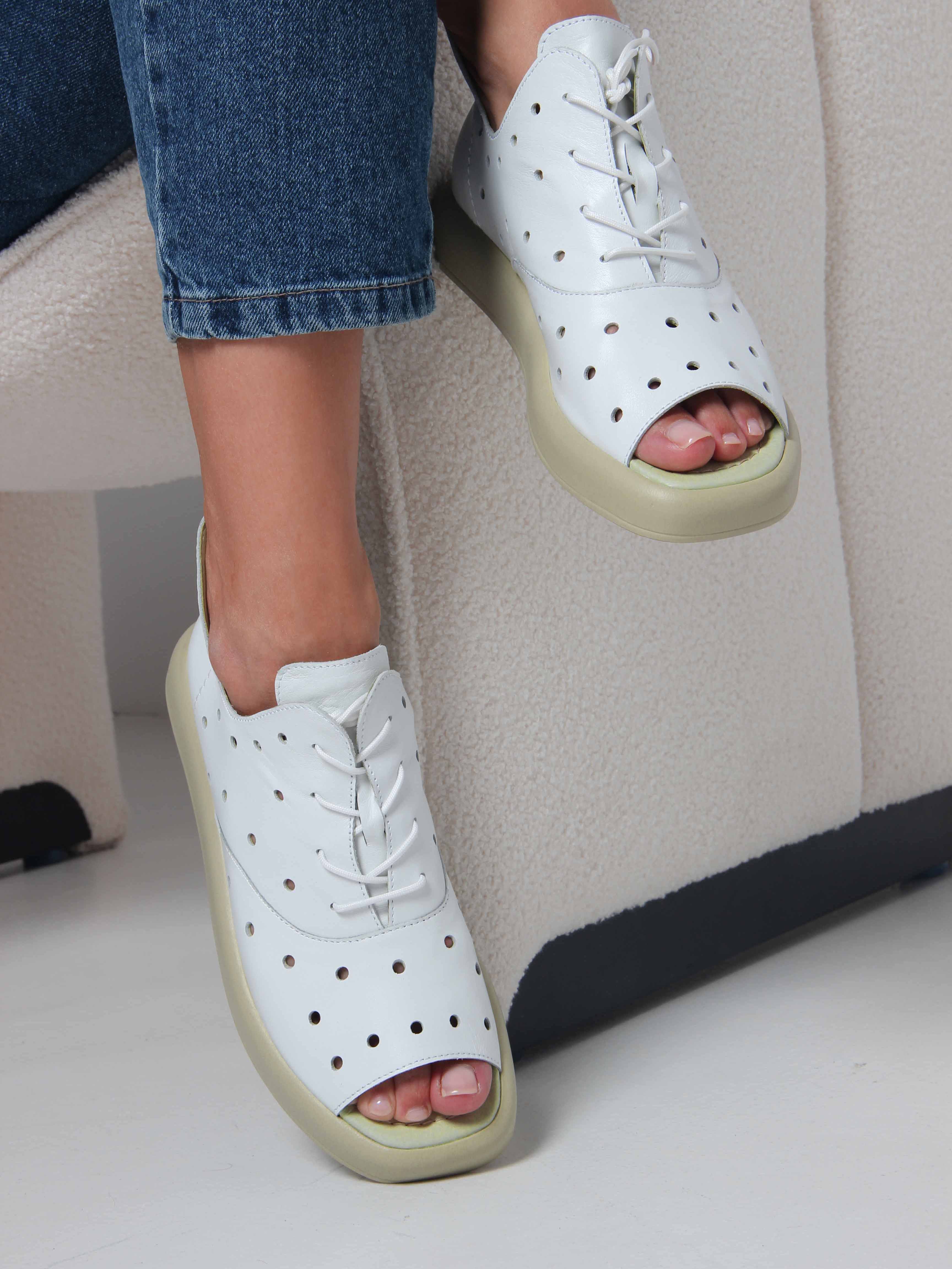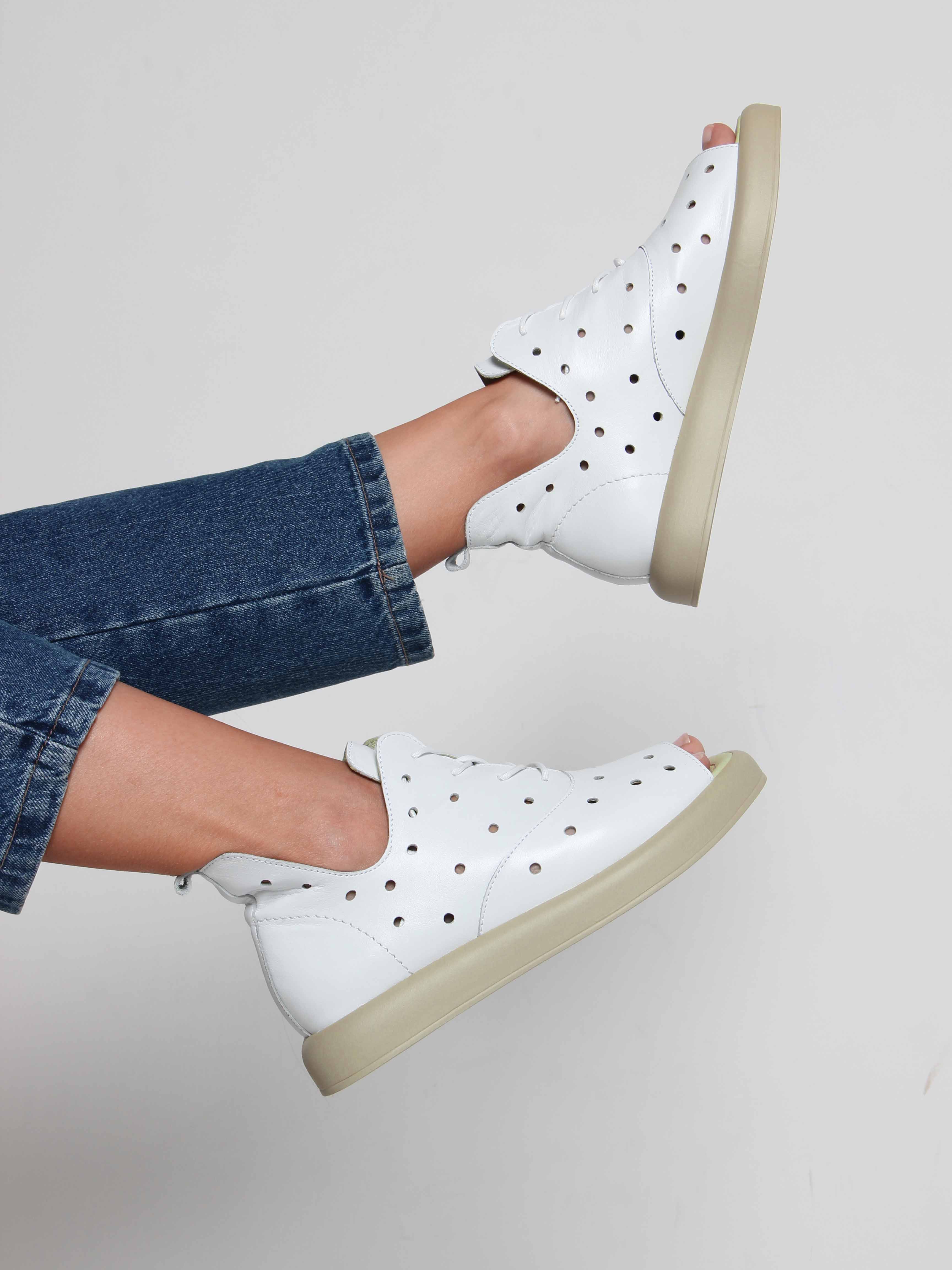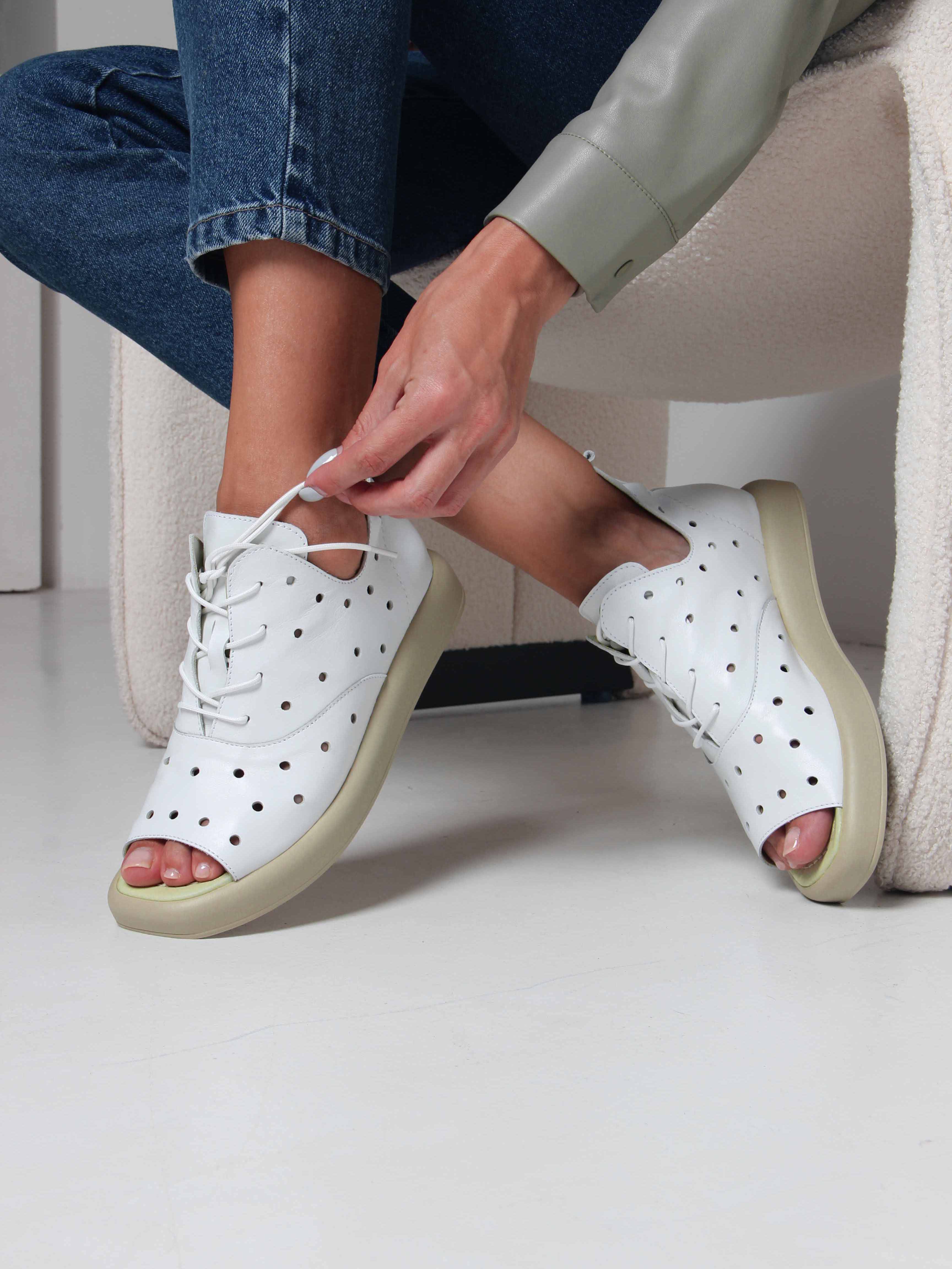 Босоножки кожаные белые с перфорацией