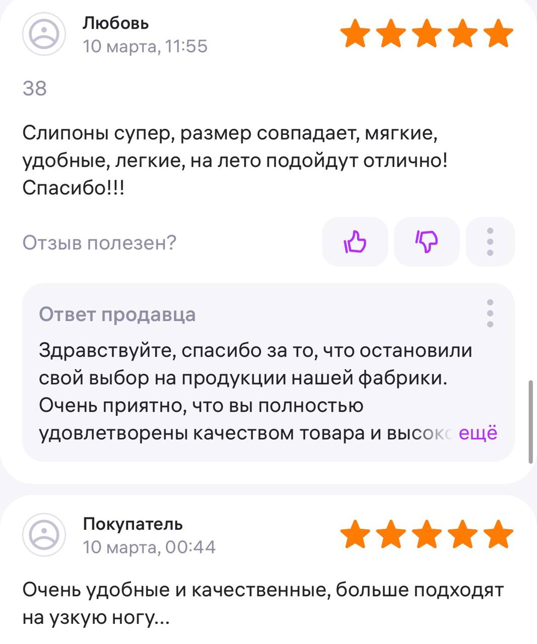 Ответ продавца