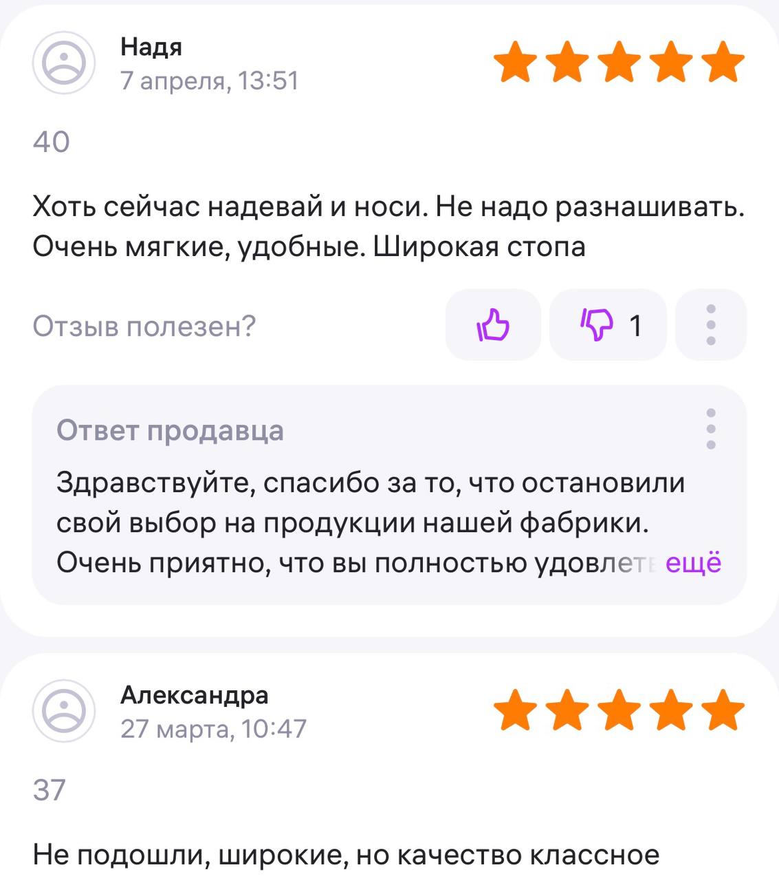 Ответ продавца