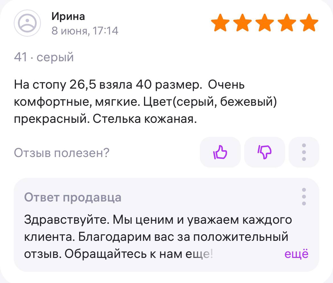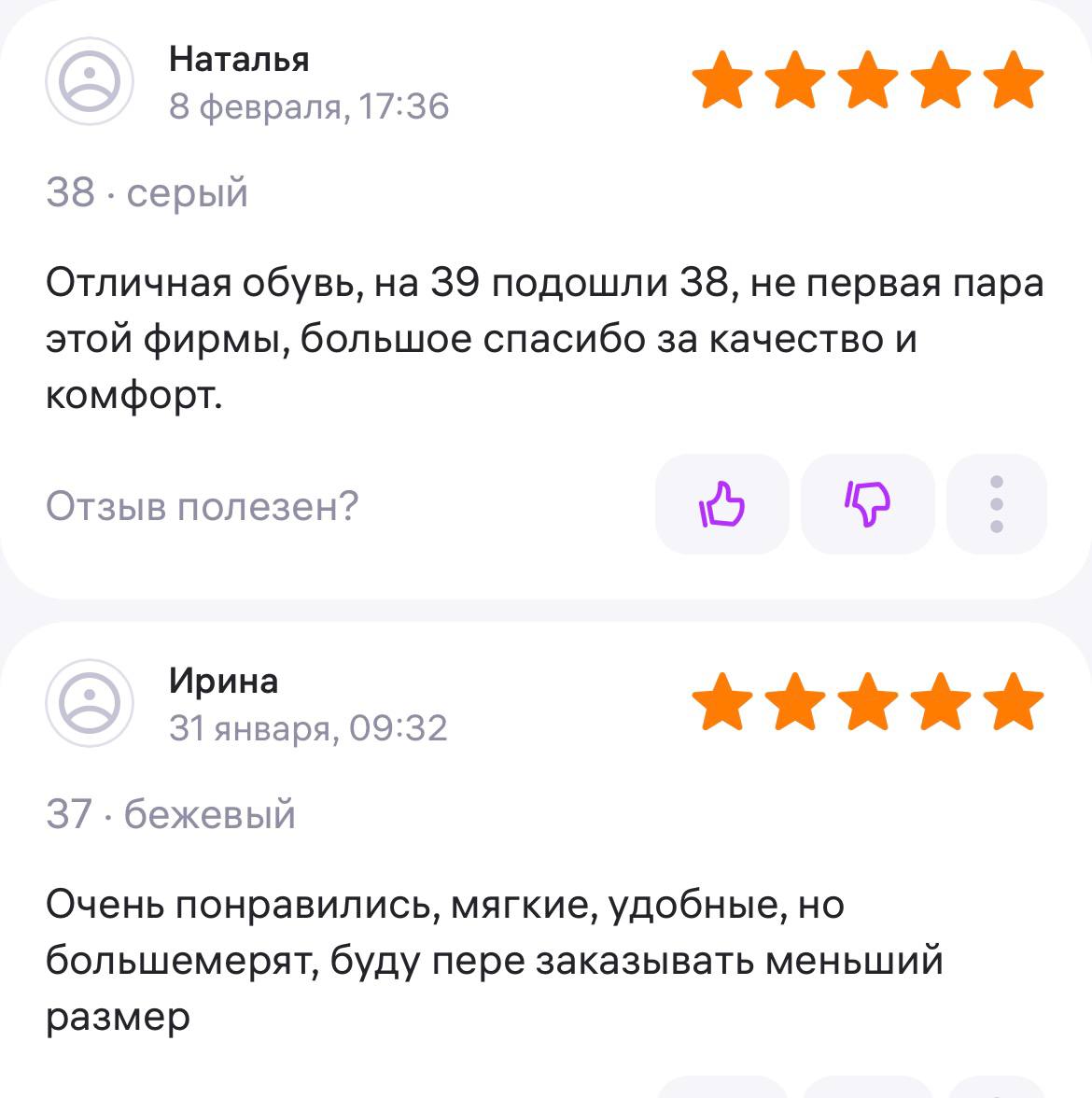 Ботинки хорошие, кажа мягкая, размеру соответствуют, но на пятке пришита заплатка из какой то пленки блесящей и когда первый раз померла она вся сморщилась и такое впечатление что сейчас лопнет. И я думаю со временем так и будет. Если бы не эта заплатка взяла бы удобные и мягкие