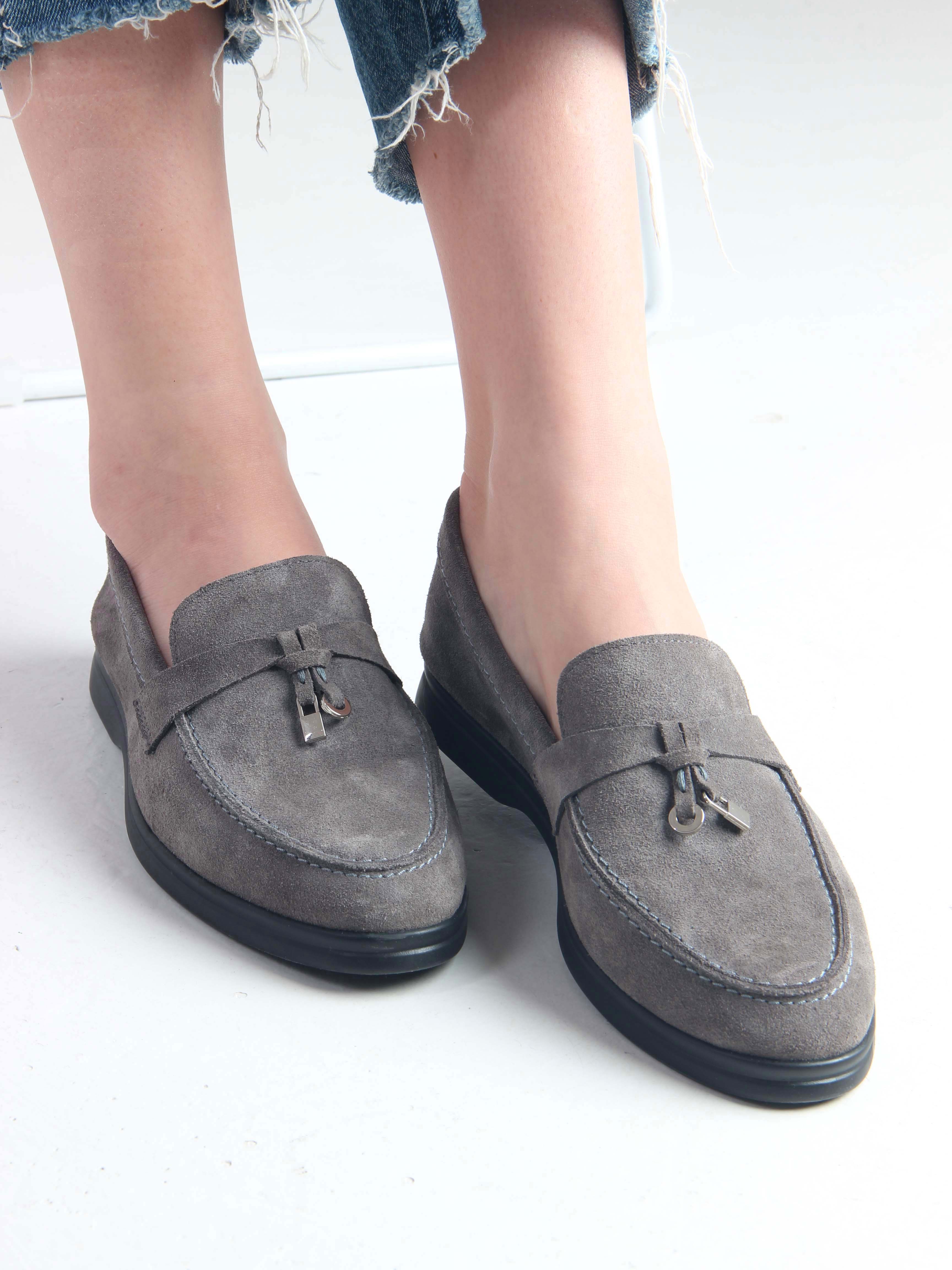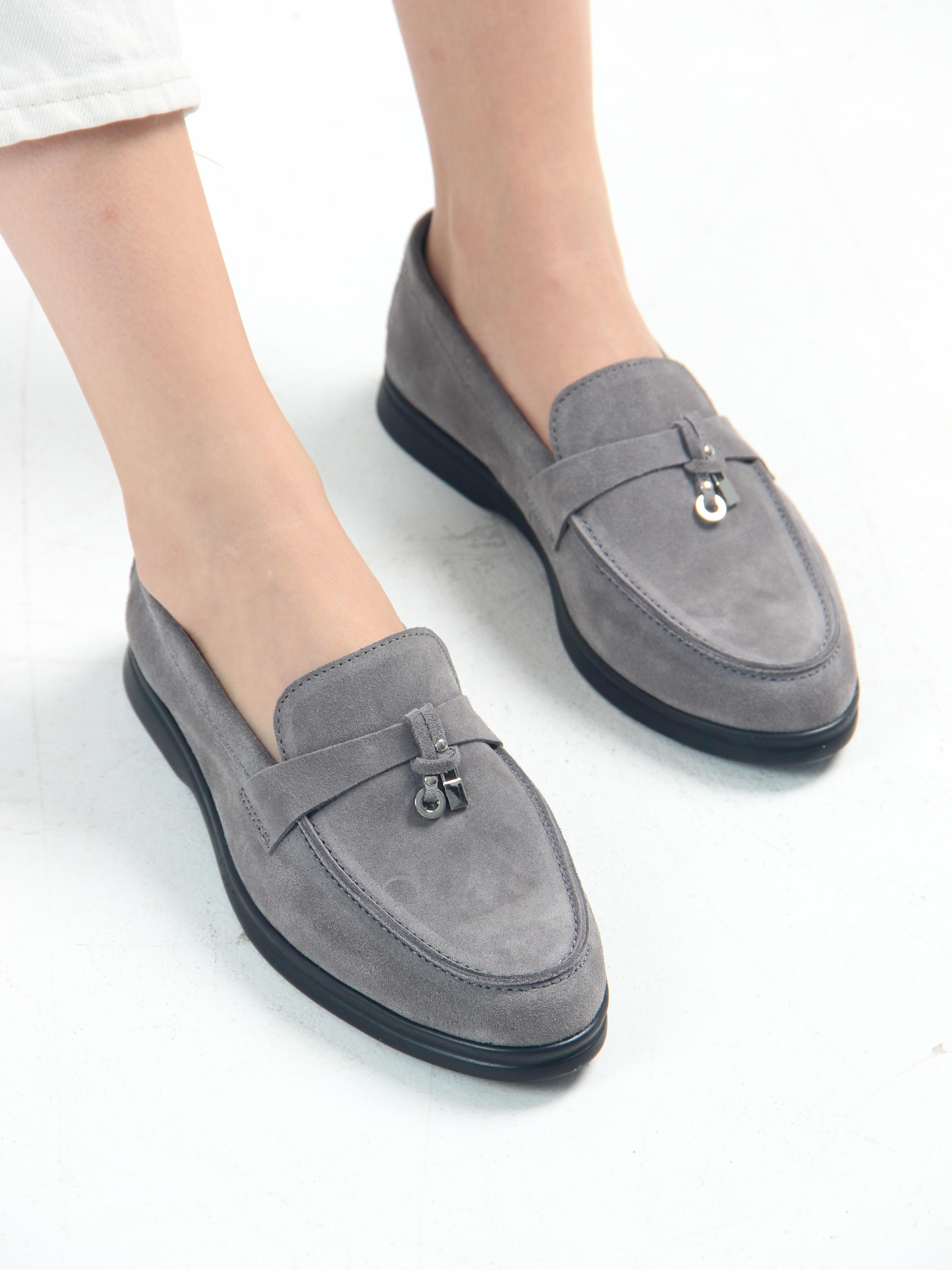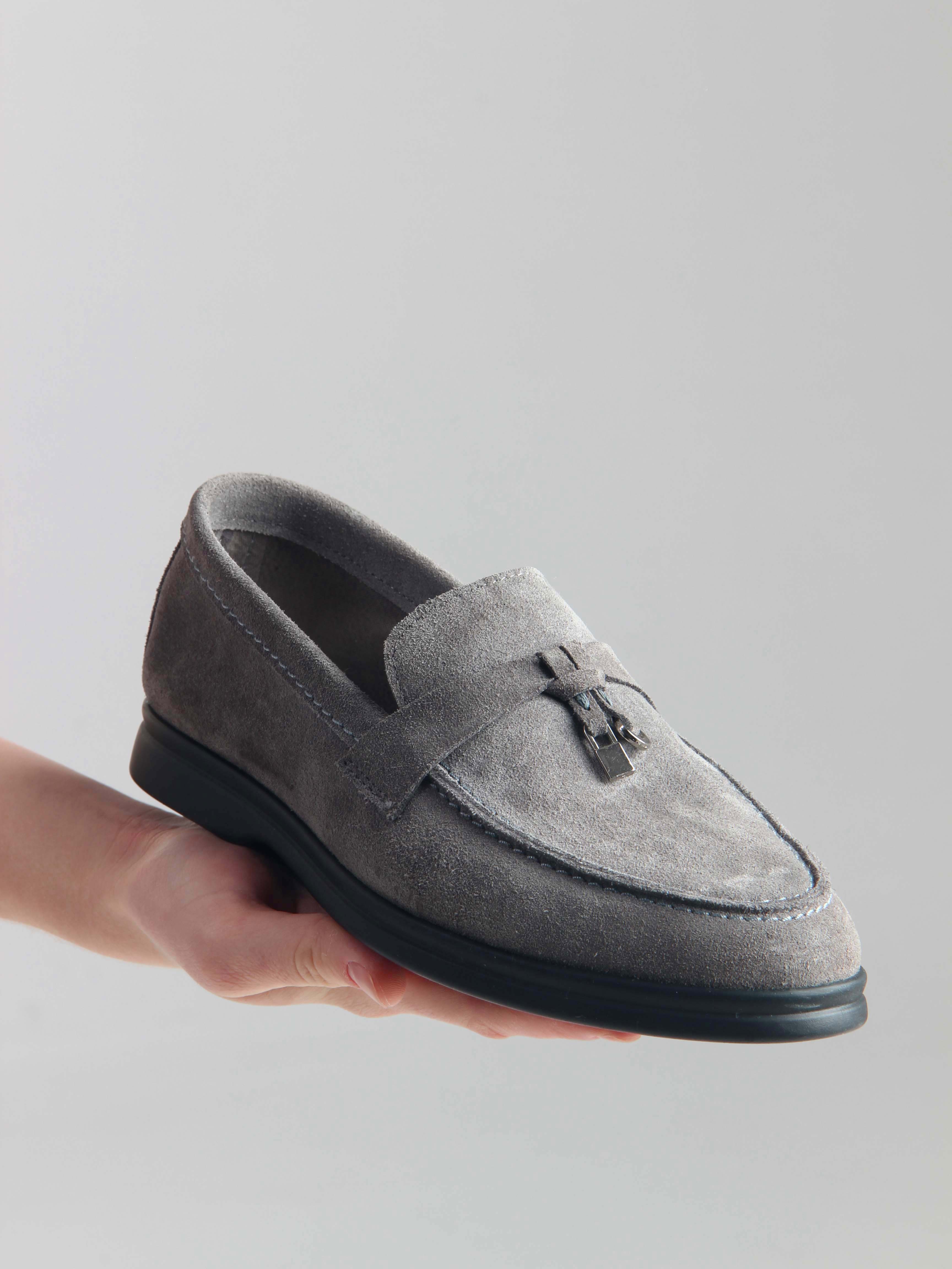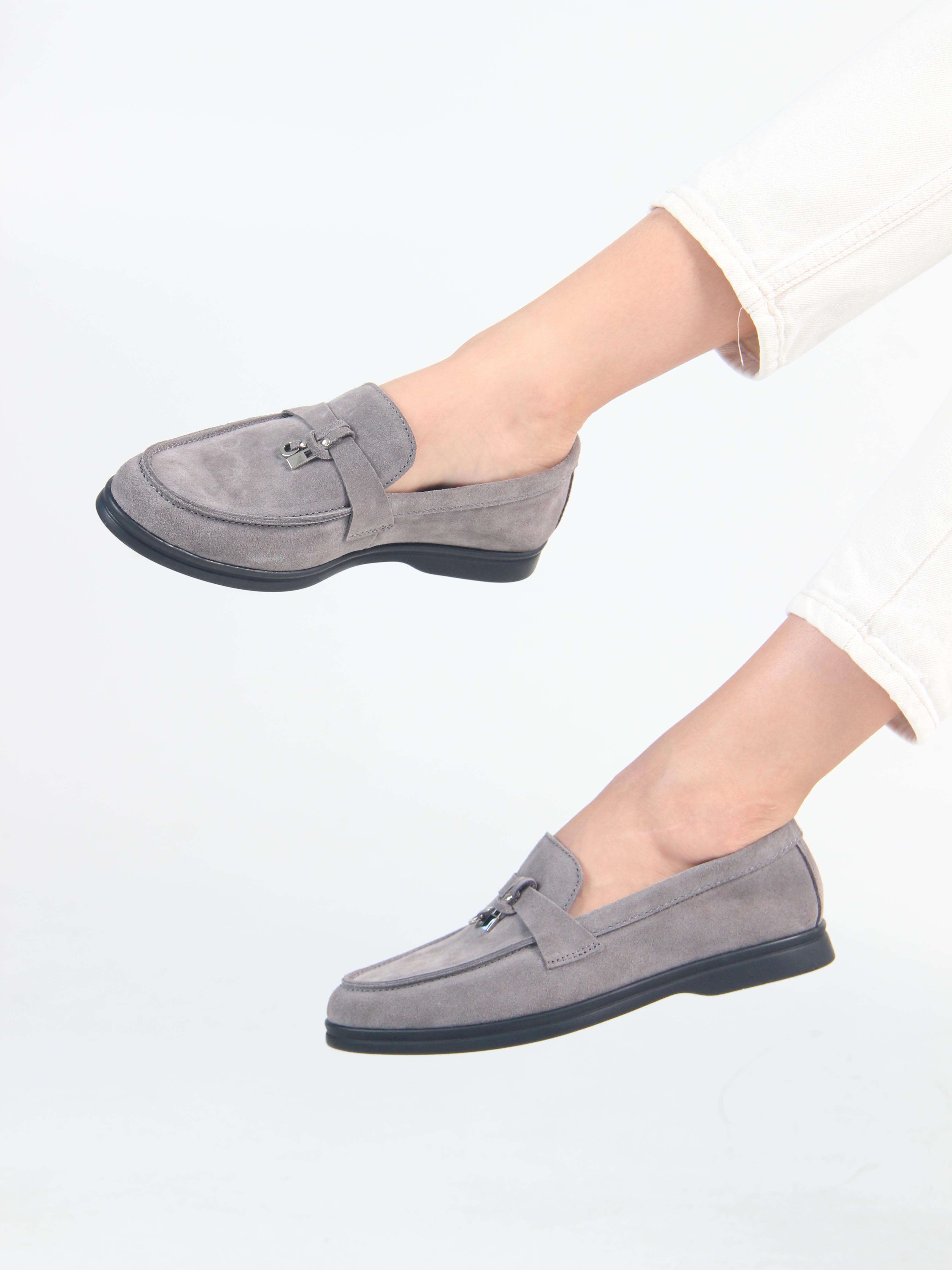 Лоферы замшевые серые