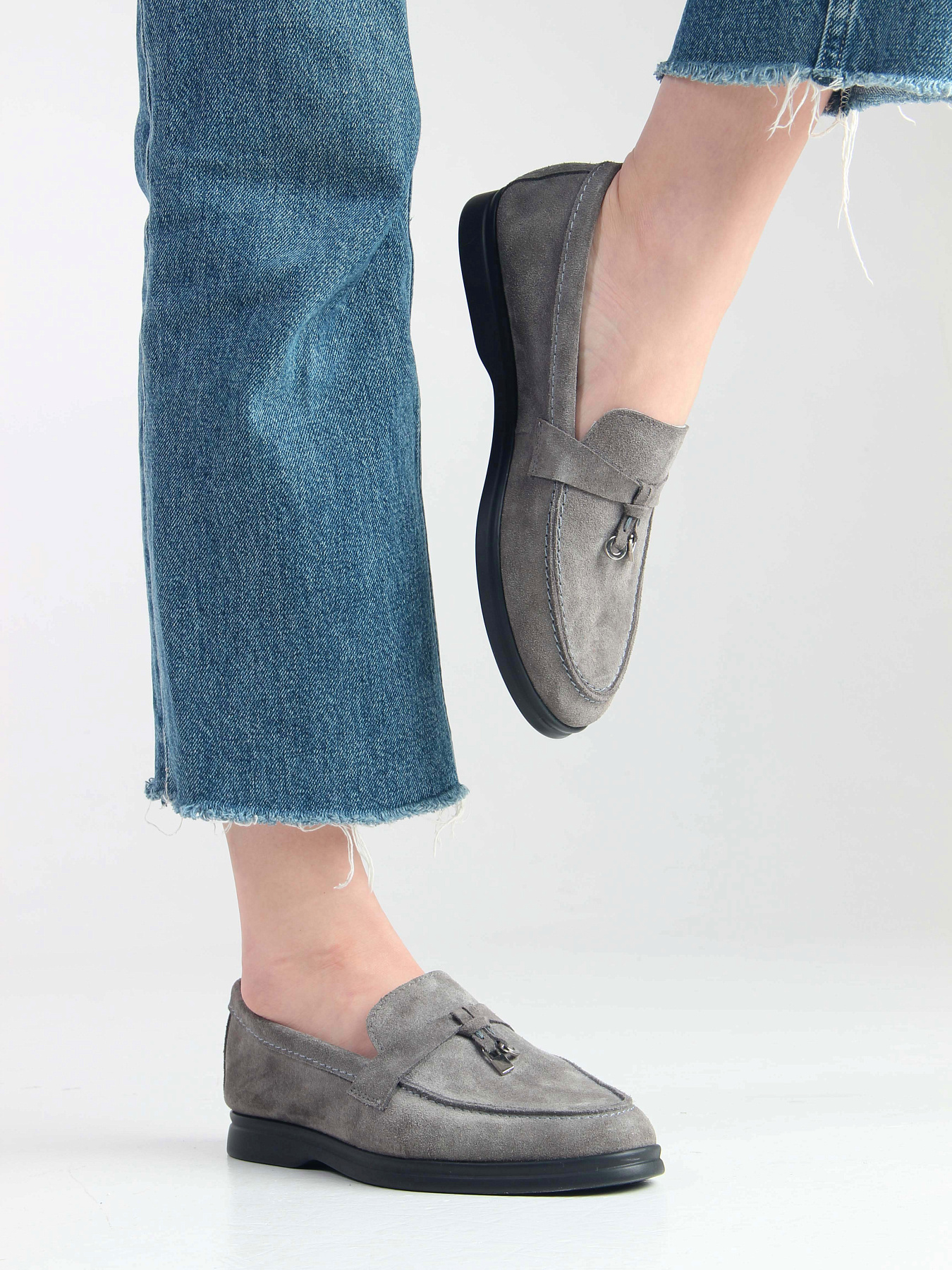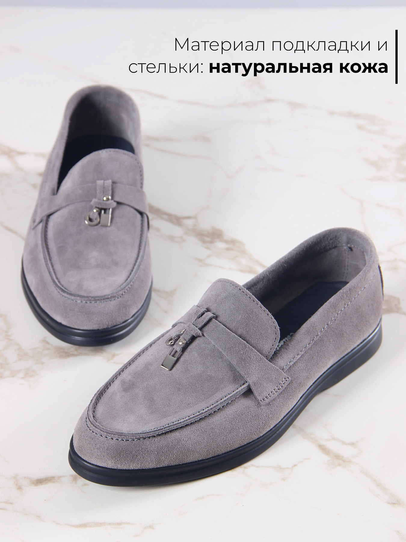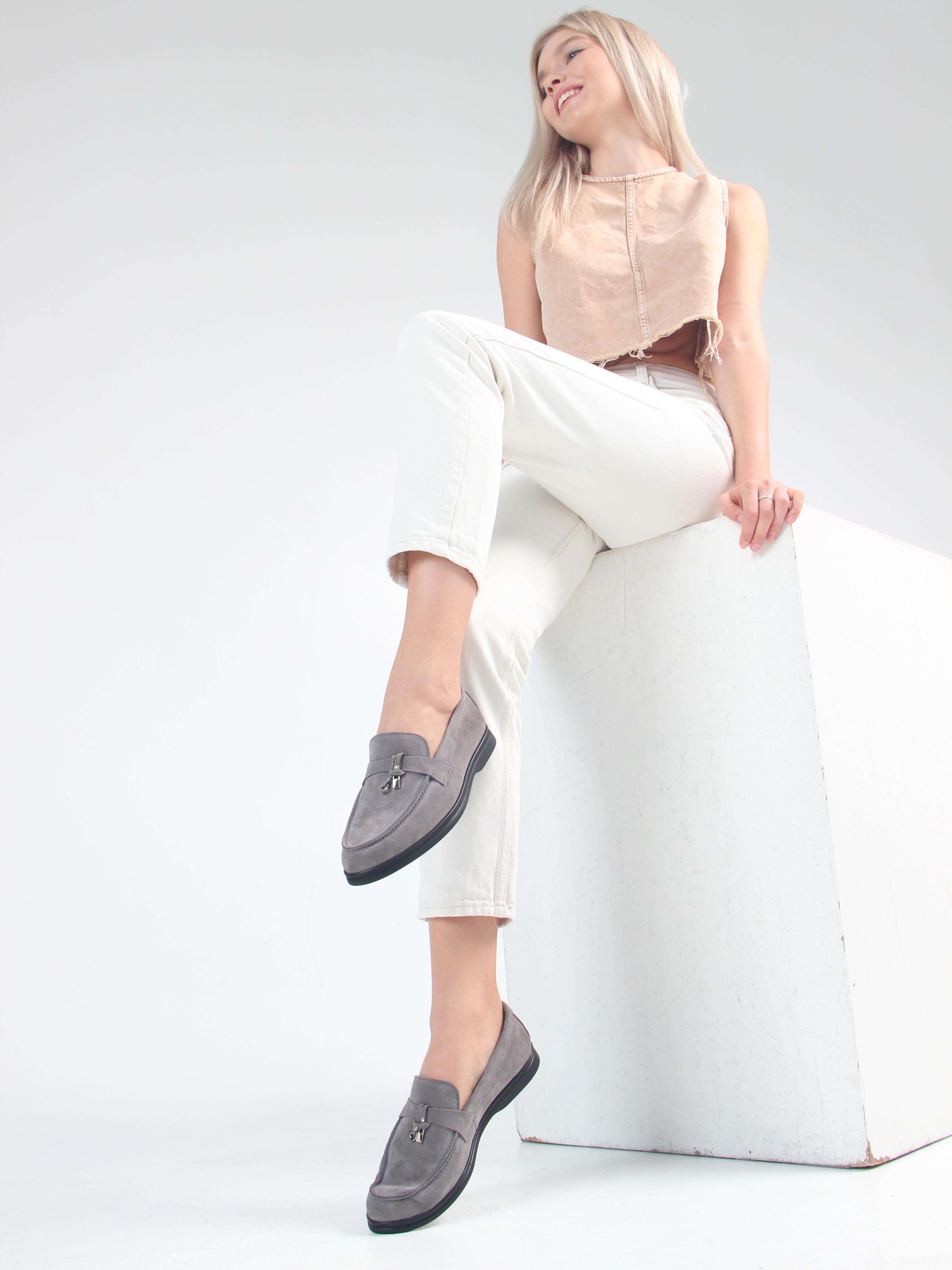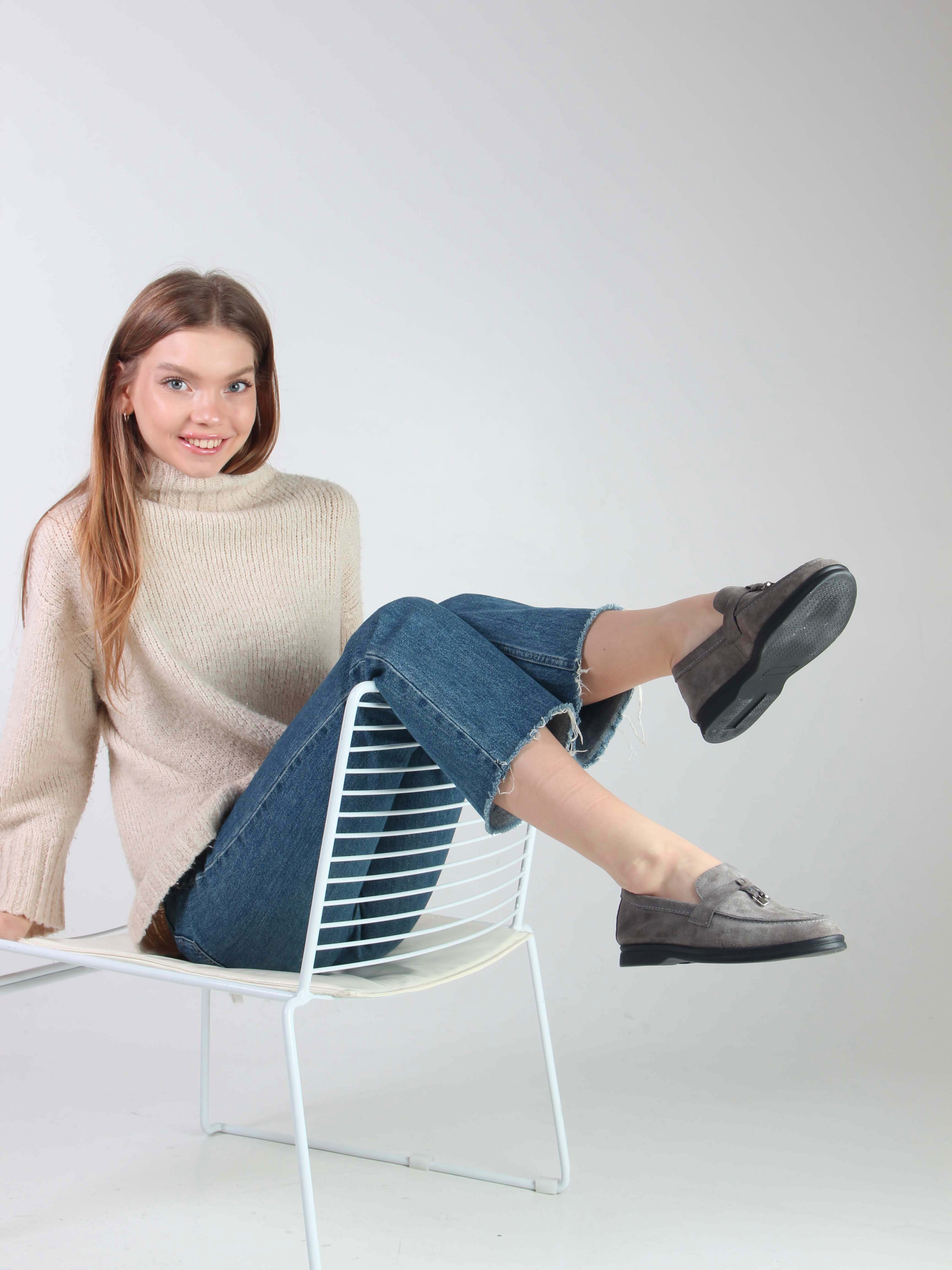 Лоферы замшевые серые