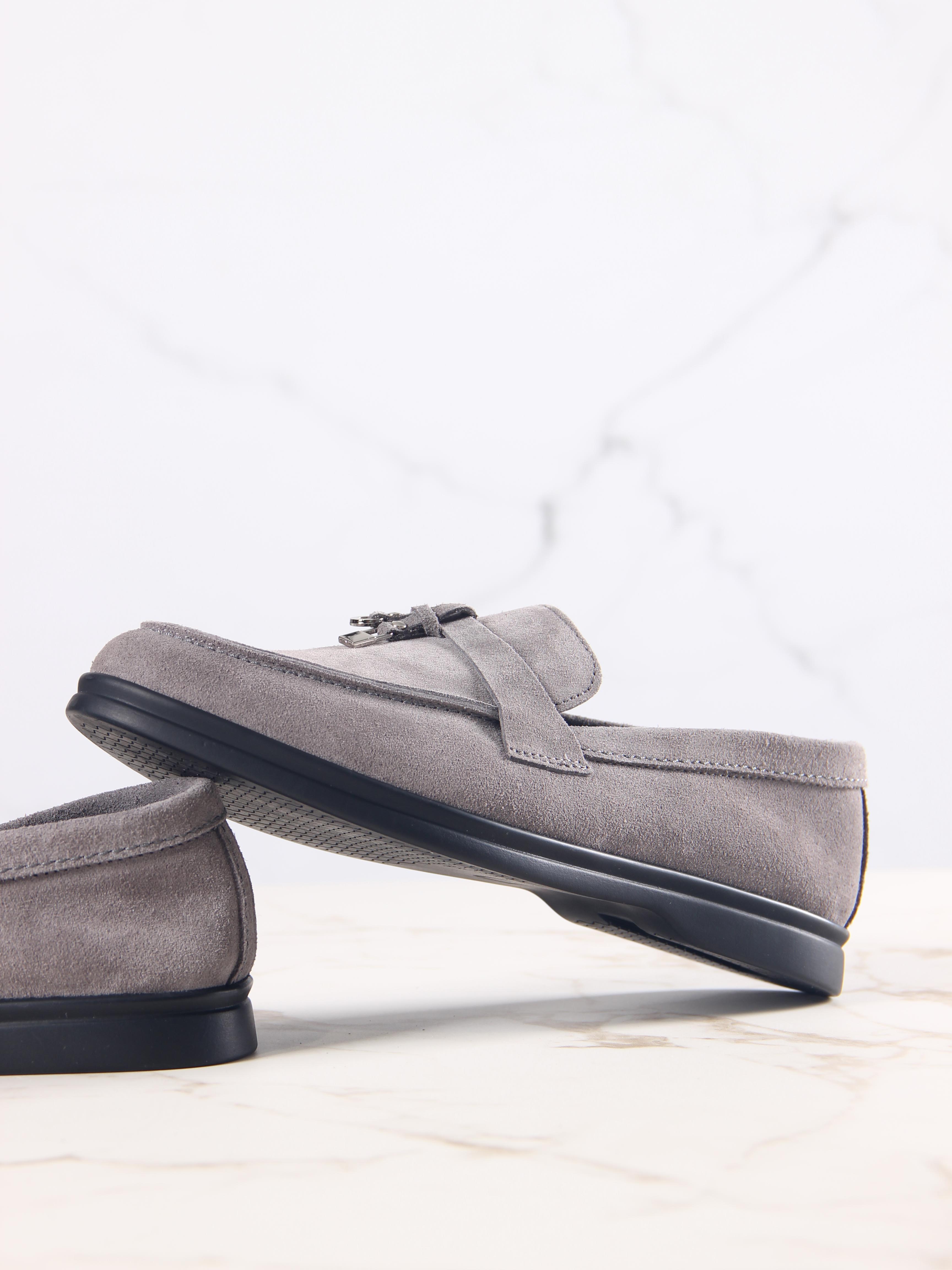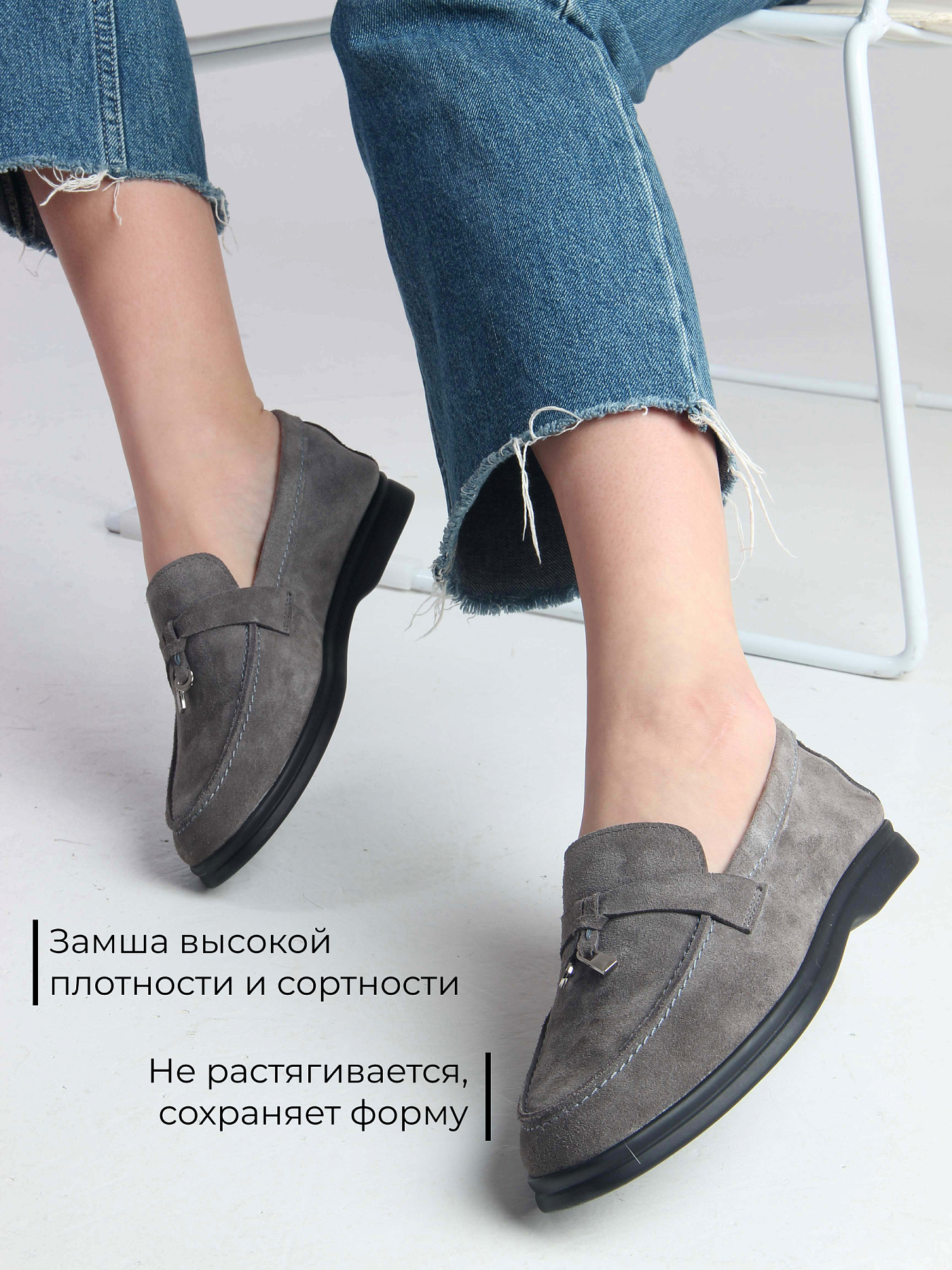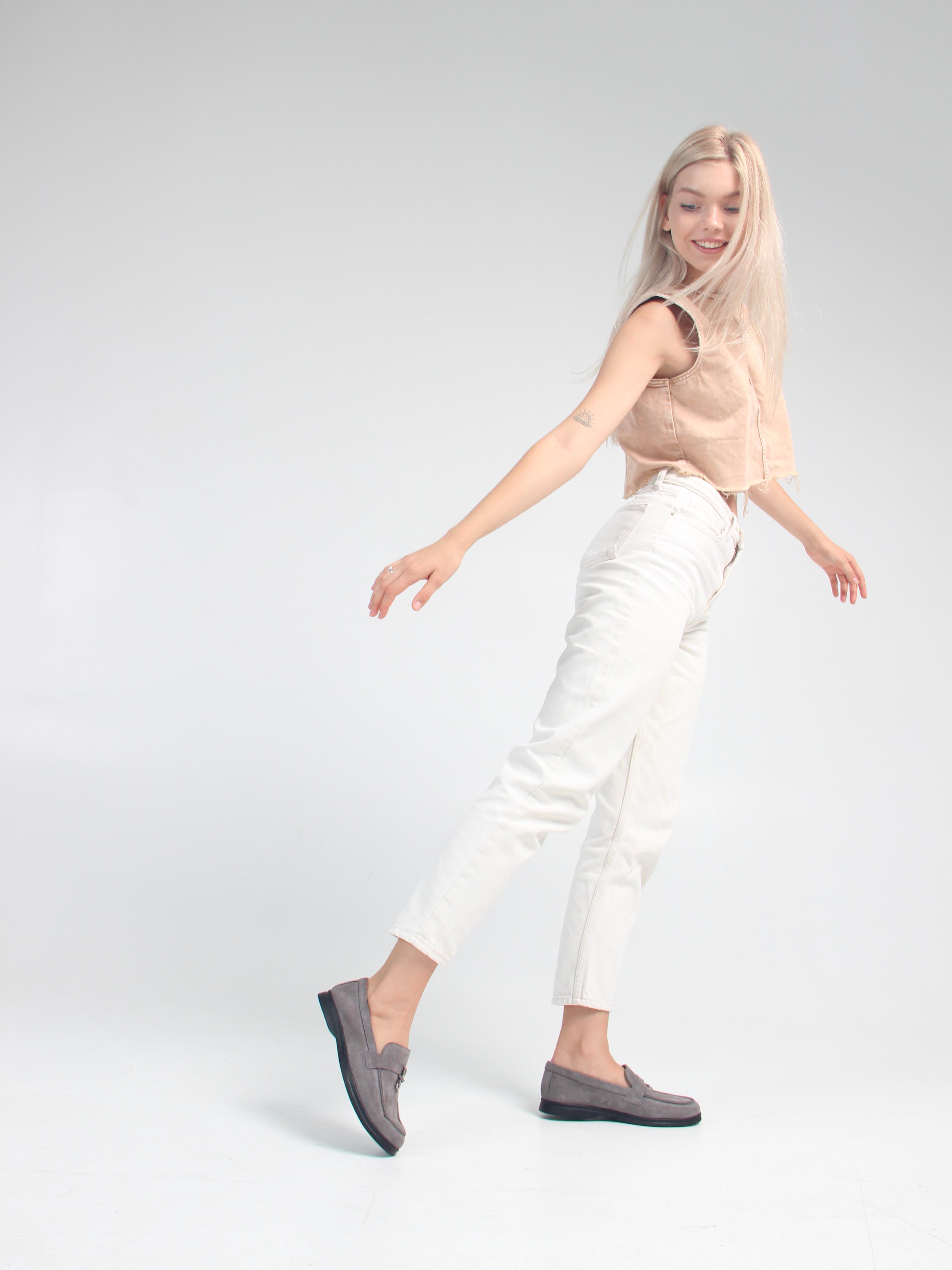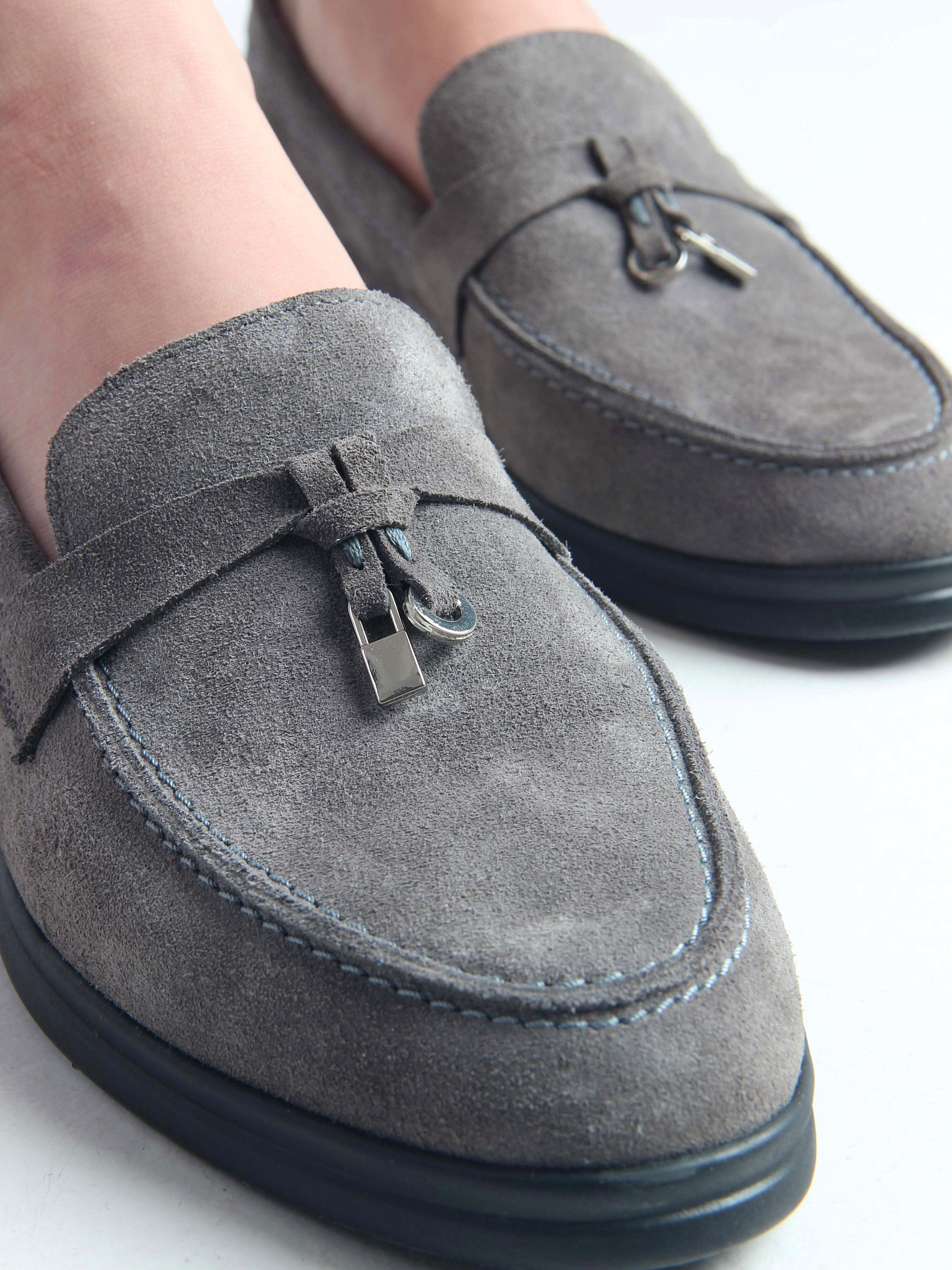 Лоферы замшевые серые