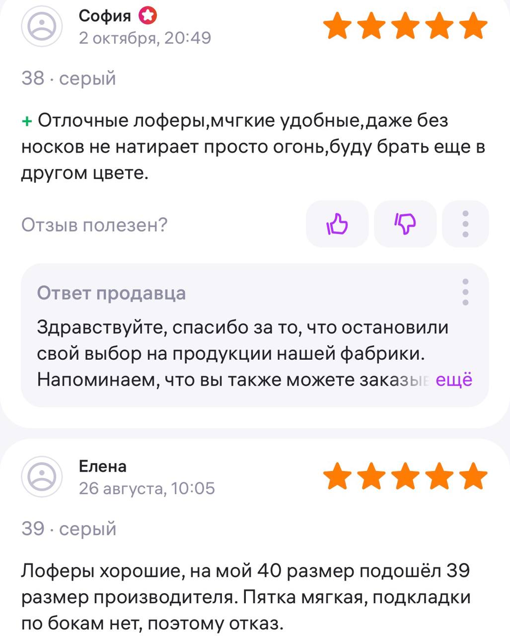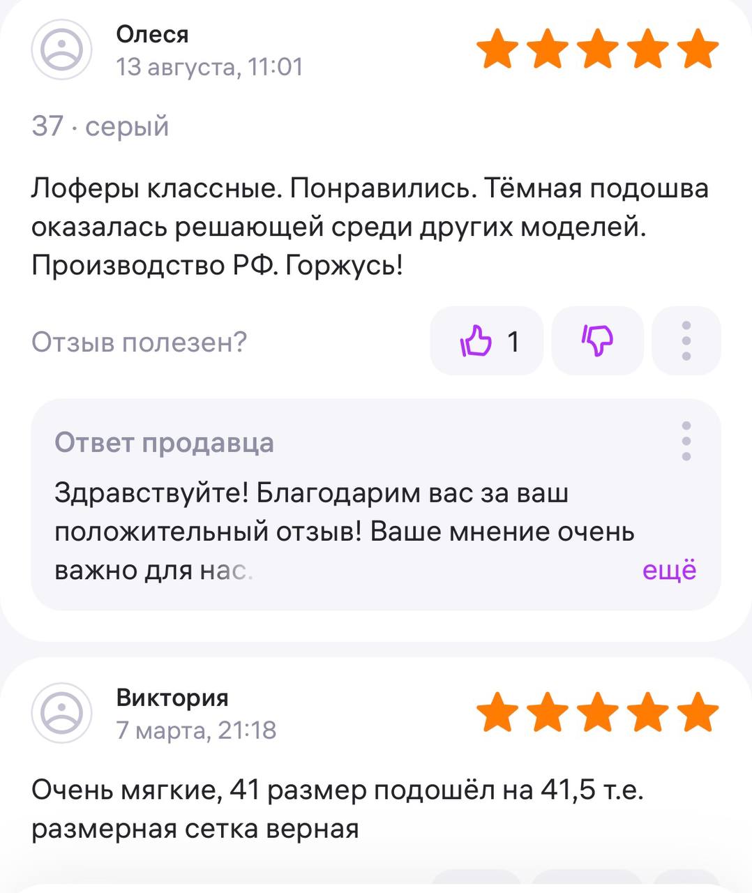 Ответ продавца