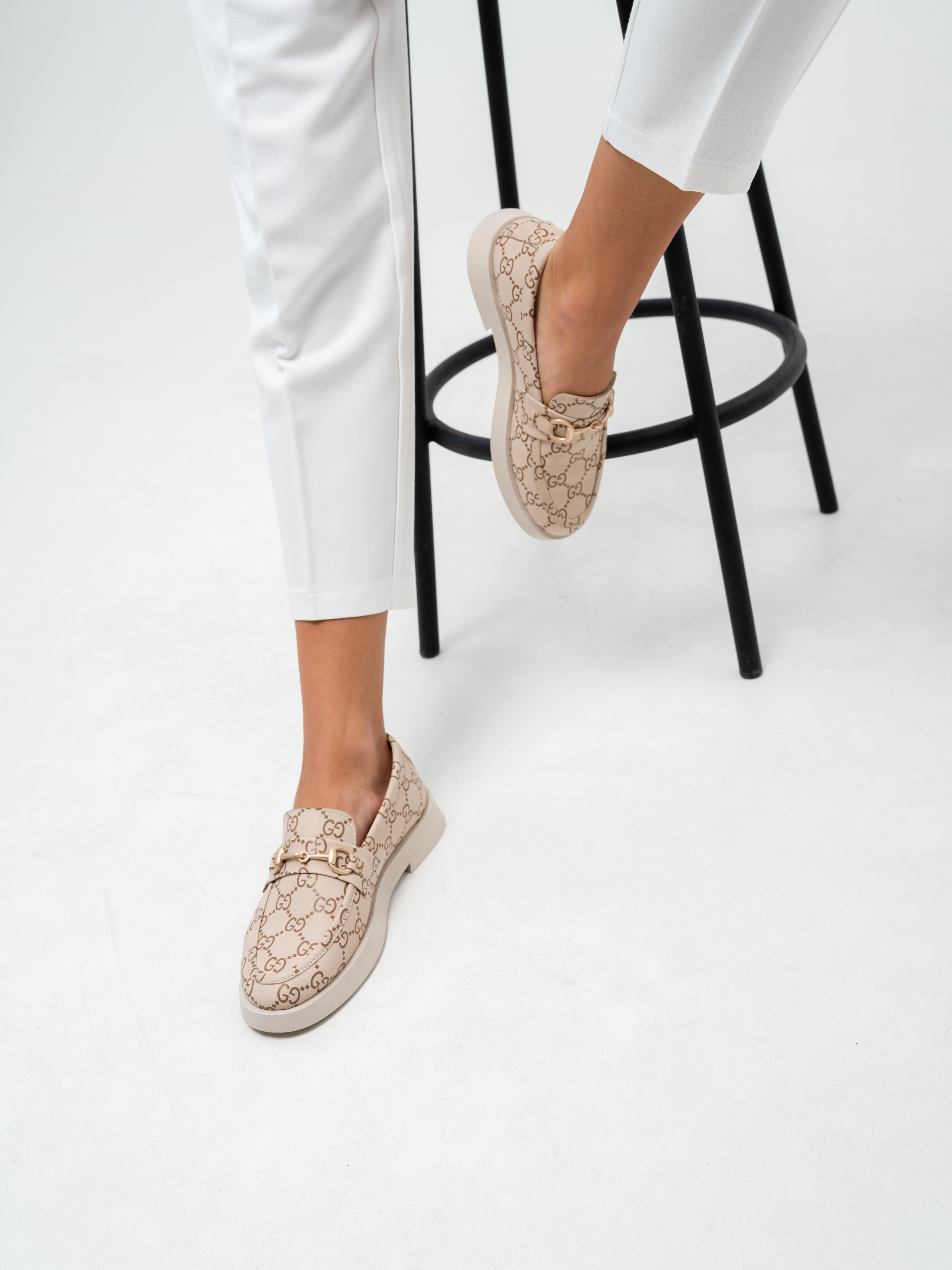 Лоферы кожаные бежевые