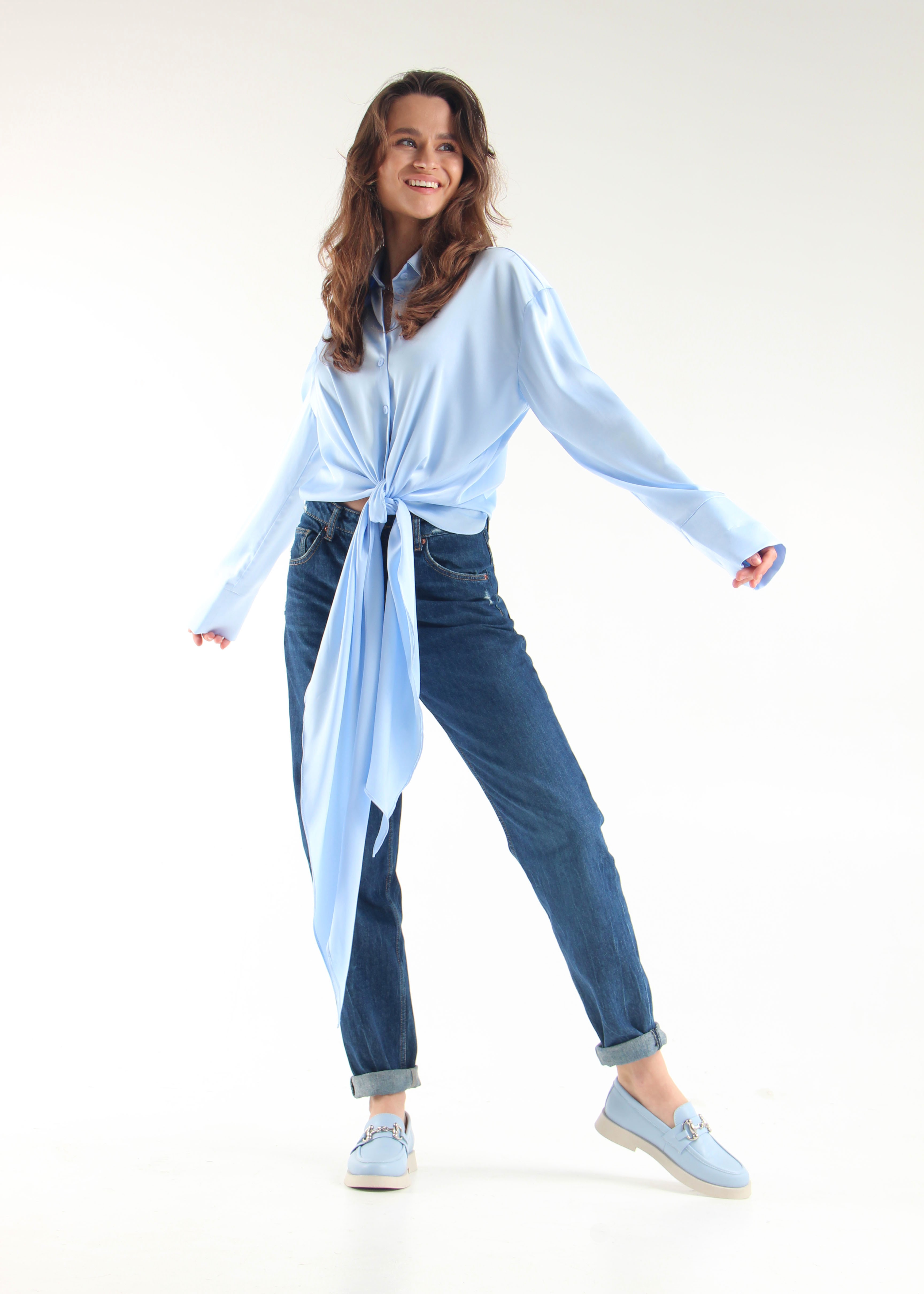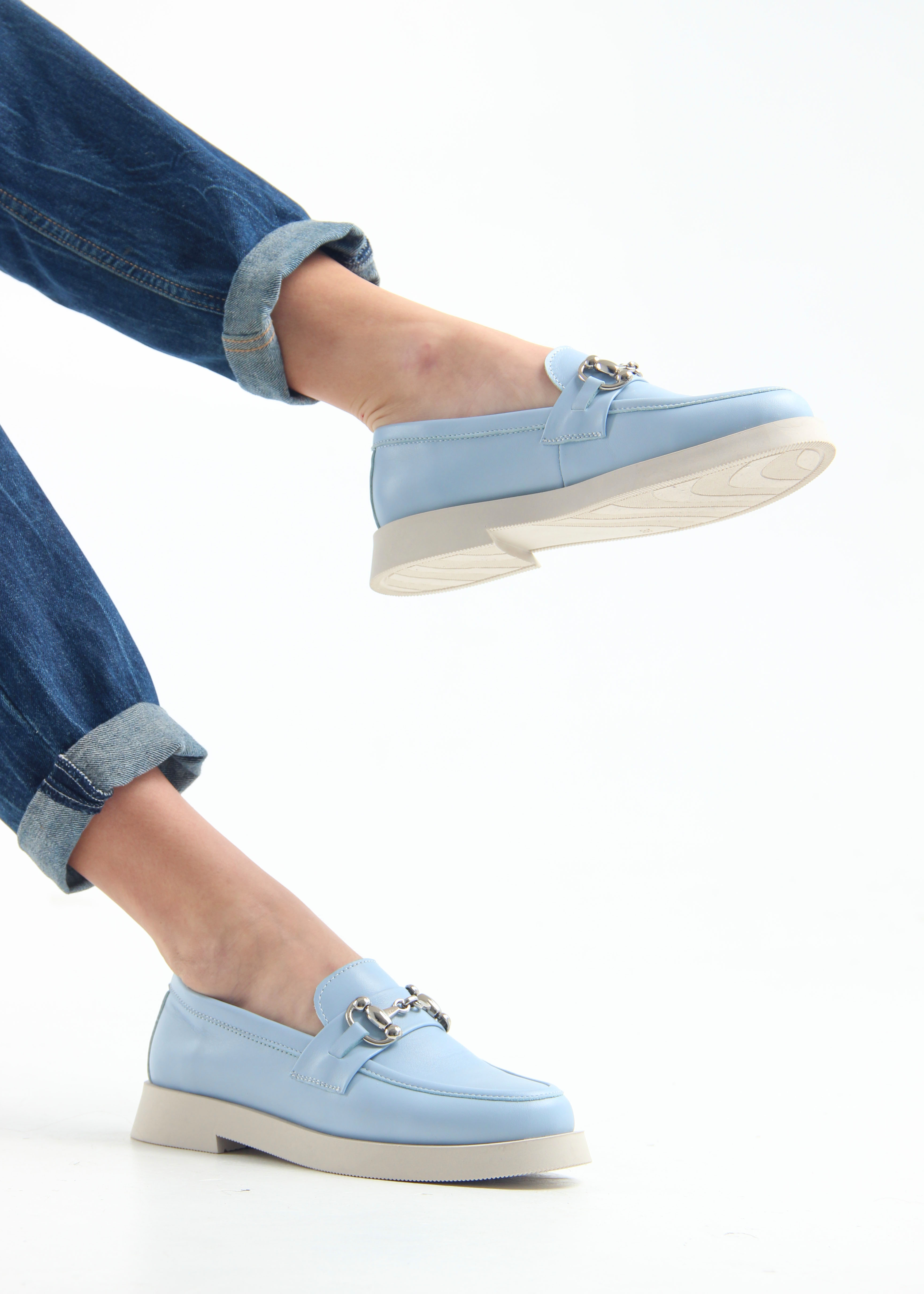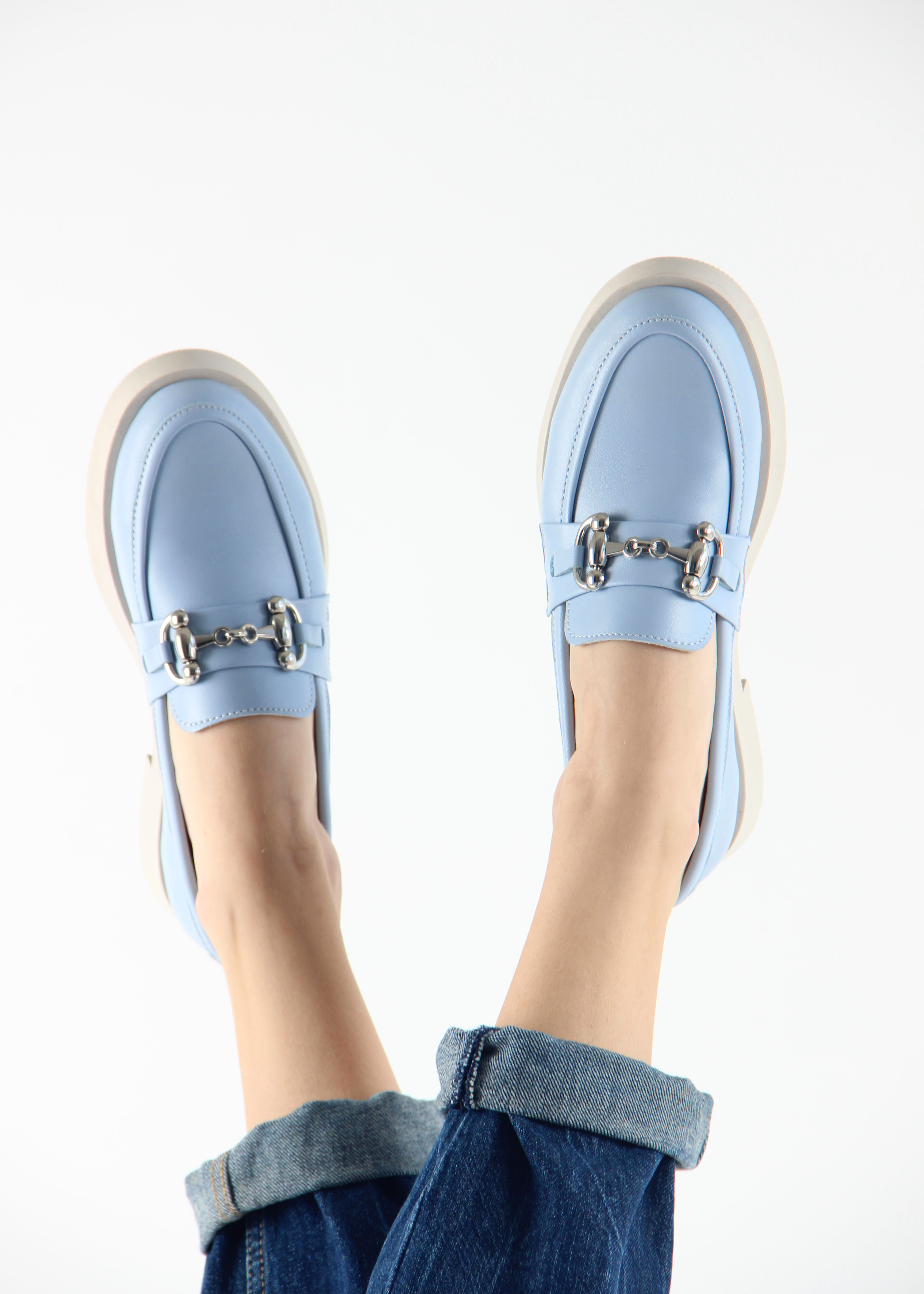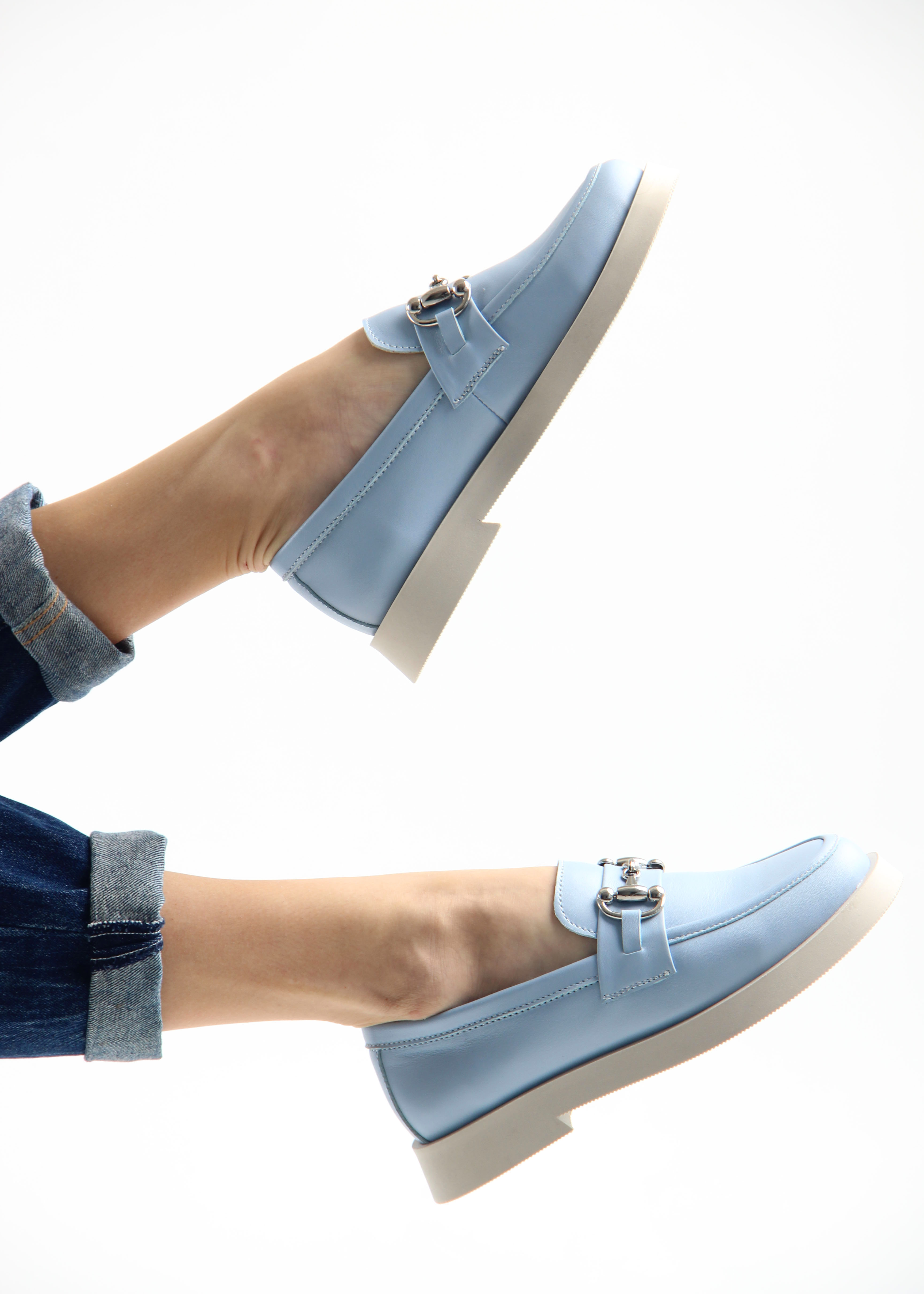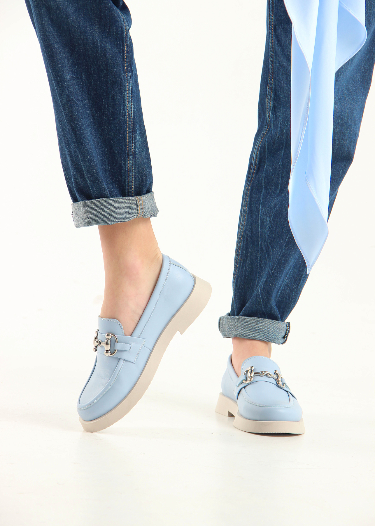Лоферы кожаные голубые
