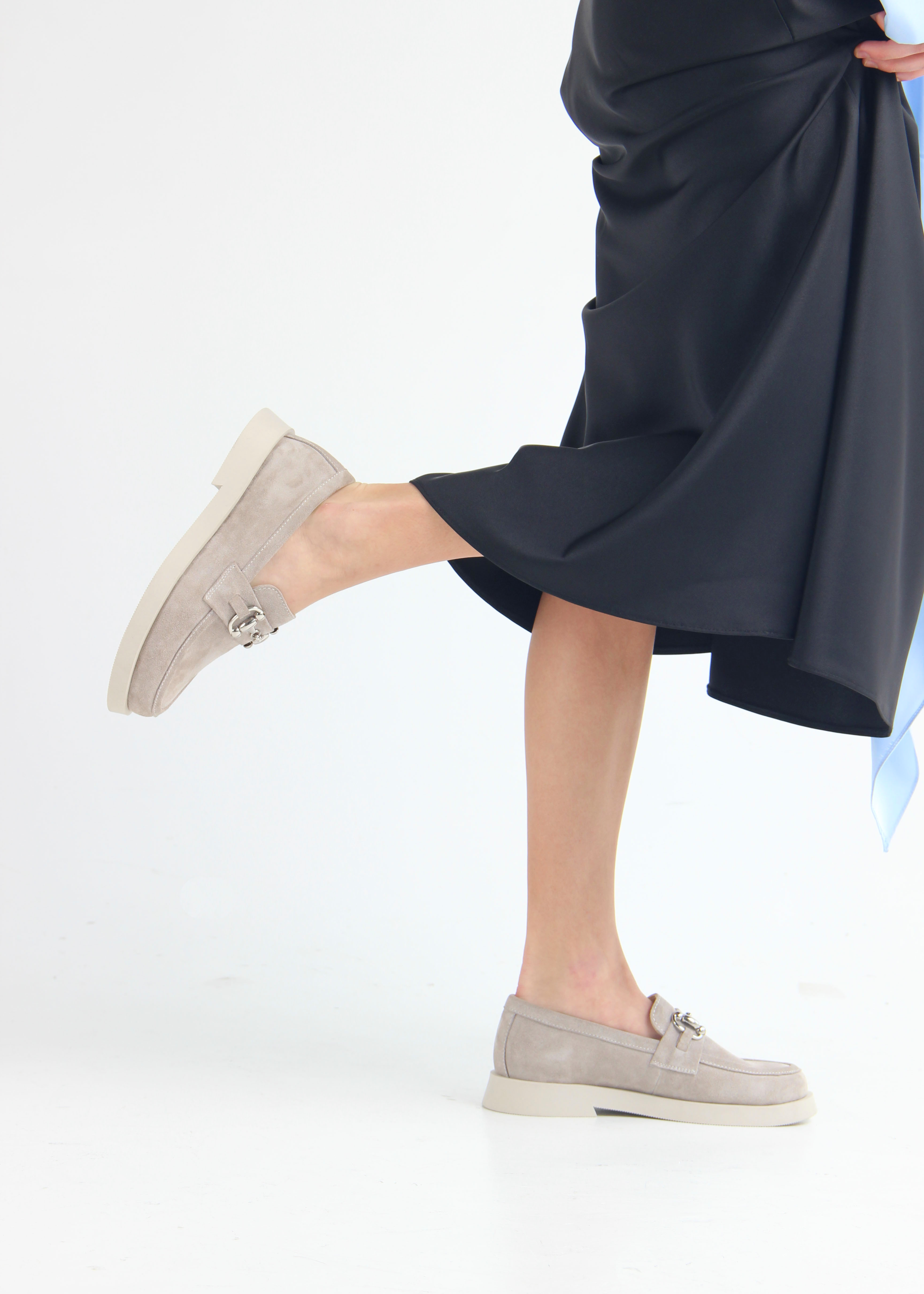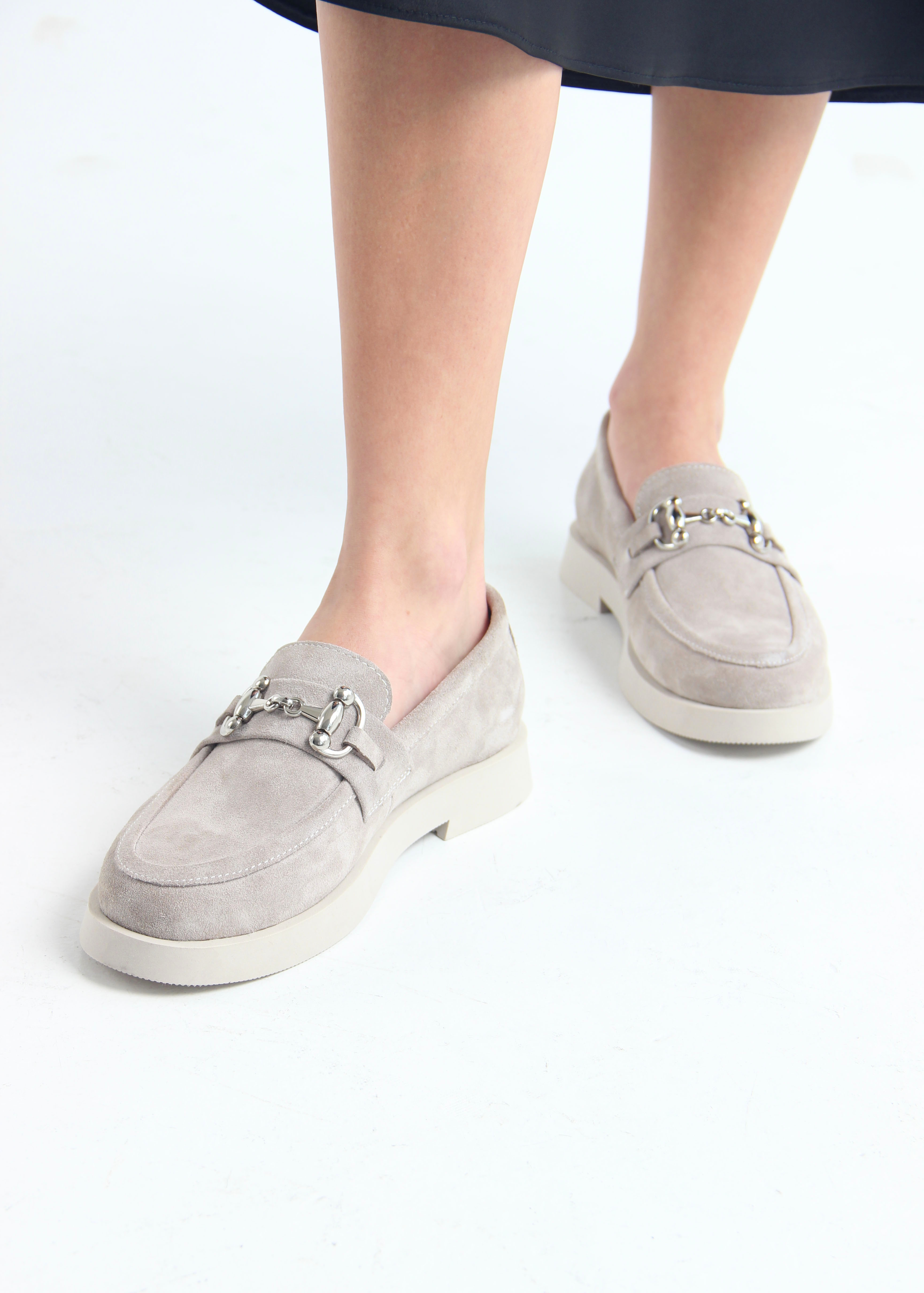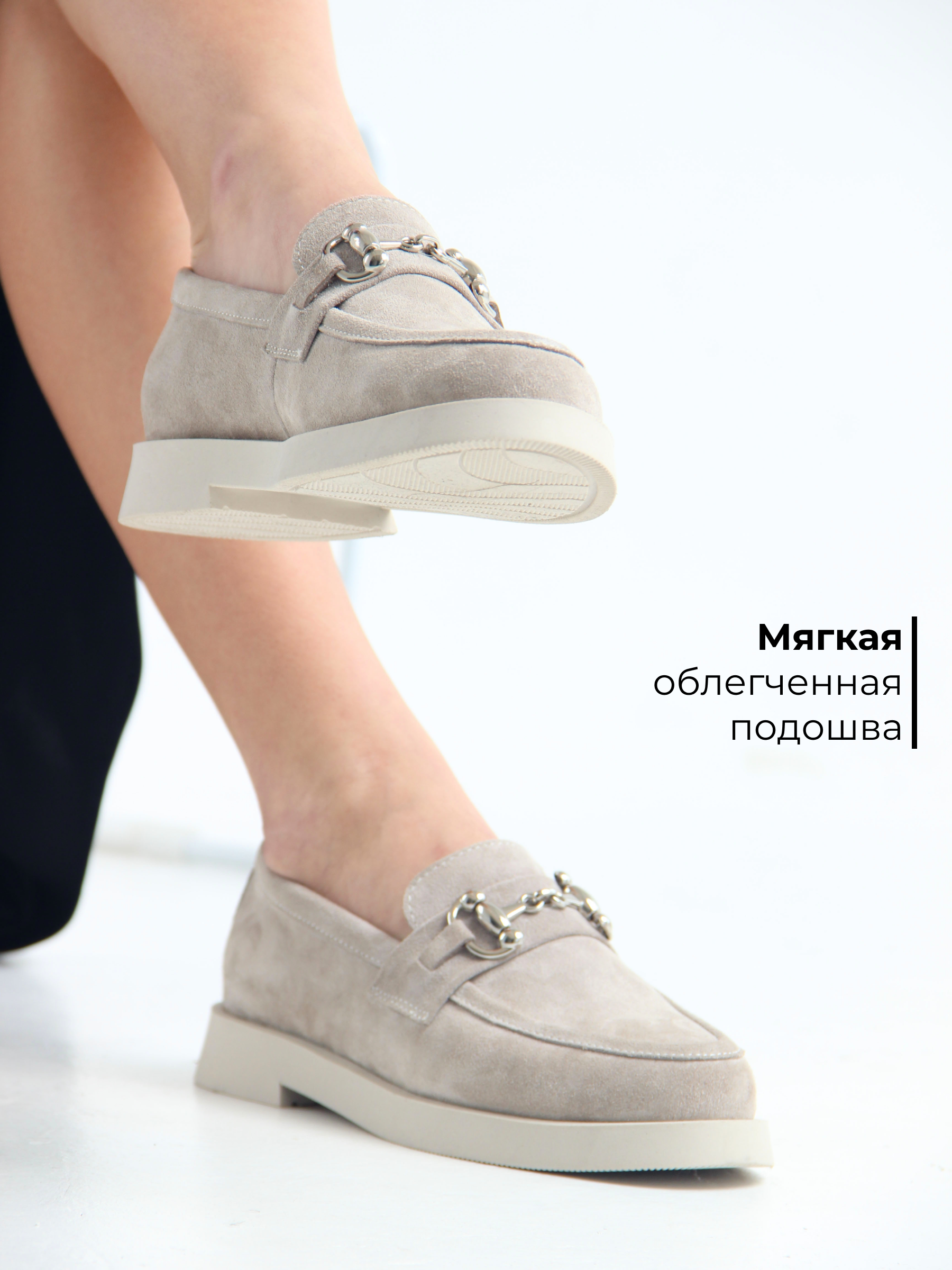 Лоферы замшевые серые