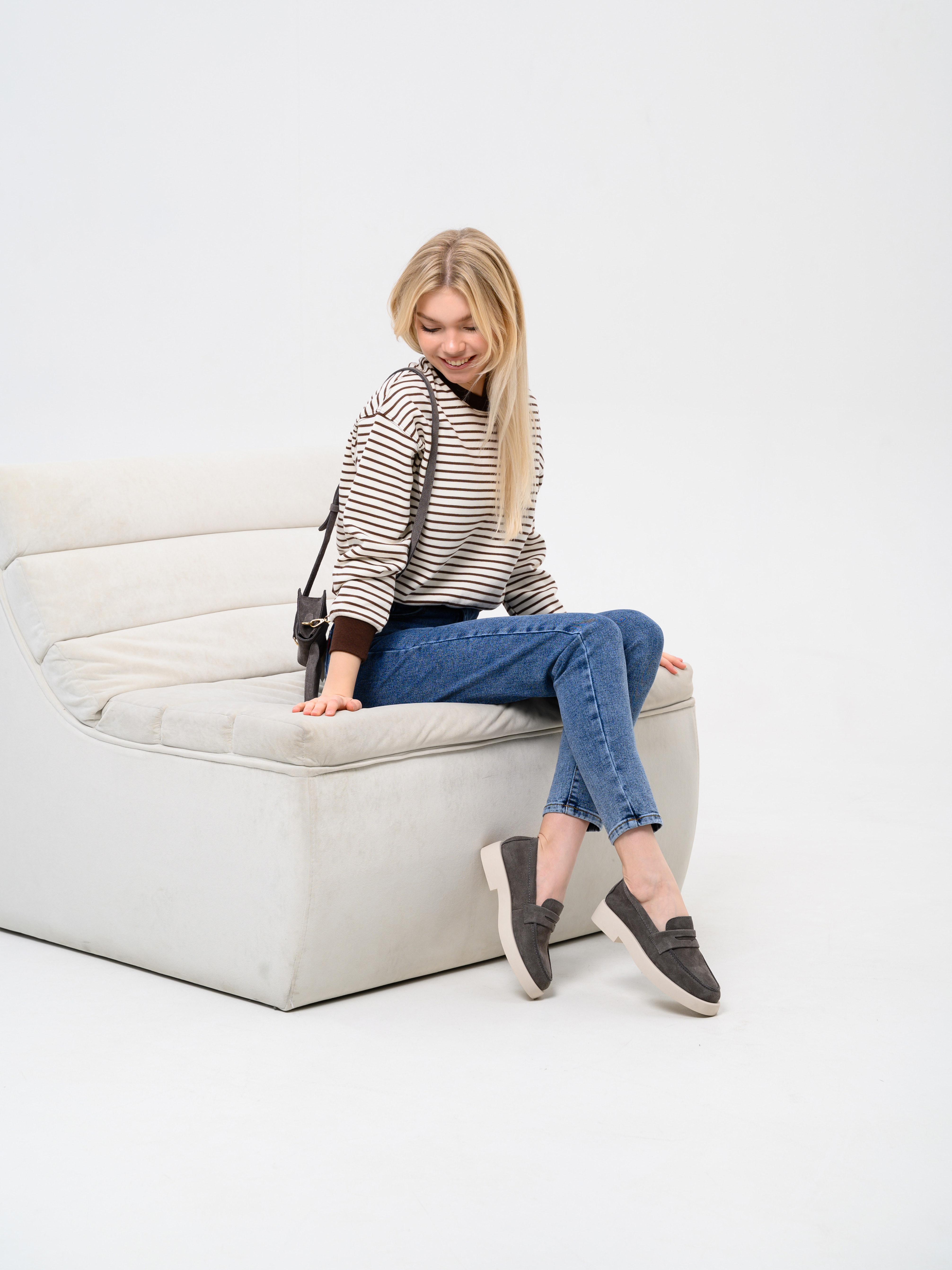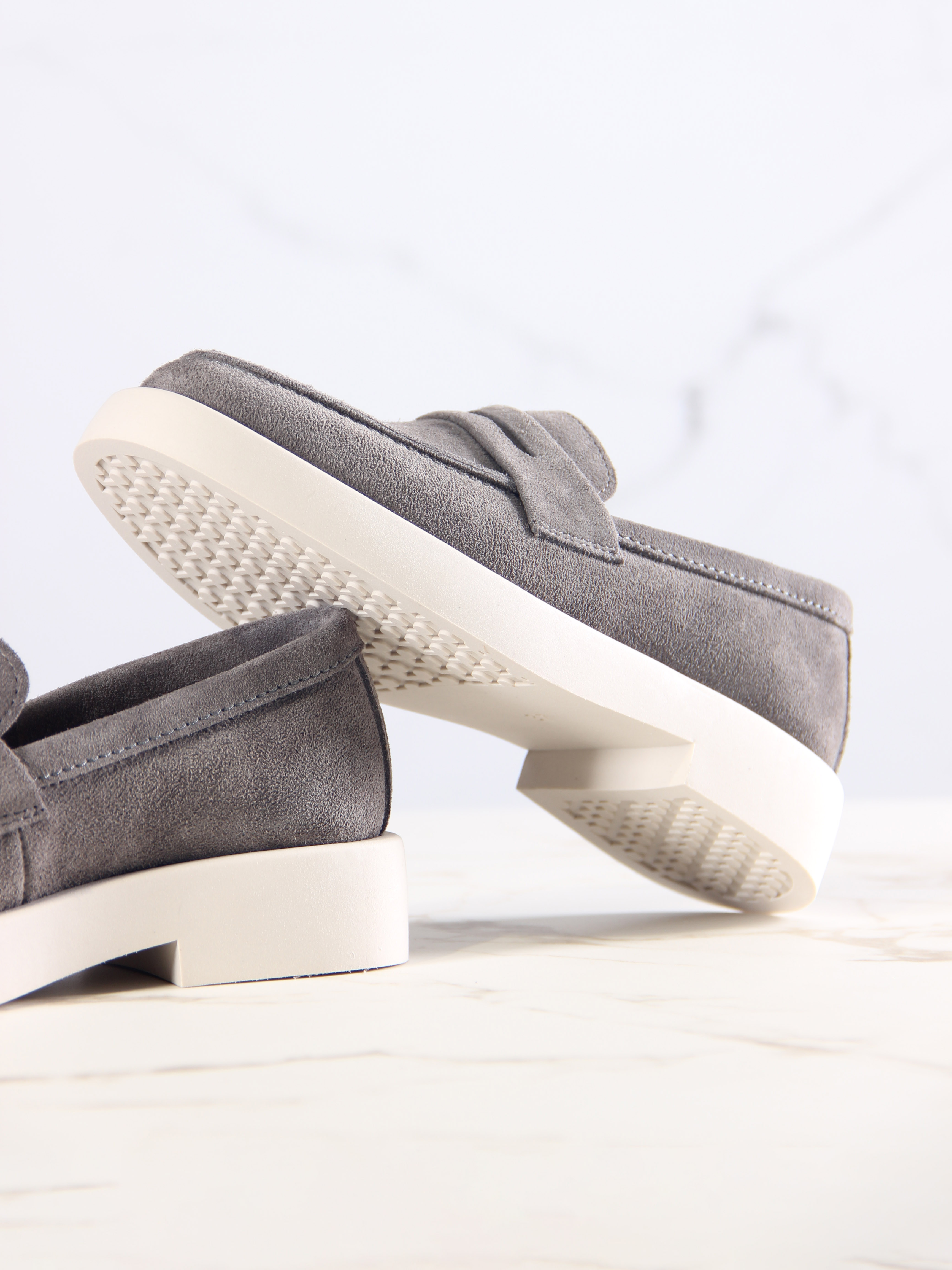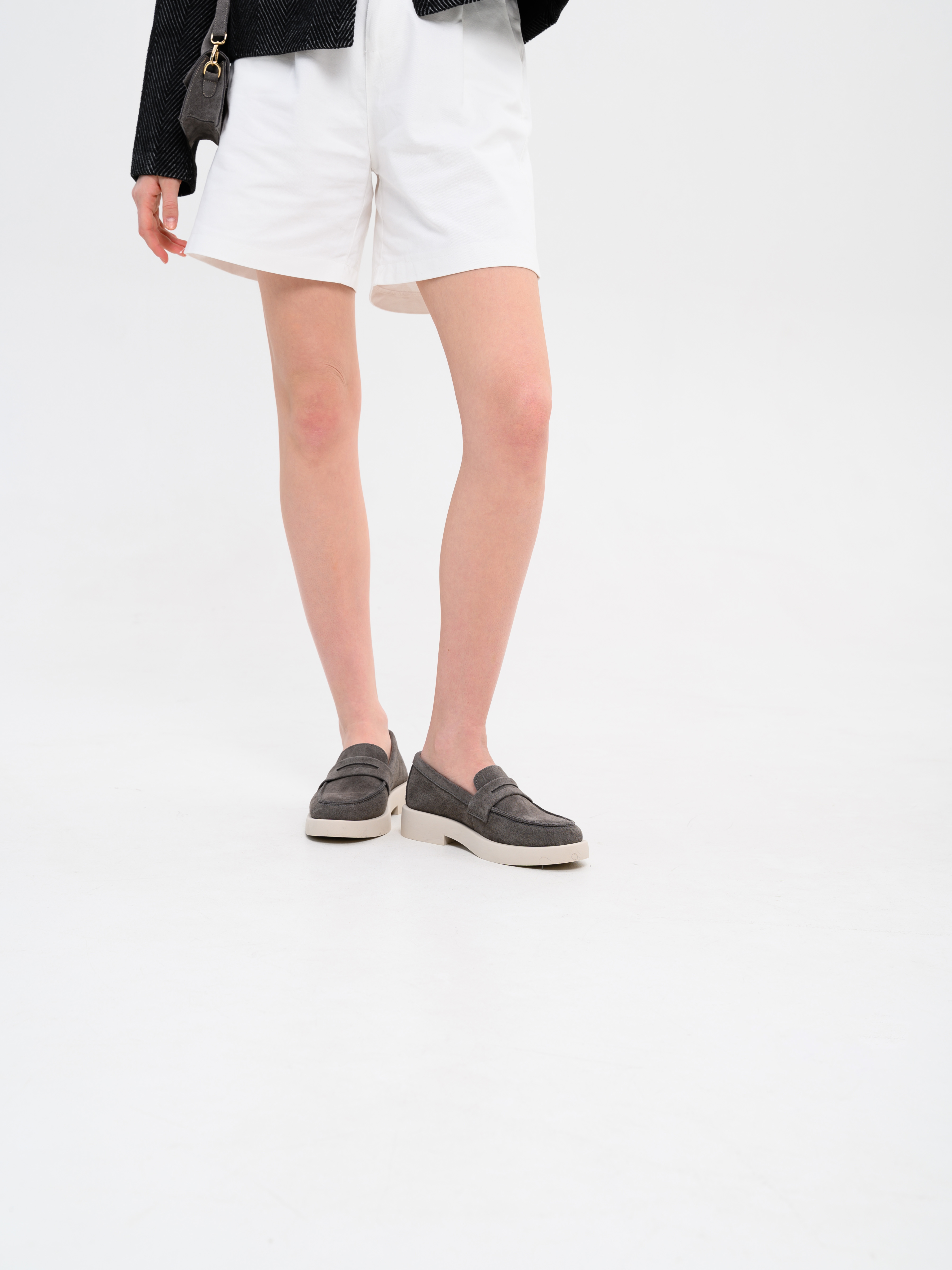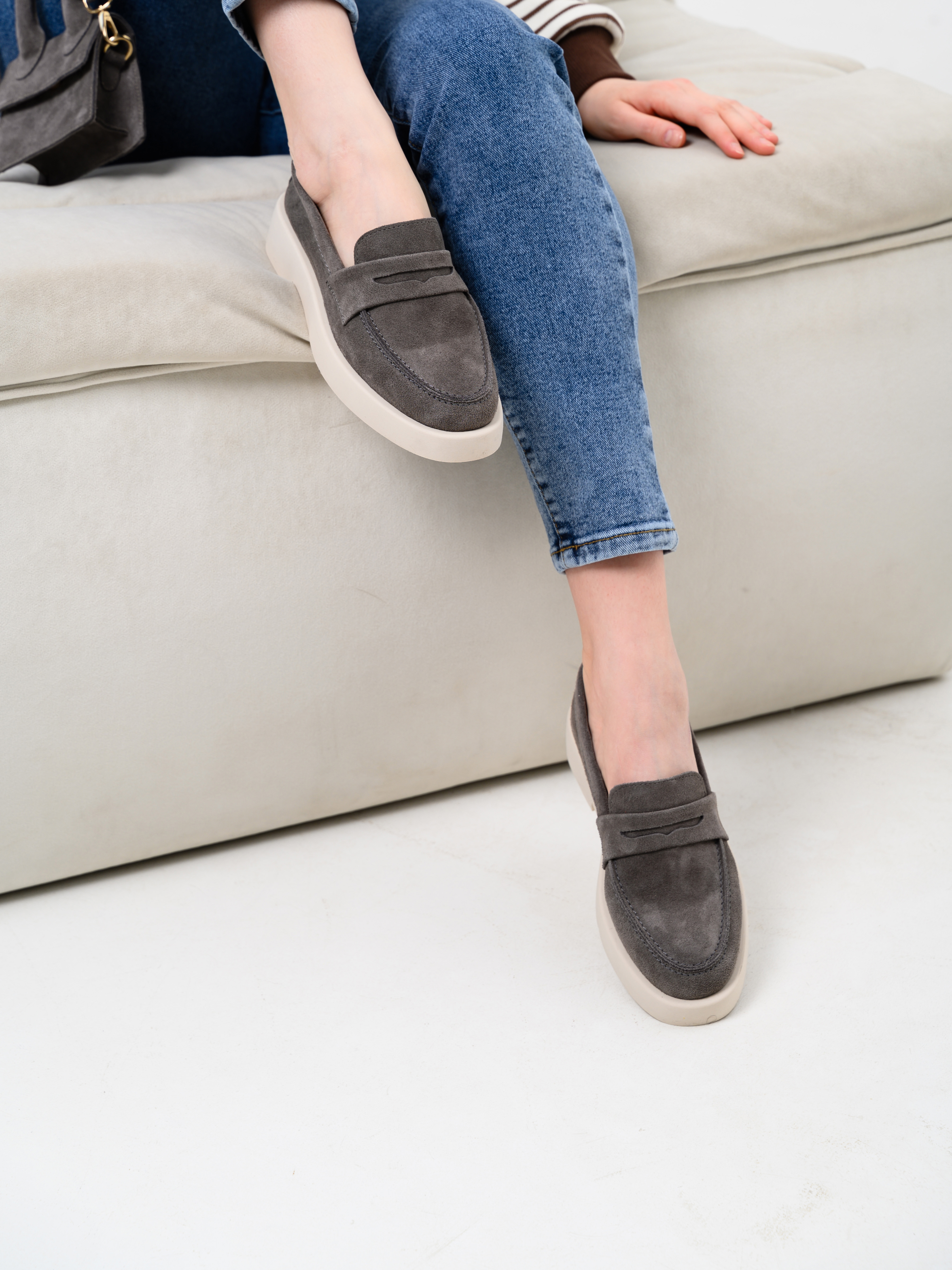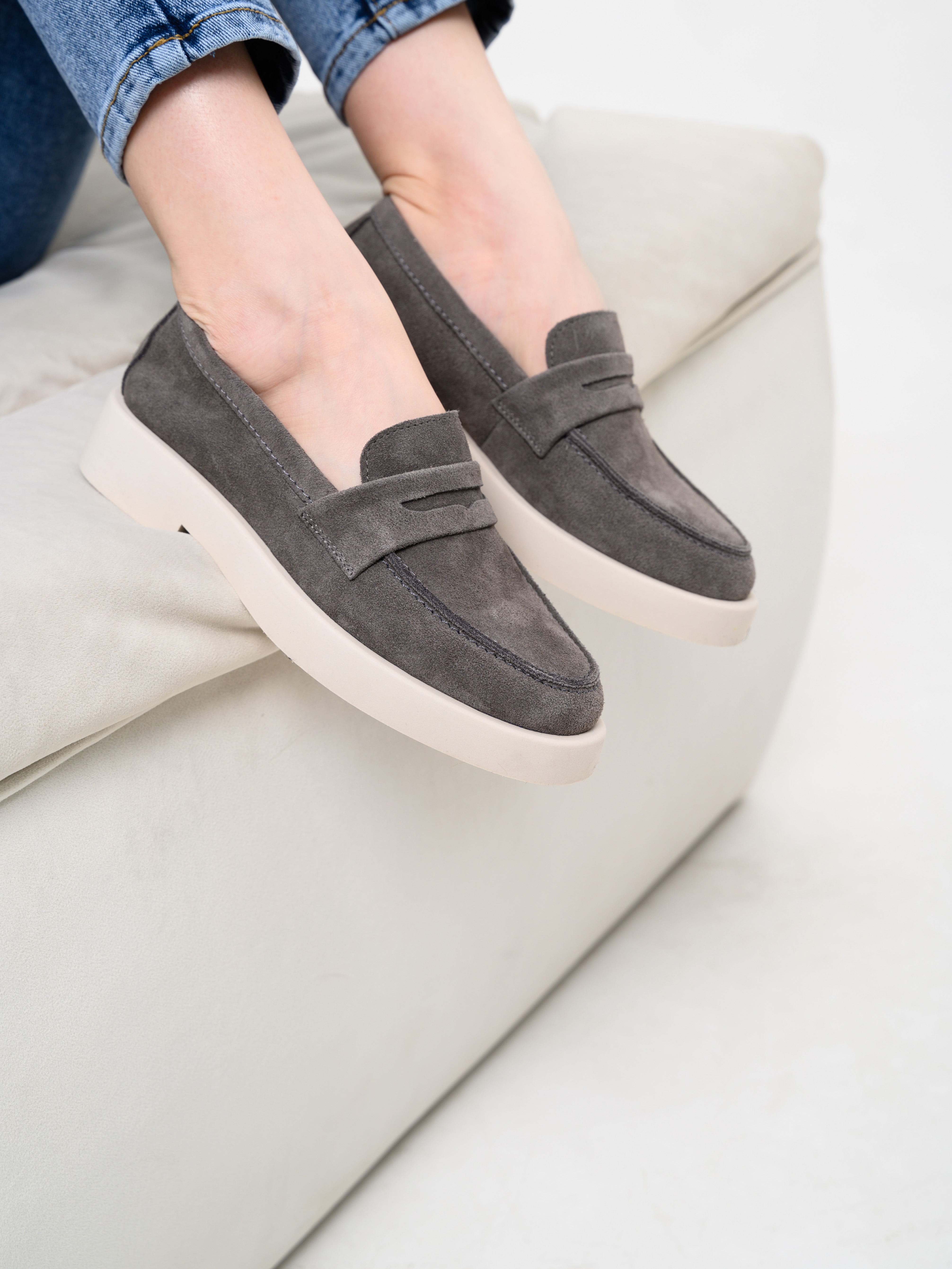 Лоферы замшевые серые