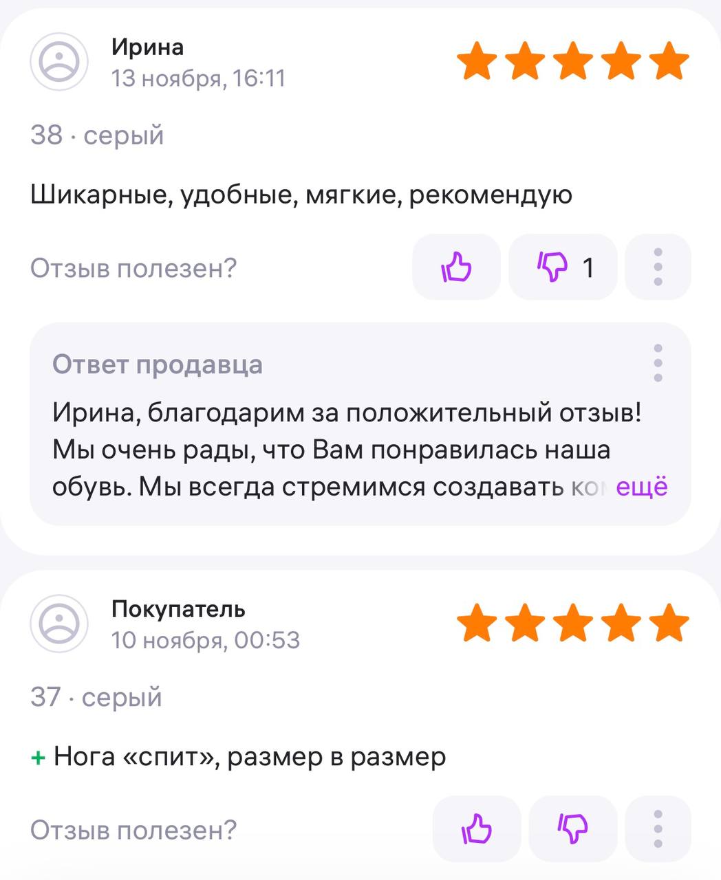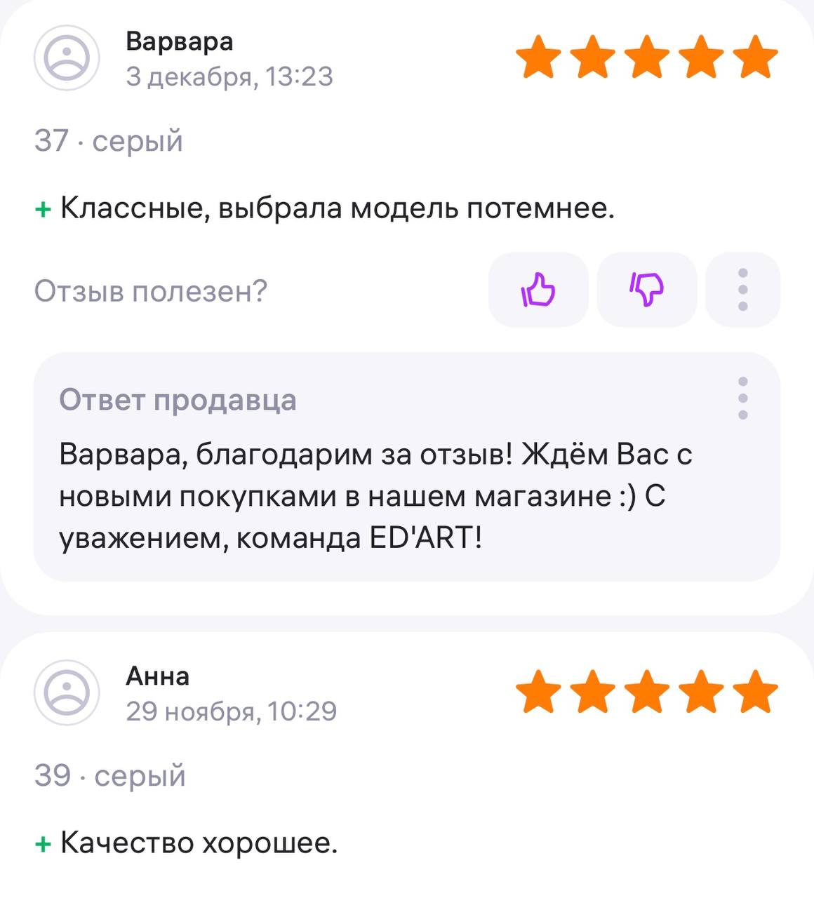 Ответ продавца