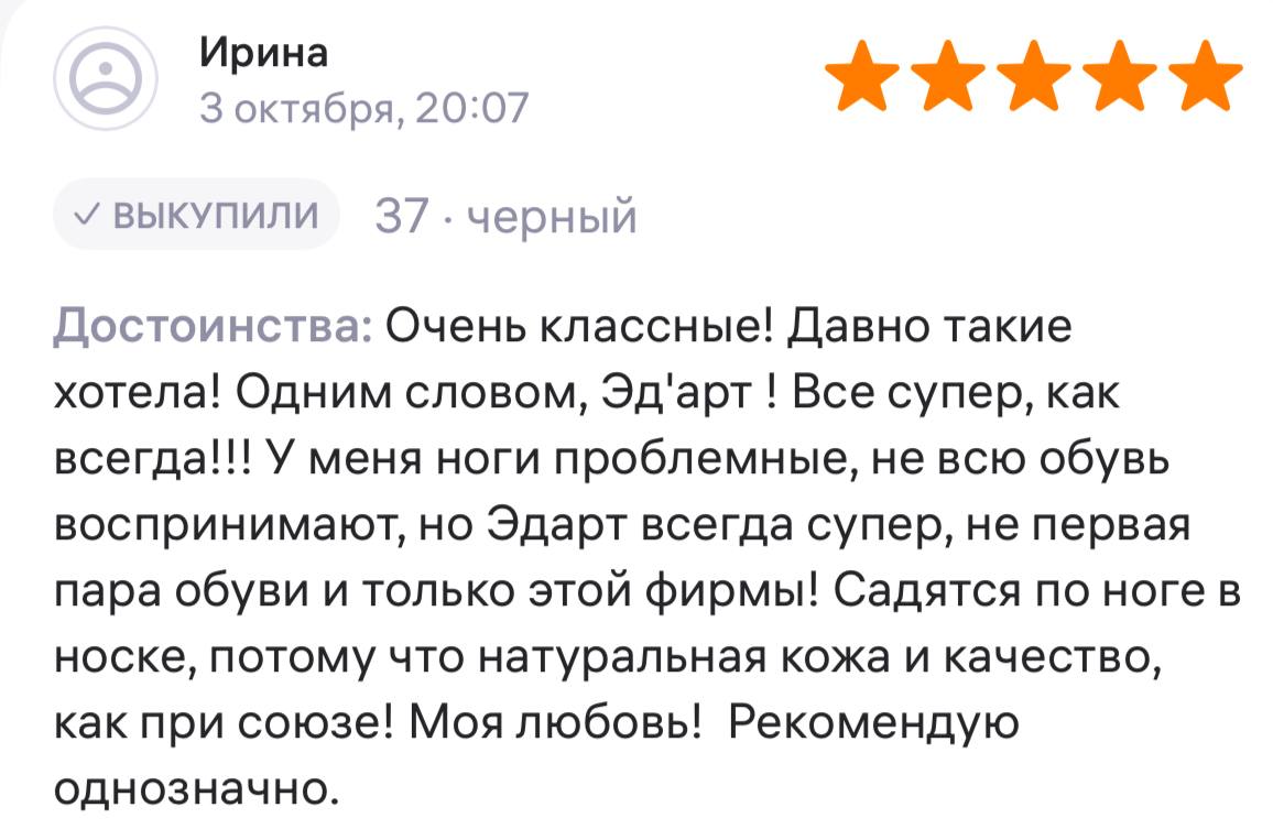 Ботинки хорошие, кажа мягкая, размеру соответствуют, но на пятке пришита заплатка из какой то пленки блесящей и когда первый раз померла она вся сморщилась и такое впечатление что сейчас лопнет. И я думаю со временем так и будет. Если бы не эта заплатка взяла бы удобные и мягкие