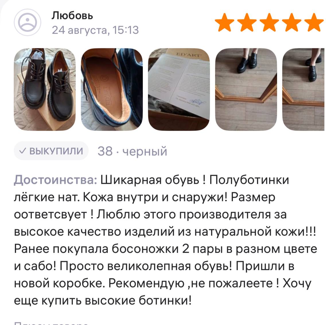 Ботинки хорошие, кажа мягкая, размеру соответствуют, но на пятке пришита заплатка из какой то пленки блесящей и когда первый раз померла она вся сморщилась и такое впечатление что сейчас лопнет. И я думаю со временем так и будет. Если бы не эта заплатка взяла бы удобные и мягкие