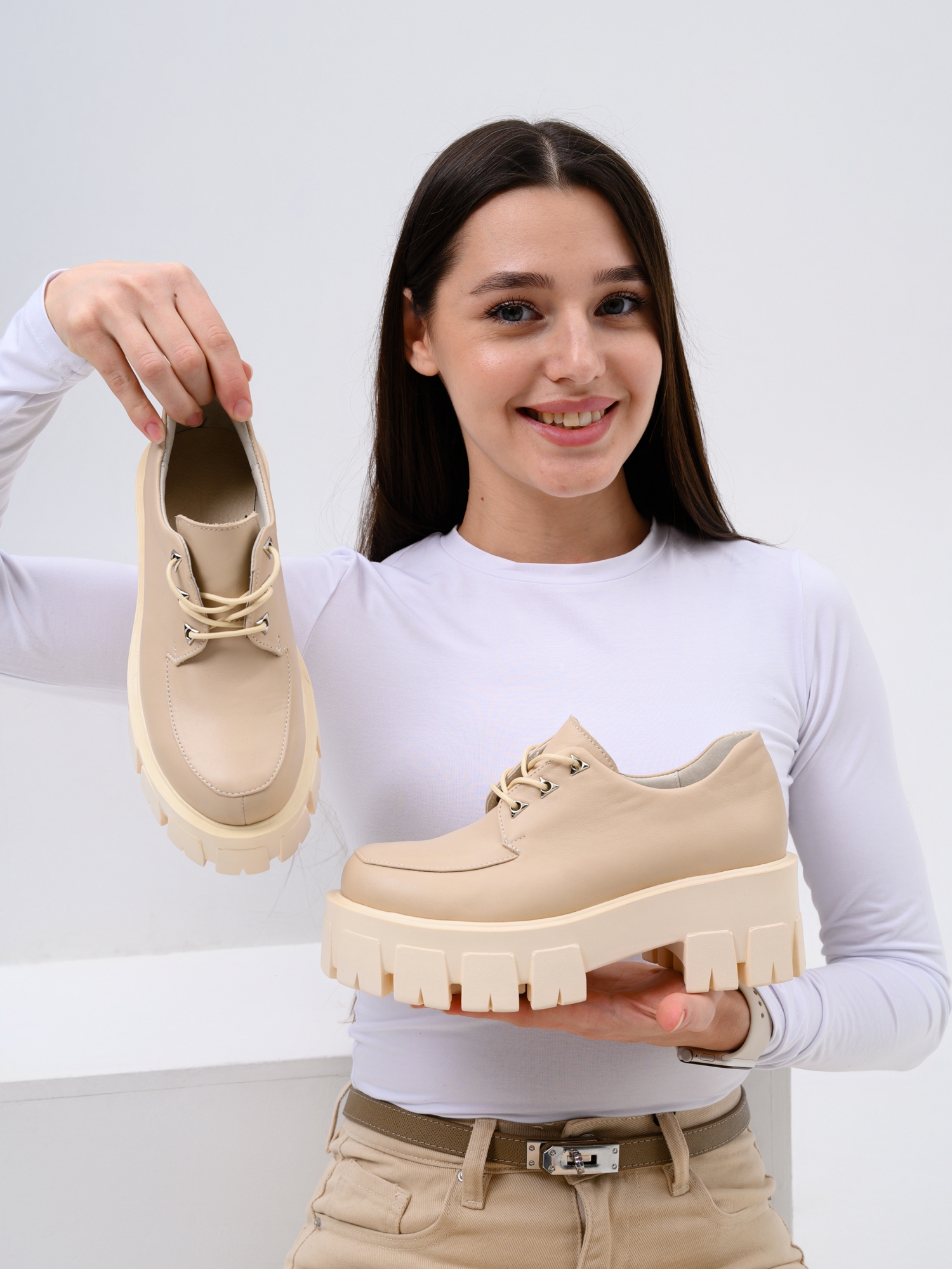 Босоножки кожаные бежевые